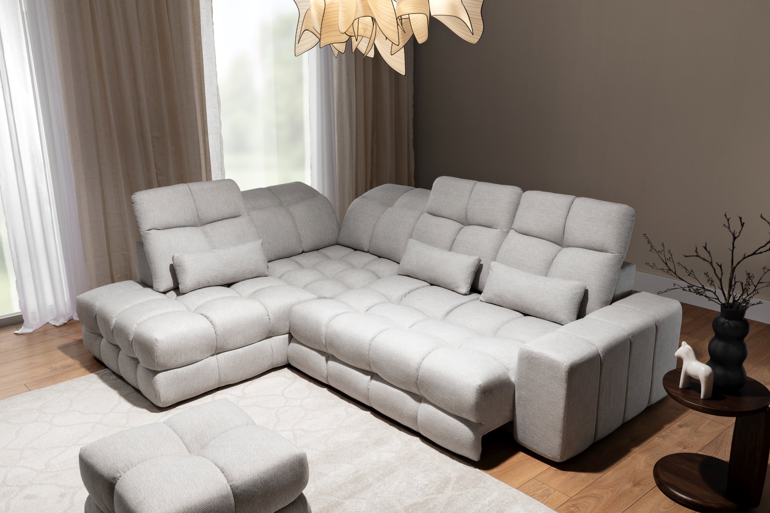 Magnelio Prestige predstavlja spoj suvremene estetike, kvalitetnih materijala i napredne funkcionalnosti. Električno izvlačenje sjedala omogućuje jednostavno prilagođavanje dubine sjedenja, što povećava udobnost. Drvena konstrukcija u kombinaciji s HR pjenom i džepastim oprugama osigurava optimalan omjer mekoće i potpore, zbog čega će ovaj modularni sustav biti dugotrajno i privlačno rješenje za svaki dom. Zbog mogućnosti modularnog sastavljanja izvrsno se prilagođava različitim prostornim zahtjevima – od manjih dnevnih soba do većih, otvorenih stambenih prostora.