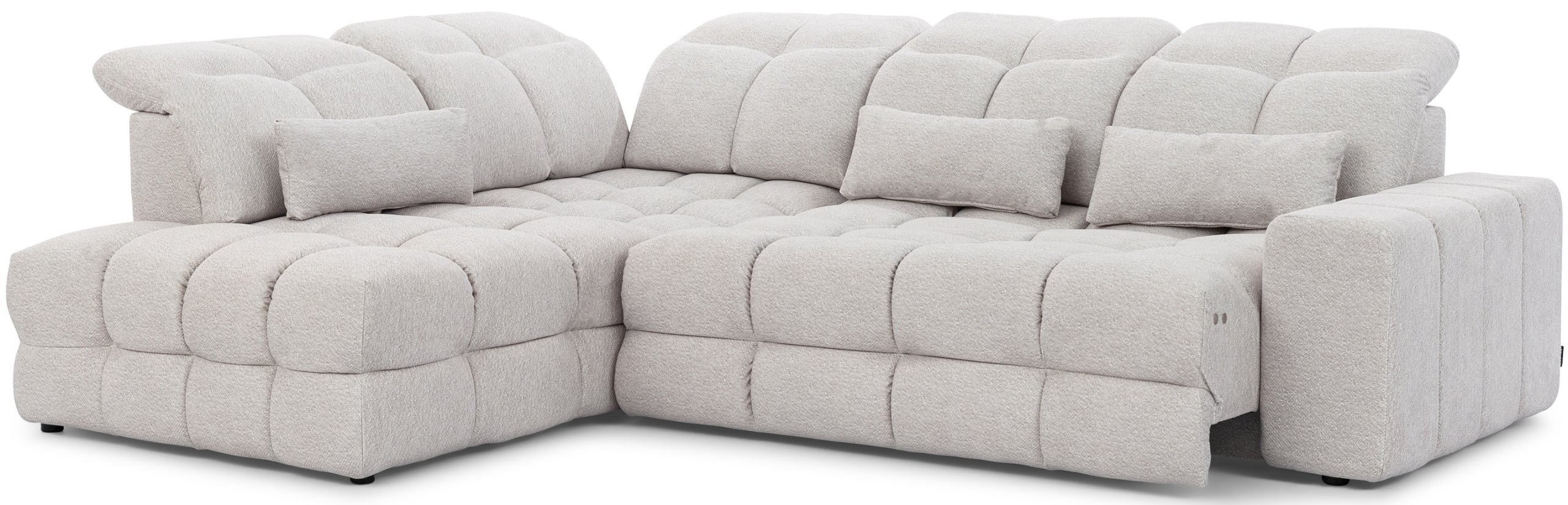 Jedna od ključnih prednosti garniture Magnelio Prestige je električno izvlačno sjedište. Jednim pritiskom na gumb možete produžiti dubinu sjedišta do otprilike 94 cm, što omogućuje da se garnitura u trenutku pretvori u prostor za odmor ili opušteno gledanje televizije. Ova funkcionalnost posebno je korisna za one koji žele više prostora za noge ili potpunu relaksaciju nakon napornog dana. Za razliku od klasičnih ručnih mehanizama, električni sustav radi tiho, glatko i precizno, što povećava kvalitetu korištenja i osjećaj prestiža.