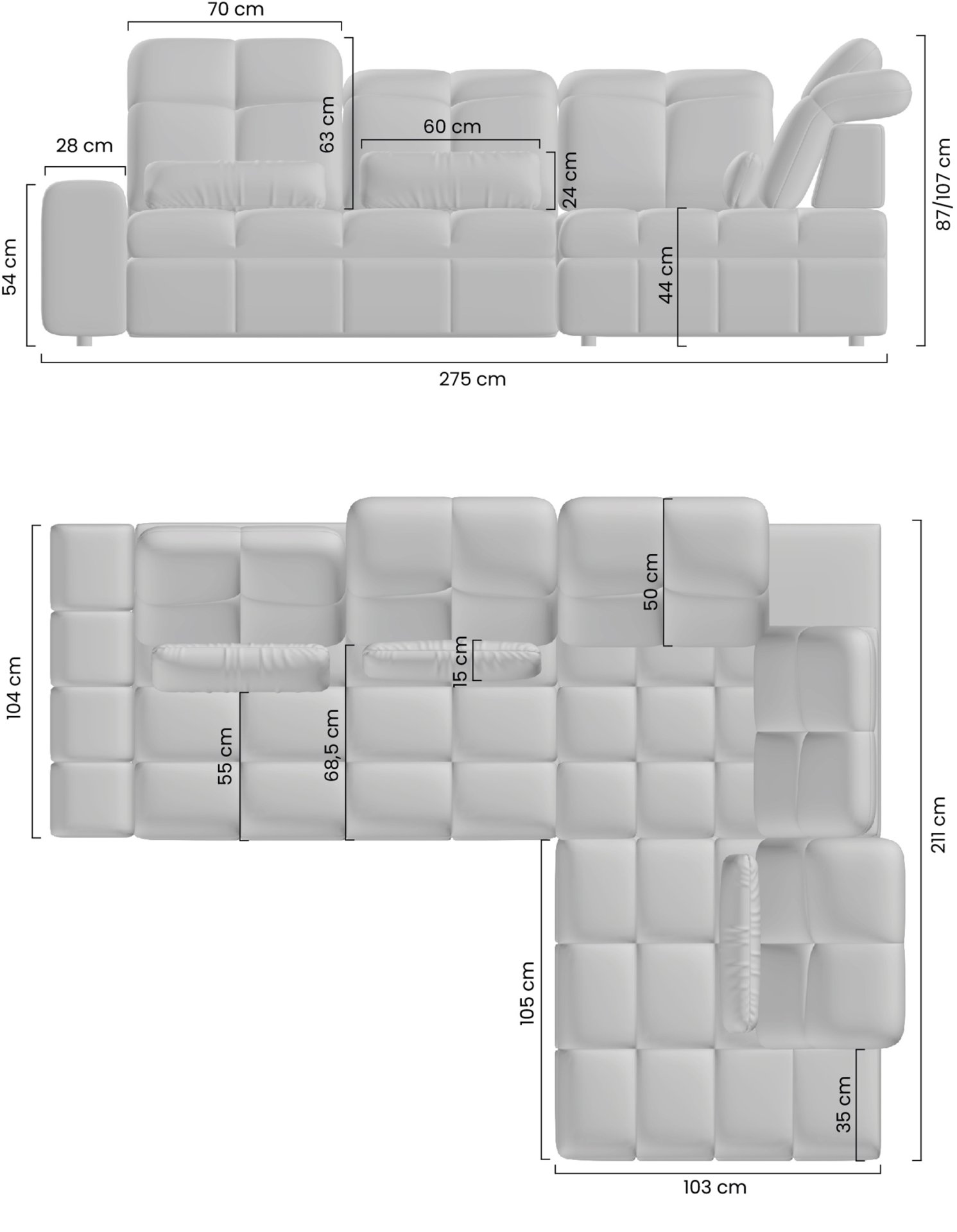 Visina sjedišta od 44 cm omogućuje lako ustajanje, što je posebno praktično za starije korisnike. Garnitura nema ladicu za posteljinu, što znači da je sva pažnja posvećena udobnosti sjedenja i mehanizmu relaksacije. Zbog svog oblika i dimenzija idealna je za kutne postavke, gdje stvara prirodni centar dnevnog boravka.