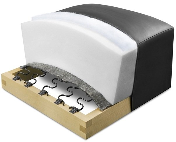 Osnova garniture je drveni okvir, dopunjen kvalitetnom ivericom, što povećava stabilnost konstrukcije. Drvene noge u boji wenge visine 5 cm dopunjuju suvremeni izgled i omogućuju jednostavno čišćenje poda ispod garniture. Garnitura podnosi maksimalno opterećenje do 150 kg po pojedinom sjedištu, što potvrđuje robusnost konstrukcije i promišljen odabir materijala.