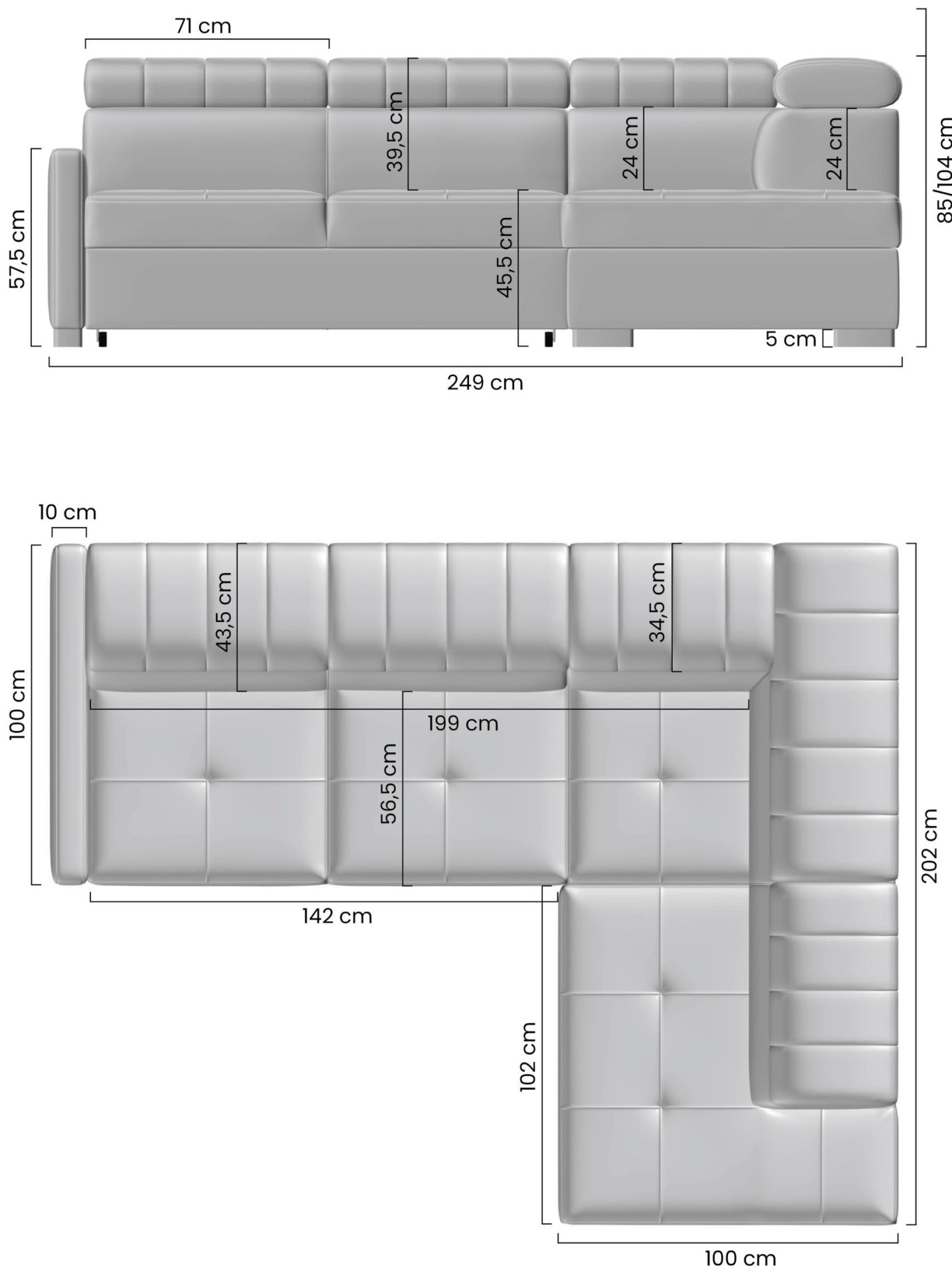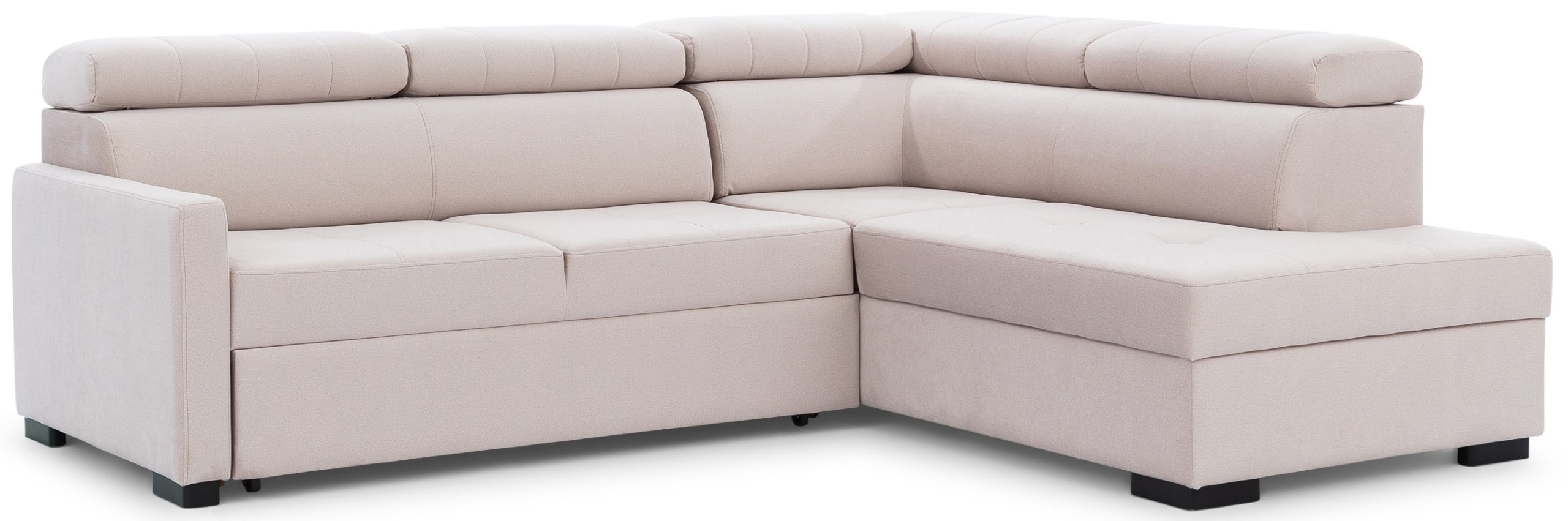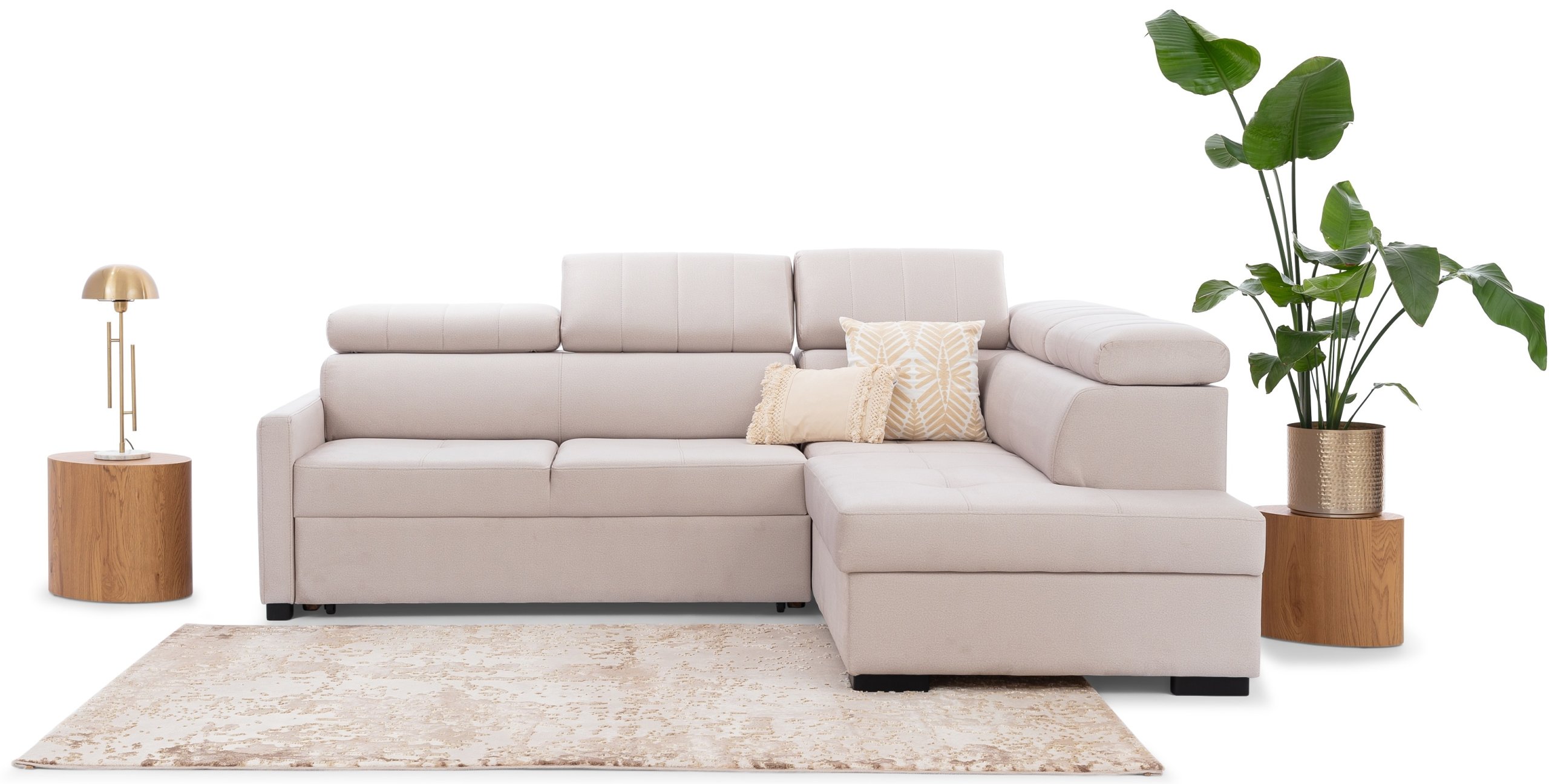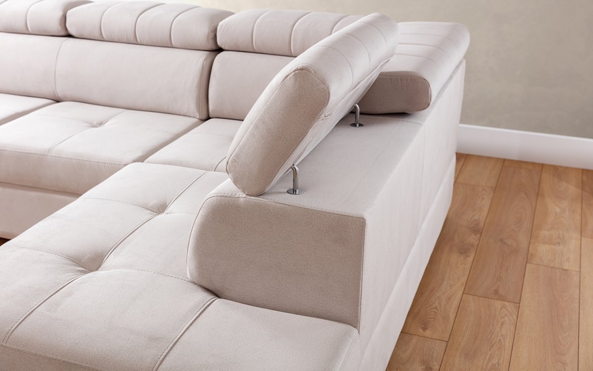 Kutni raspored u obliku slova L omogućuje učinkovito iskorištavanje prostora. Garnitura se može postaviti u kut prostorije ili služiti kao razdjelnik između različitih dijelova otvorenog životnog prostora. Ležajni dio pruža ugodan kutak za opuštanje, čitanje ili gledanje televizije, dok ostatak dijela osigurava dovoljno prostora za druženje.