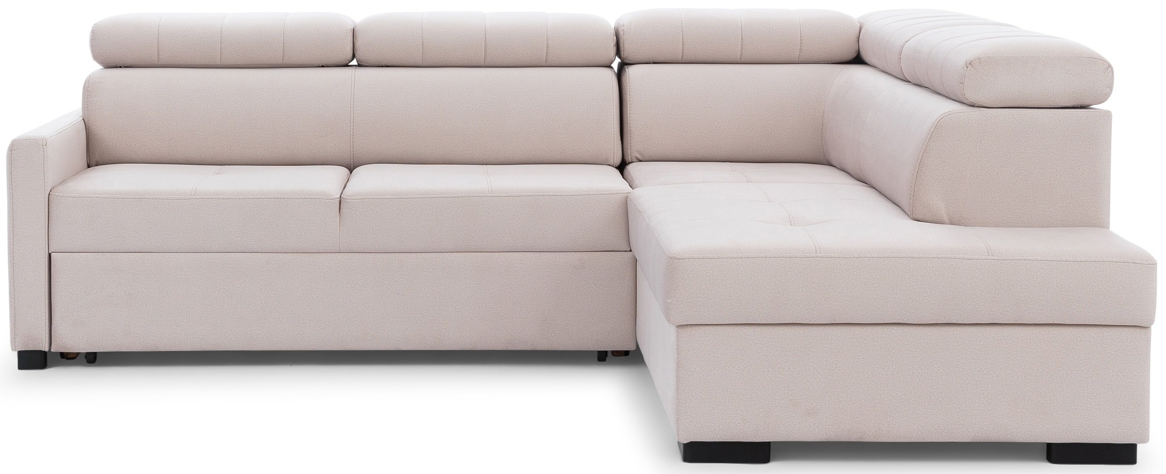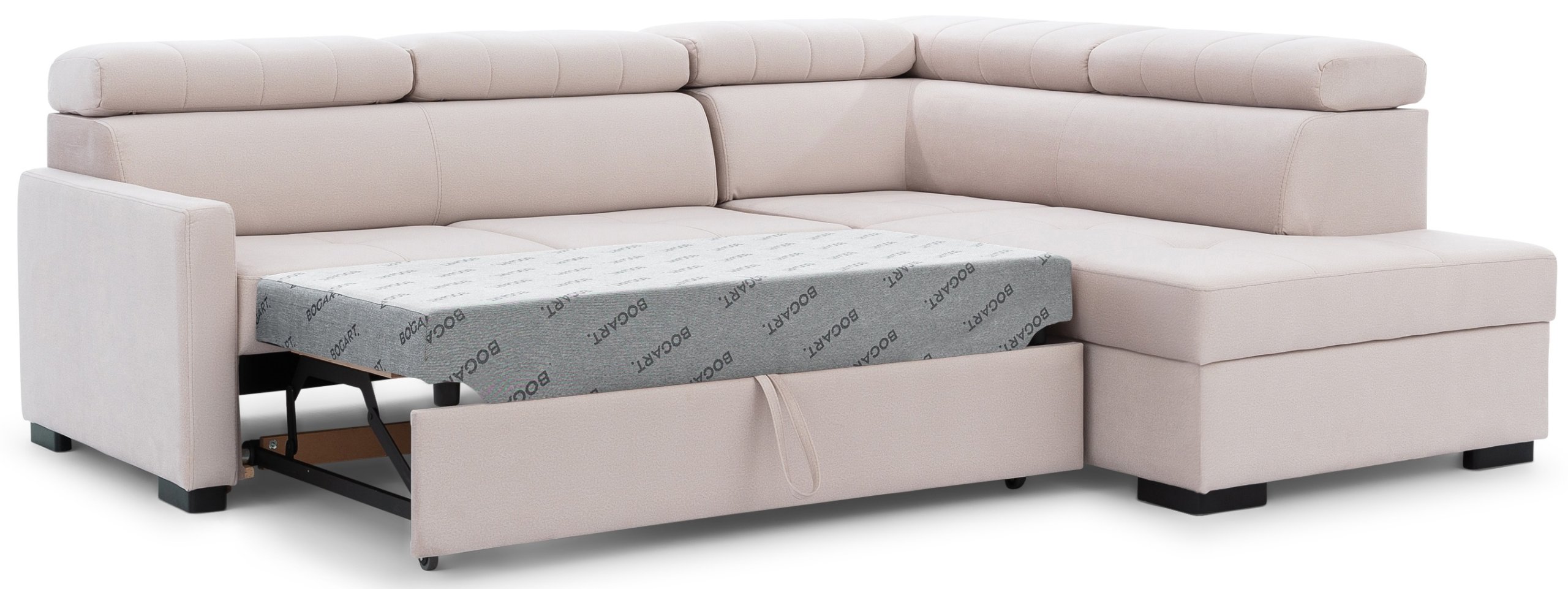 Za one koji cijene praktičnost, u garnituru je ugrađen mehanizam Dolphin, koji omogućuje brzo i jednostavno razvlačenje u ležaj. Jednostavnim povlačenjem donjeg dijela garnitura se pretvara u udoban krevet s ležajnom površinom 199x126 cm i širinom prostora za spavanje 130 cm. Takvo rješenje idealno je za goste ili povremeno spavanje, jer se dio na razvlačenje izvlači jednim pokretom, bez potrebe za dodatnim naporom.