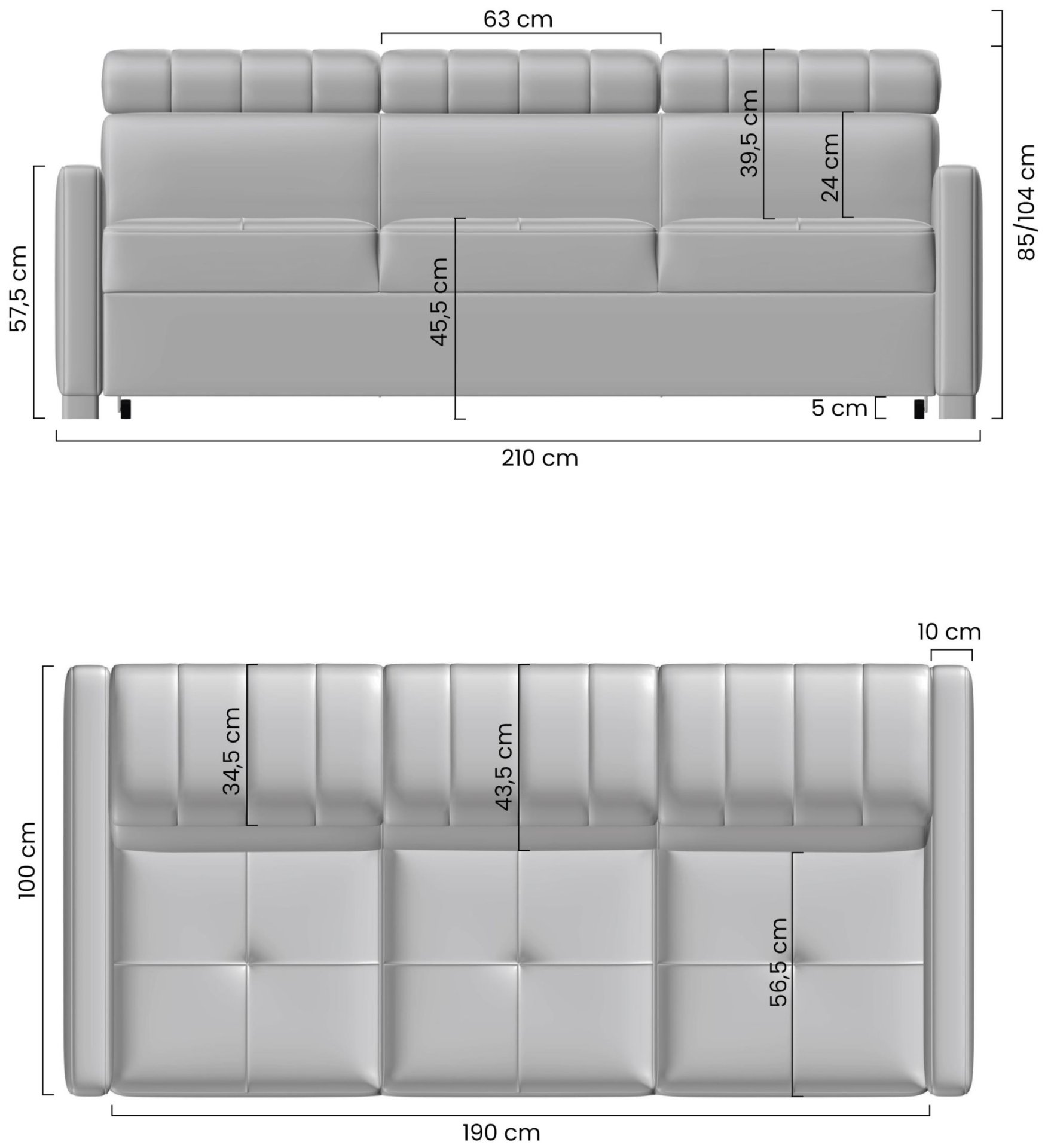 Okvir je izrađen od drveta i iverice, što trosjedu pruža stabilnost i čvrstoću. Drvene noge u nijansi wenge visine 5 cm naglašavaju moderan izgled i omogućuju jednostavno čišćenje prostora ispod sjedeće garniture. Visina sjedala 45 cm optimalna je za udobno sjedenje, jer omogućuje prirodan položaj tijela i lakše ustajanje.