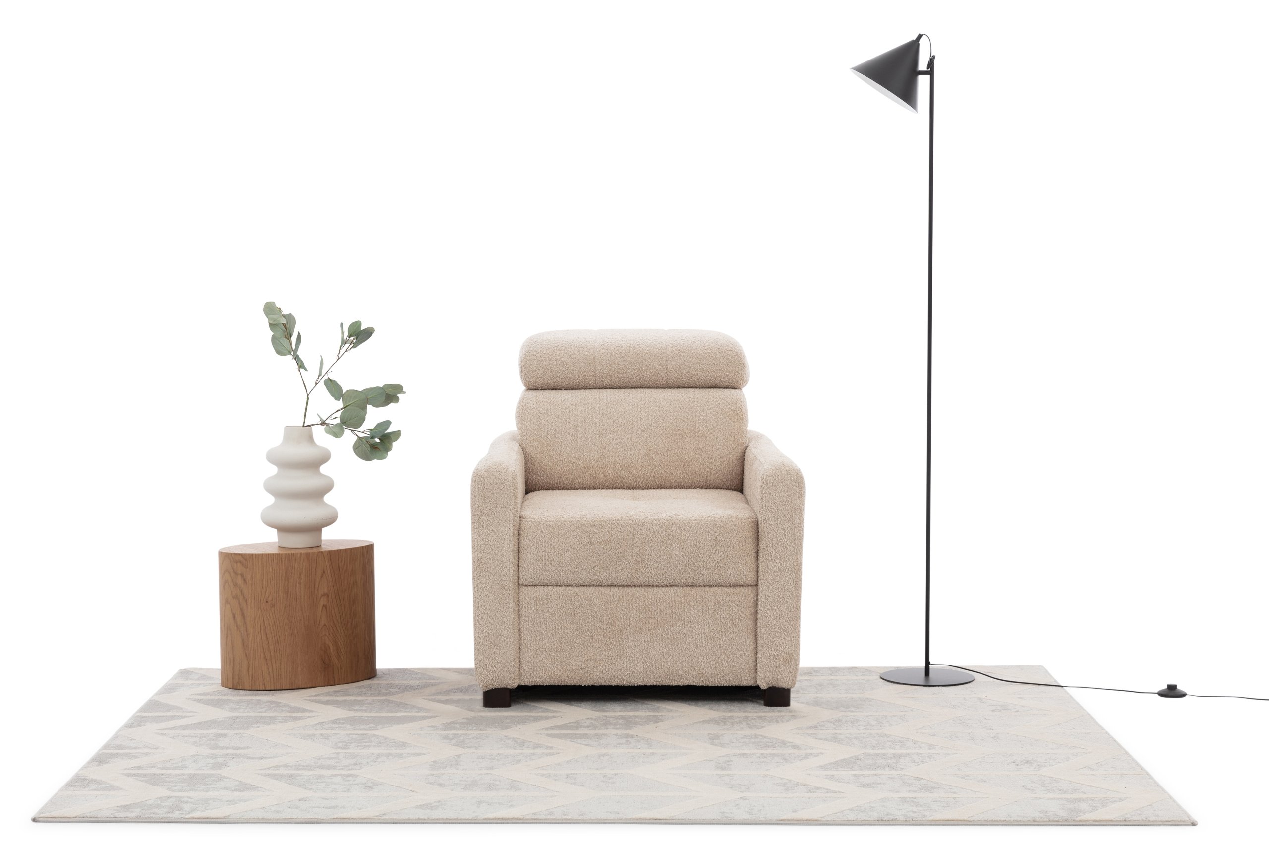 Posebnost modela su podesivi nasloni za glavu, koji se mogu prilagoditi po visini i nagibu prema potrebama korisnika. Ova funkcionalnost povećava udobnost prilikom odmora, gledanja televizije ili čitanja. Taremo je zato izvrstan izbor za dnevne sobe, čitalačke kutke ili prostore za opuštanje, gdje se estetika susreće s praktičnošću.