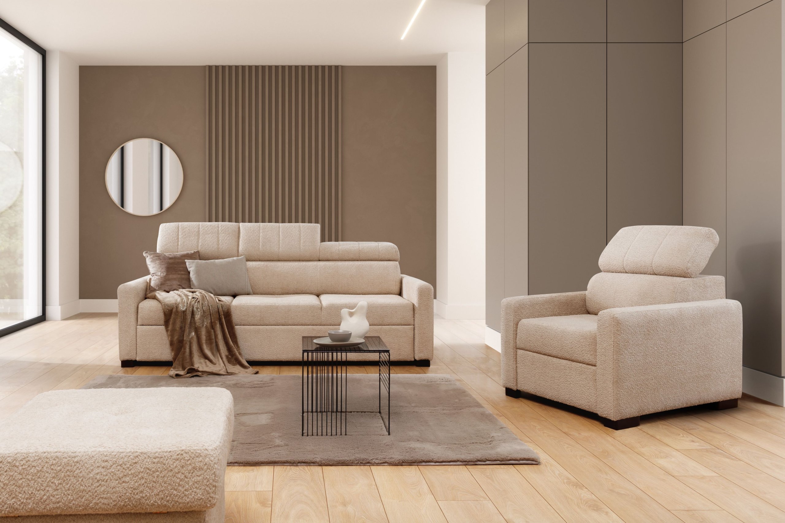 Fotelj Taremo – Sjedeće garniture Bogart više je od običnog komada namještaja. To je mjesto gdje se susreću udobnost i dizajn, gdje svaki detalj služi dobrom osjećaju korisnika. Zbog svoje pouzdane konstrukcije, promišljenih dimenzija i prilagodljivih elemenata predstavlja idealan izbor za svaki dom koji želi spojiti estetiku s praktičnošću.