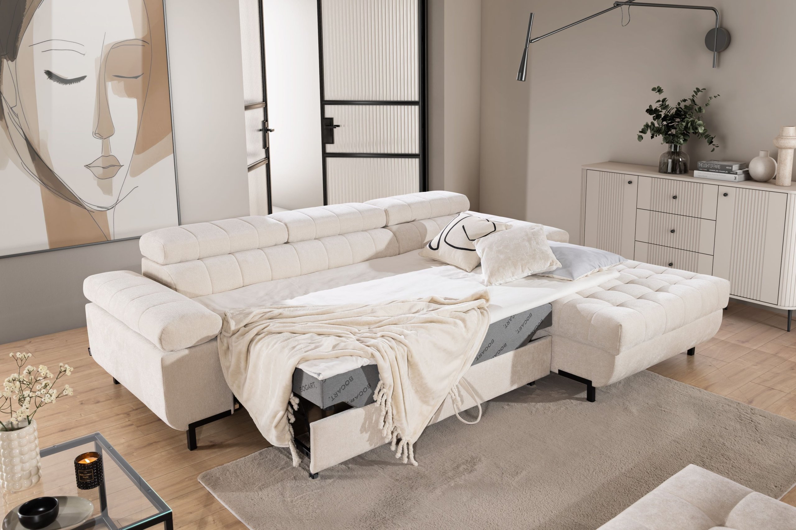 Svojim promišljenim dizajnom, kvalitetnim materijalima i suvremenim izgledom Kutna garnitura Tyrion L II – Bogart predstavlja savršenu ravnotežu između udobnosti, funkcionalnosti i vizualne profinjenosti. Izrađena u Poljskoj u renomiranoj tvornici Garniture Bogart nudi pouzdanu kvalitetu koju ćete cijeniti svakoga dana. Bez obzira postavite li je u središte dnevnog prostora ili u kut sobe, svojim karakterom i praktičnošću postat će središnji komad vašeg doma.