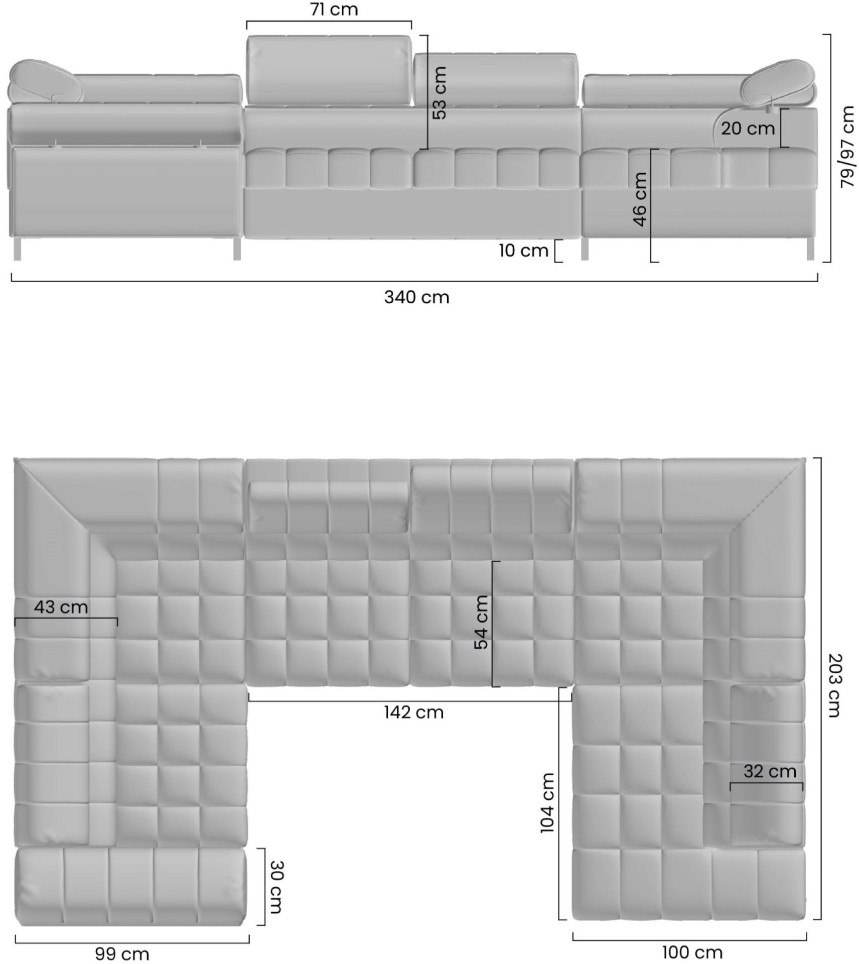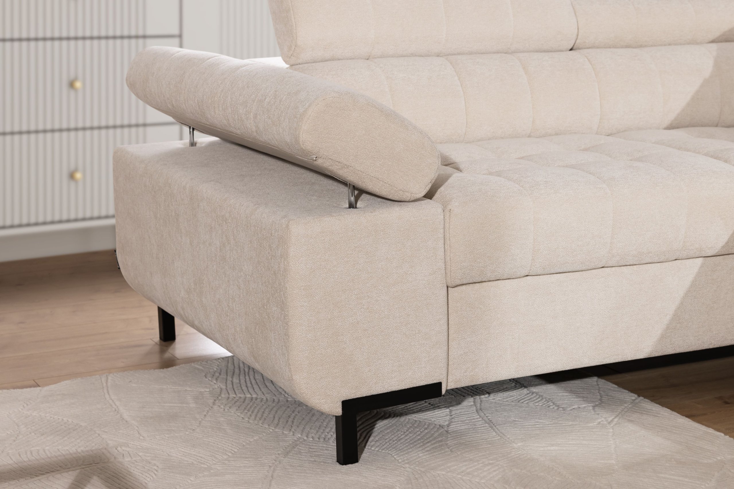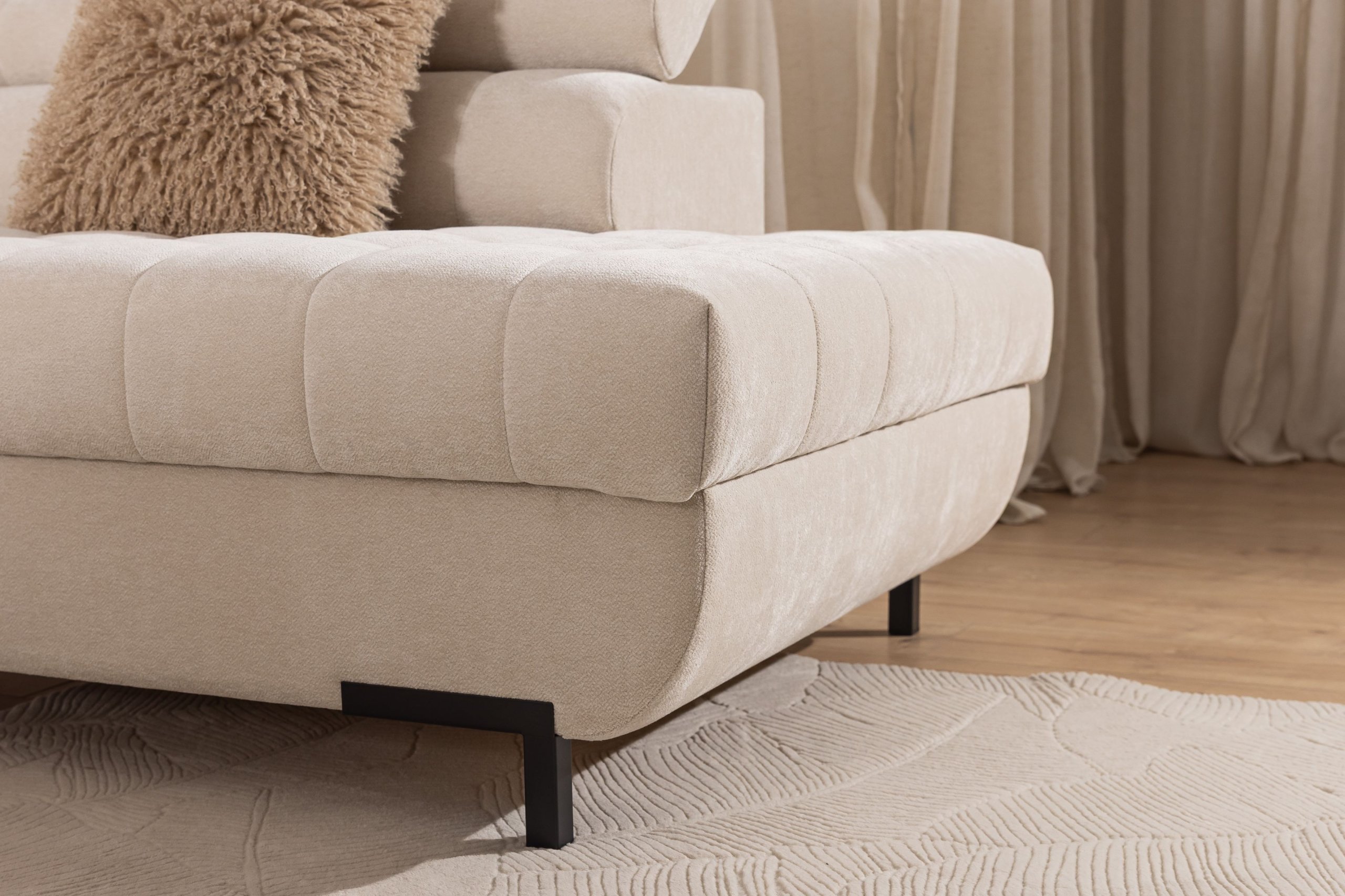Jedna od prednosti kutne garniture Tyrion su podesivi nasloni za glavu i nasloni za ruke. Svaki korisnik može prilagoditi nagib prema trenutnim potrebama – bilo pri čitanju, gledanju televizije ili odmoru. Takva prilagodljivost poboljšava ergonomiju i osigurava optimalnu potporu vratu i ramenima.