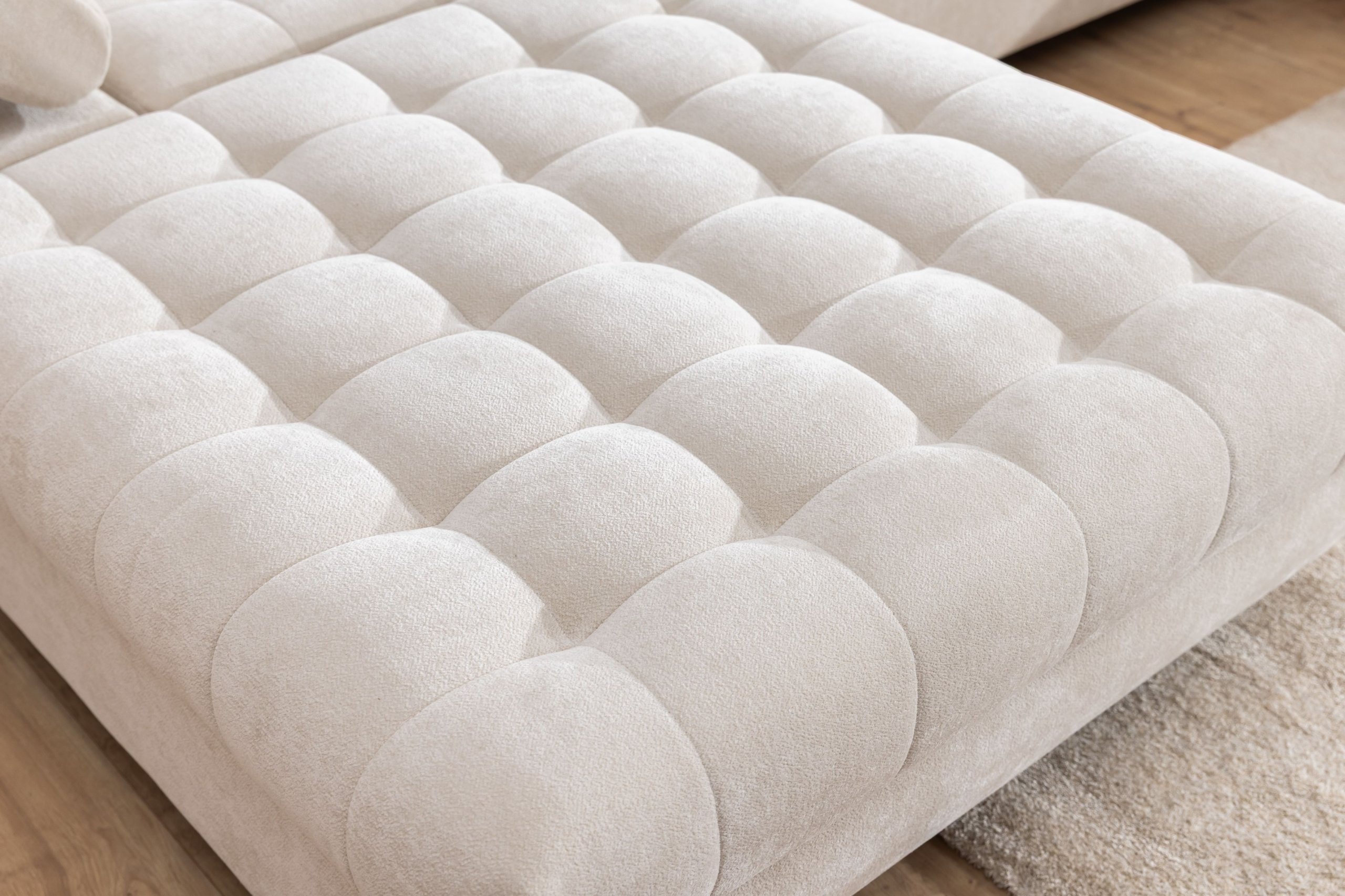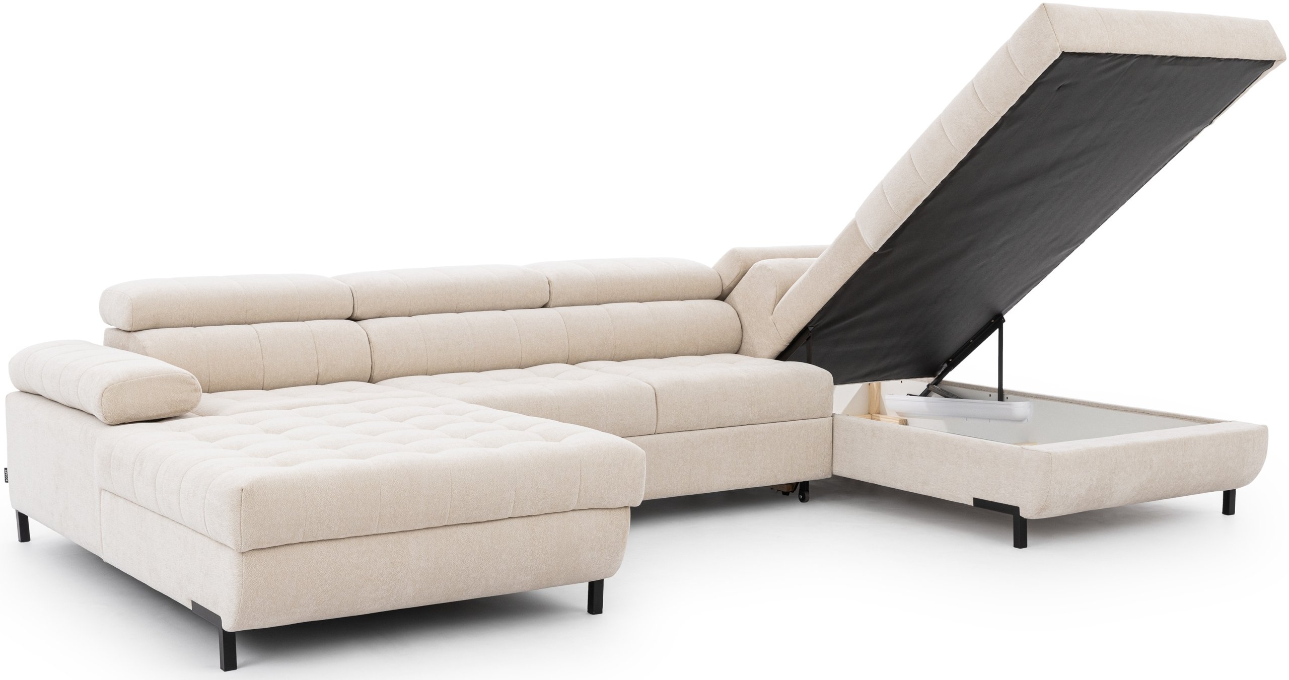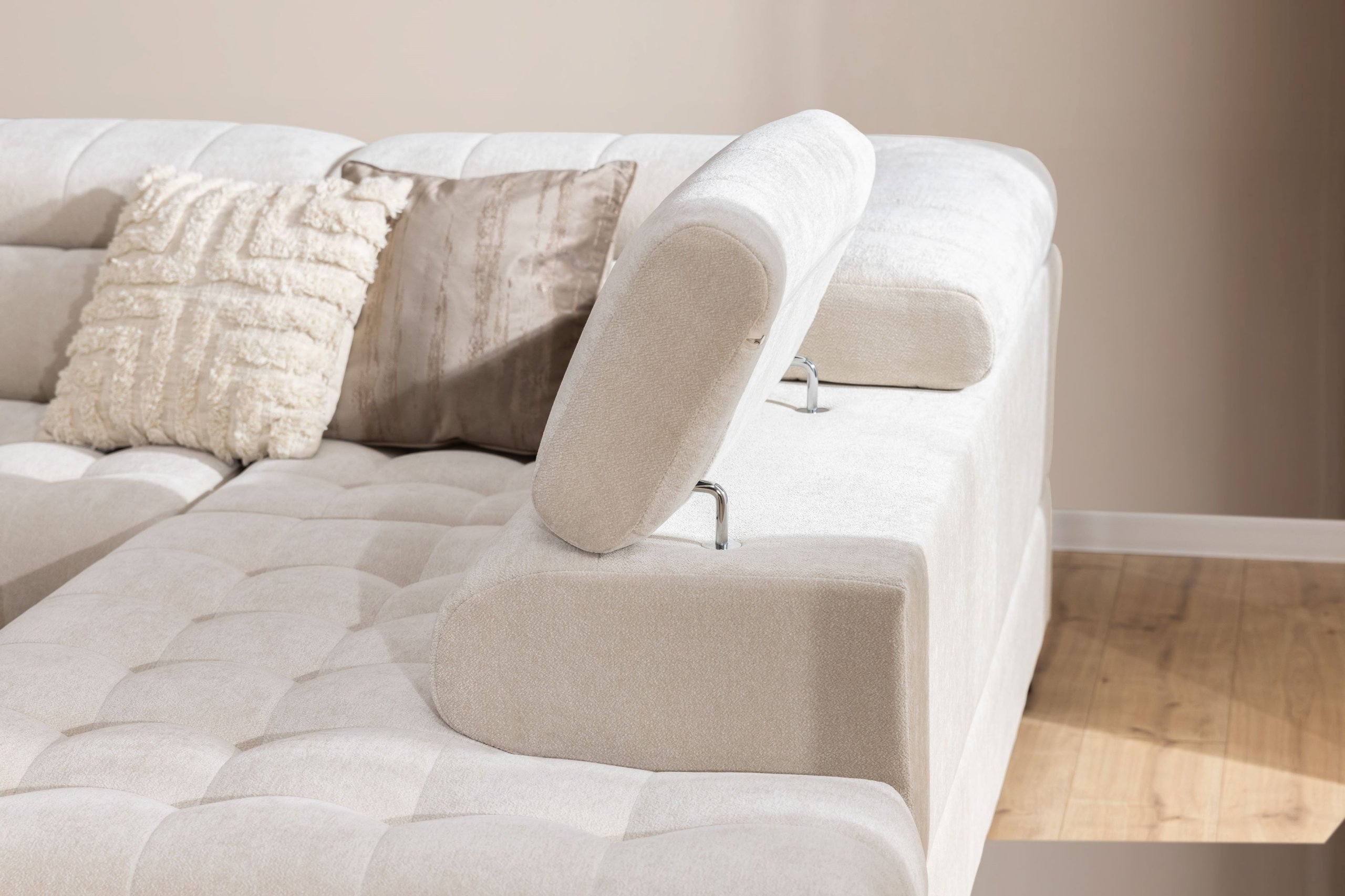Jedna od dodatnih prednosti kutne garniture Tyrion II je ladica za posteljinu, koja nudi praktičan prostor za pohranu deka, jastuka ili drugog tekstila. Time se održava red u prostoru, a potrebni predmeti uvijek su pri ruci. Garnitura je dostupna u više boja, što omogućuje usklađivanje s različitim interijerima – od svijetlih, minimalističkih prostora do bogatijih, kontrastnih kombinacija.