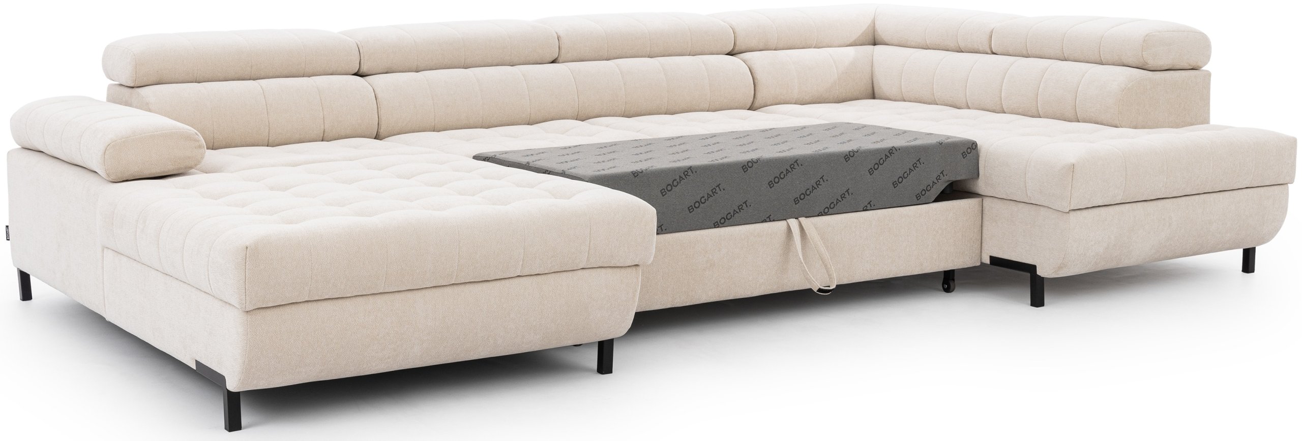 Kutna garnitura u obliku slova U Tyrion II odličan je izbor za sve koji cijene kvalitetnu izradu, funkcionalnost i moderan dizajn. Njezin prostrani dizajn omogućuje ugodno druženje, a ujedno nudi i praktičnu mogućnost spavanja. Kombinacijom kvalitetnih materijala, izdržljive konstrukcije i elegantnog izgleda lako se uklapa u svaki prostor, bez obzira na stil uređenja. Bogart ovim modelom dokazuje da je moguće spojiti estetiku i funkcionalnost bez kompromisa.