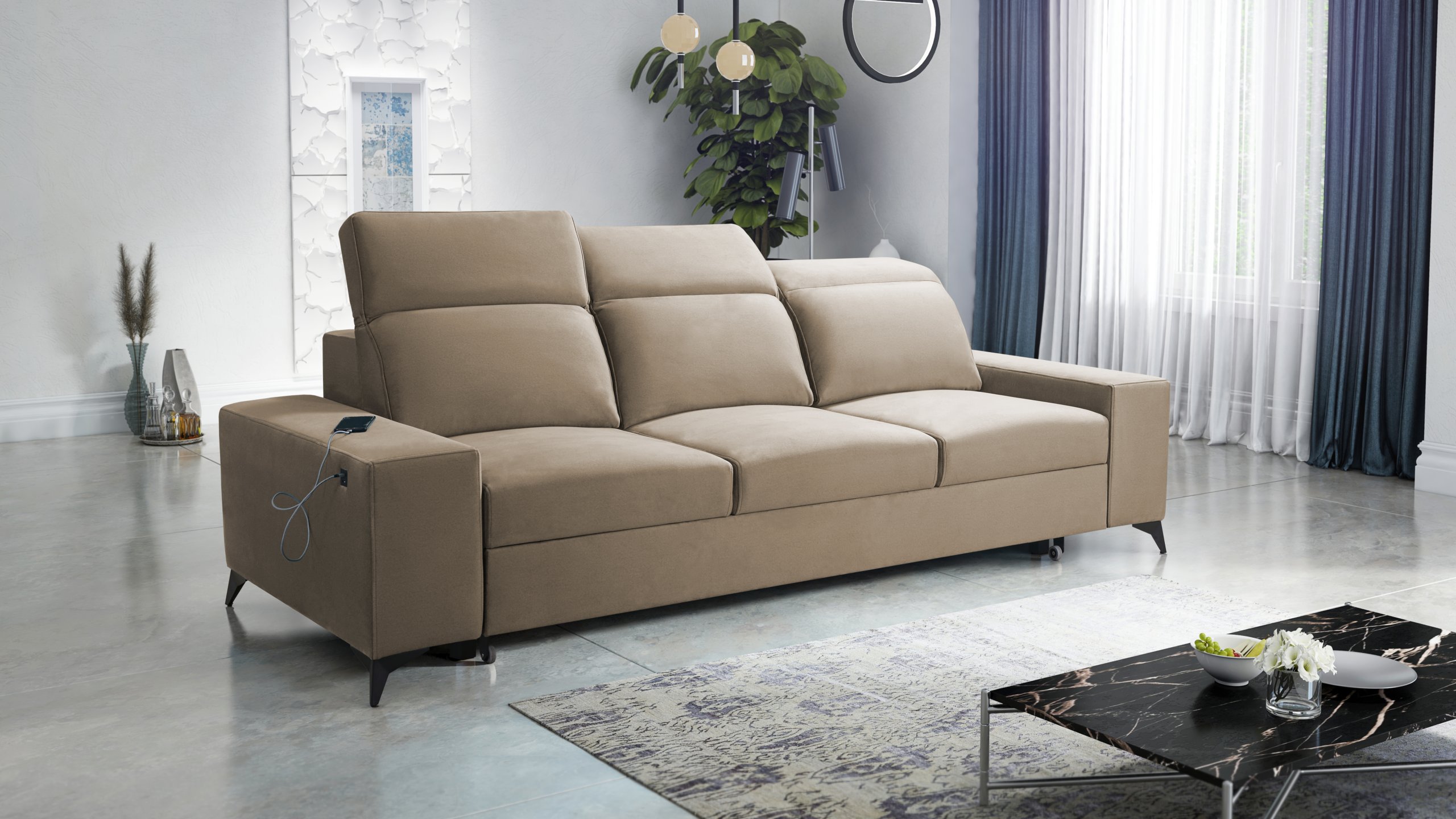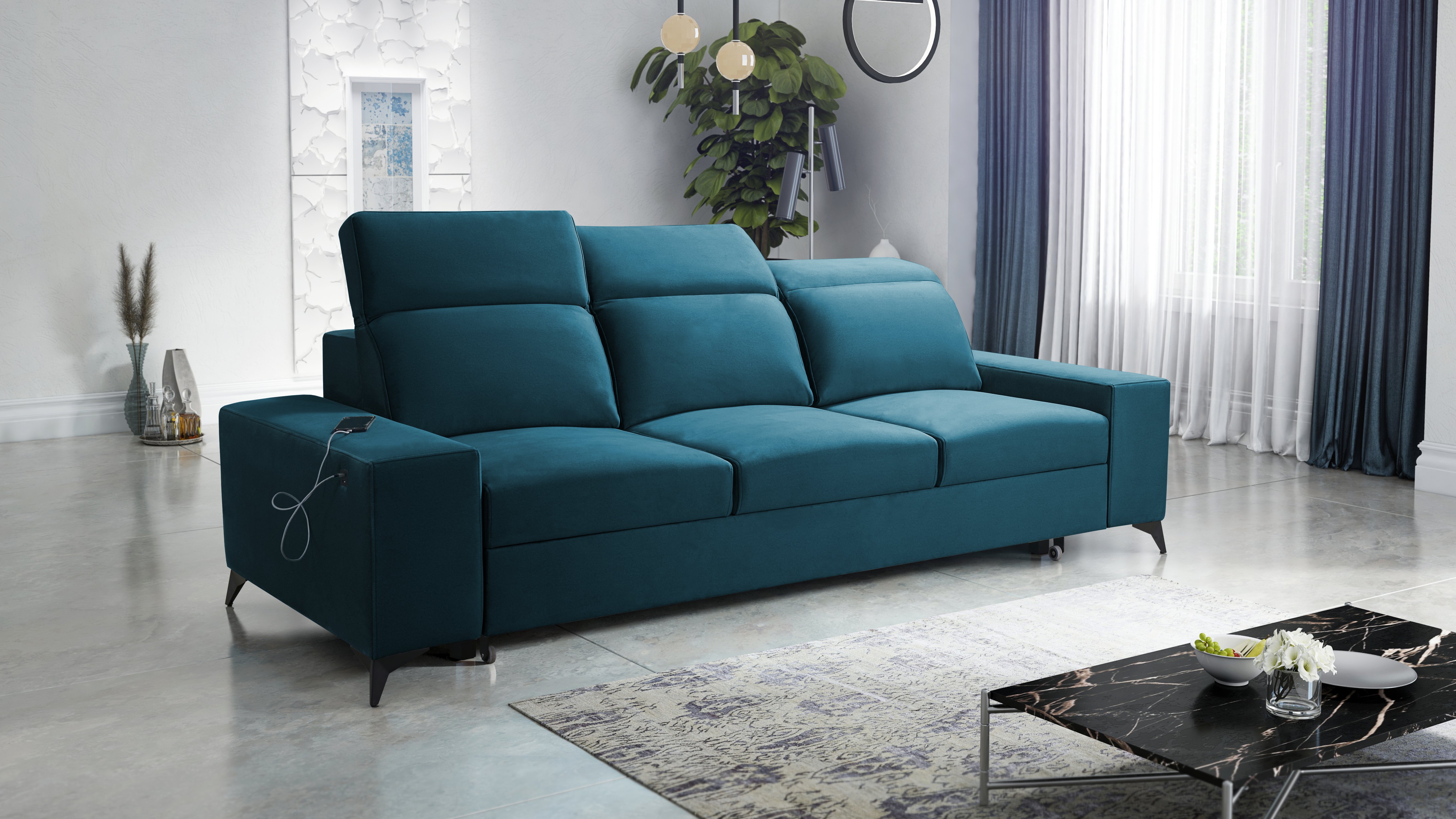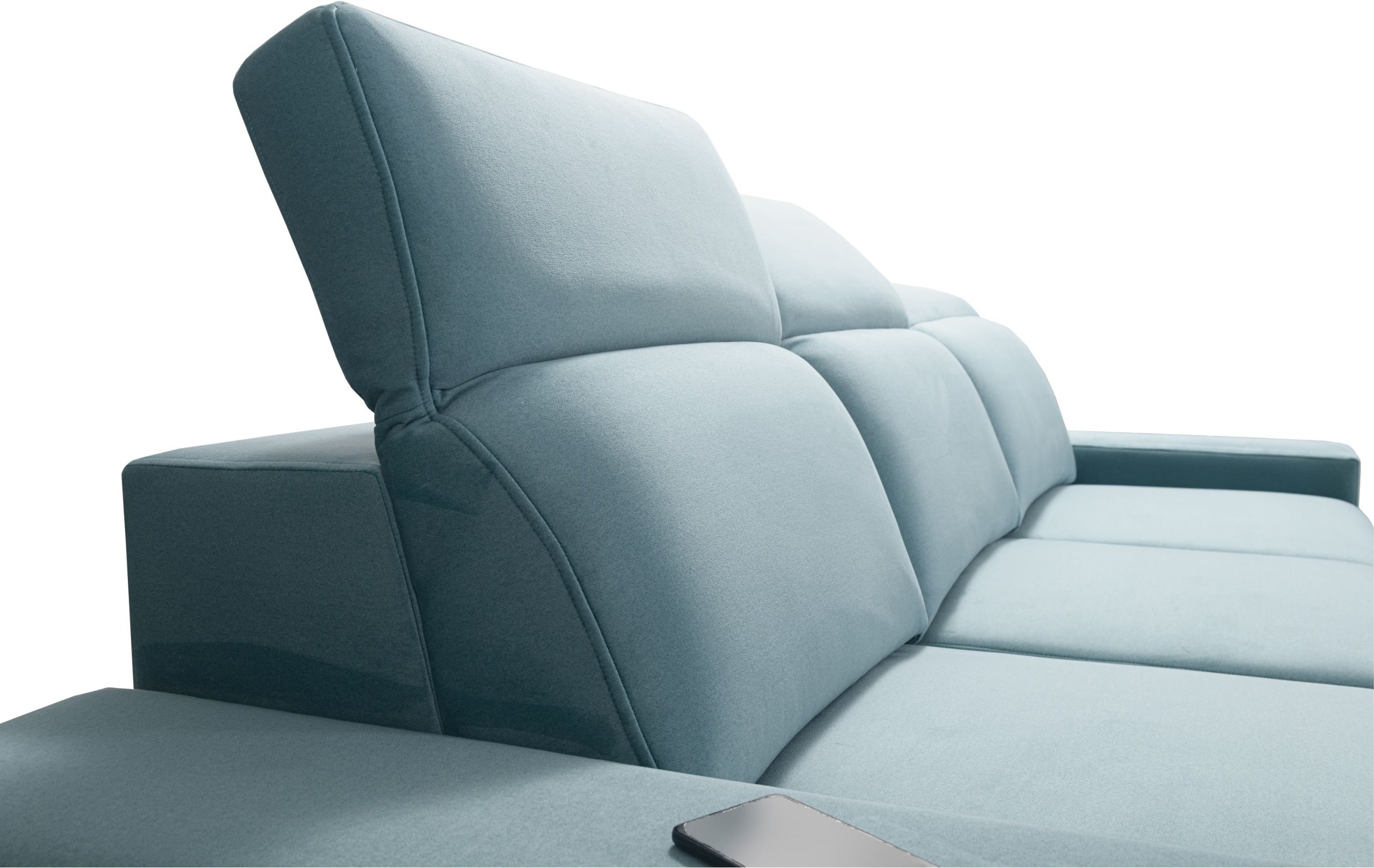 Model uključuje tri podesiva naslona za glavu, koje možete individualno prilagoditi prema visini i željenom položaju sjedenja. Ova funkcionalnost povećava udobnost tijekom čitanja, gledanja televizije ili opuštanja nakon dugog dana. Podesivi nasloni oblikovani su tako da održavaju cjelokupni izgled trosjeda uravnoteženim i estetski dovršenim.