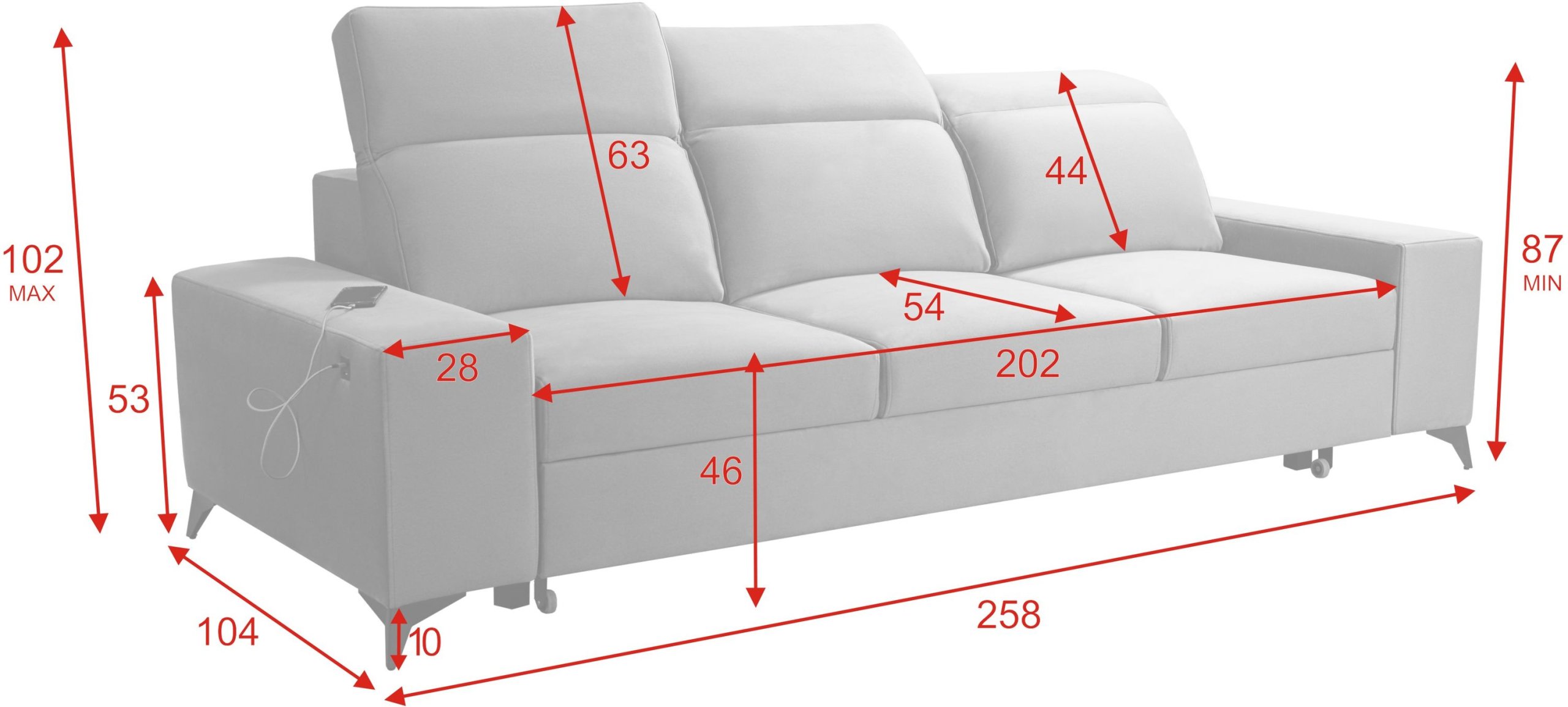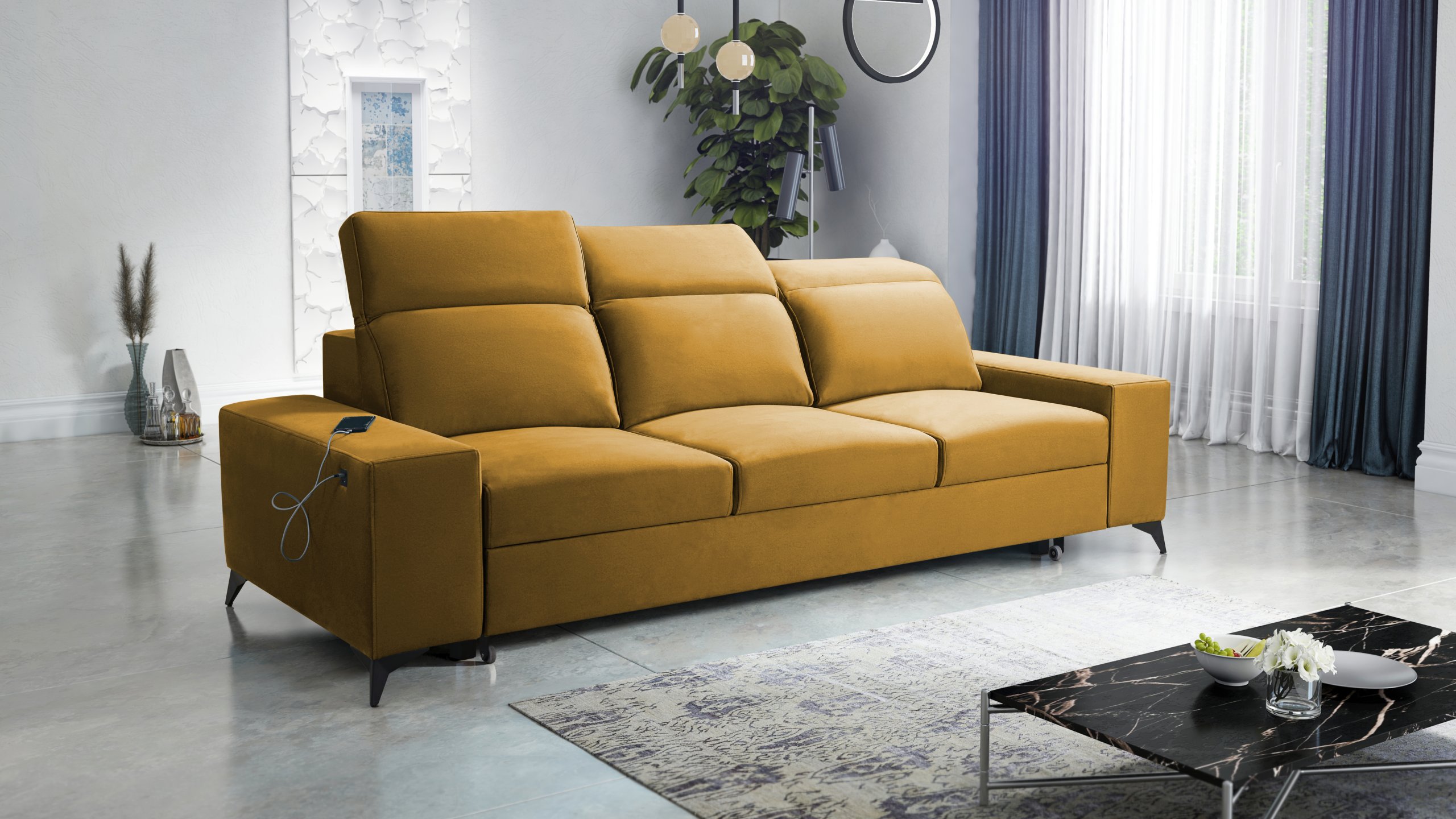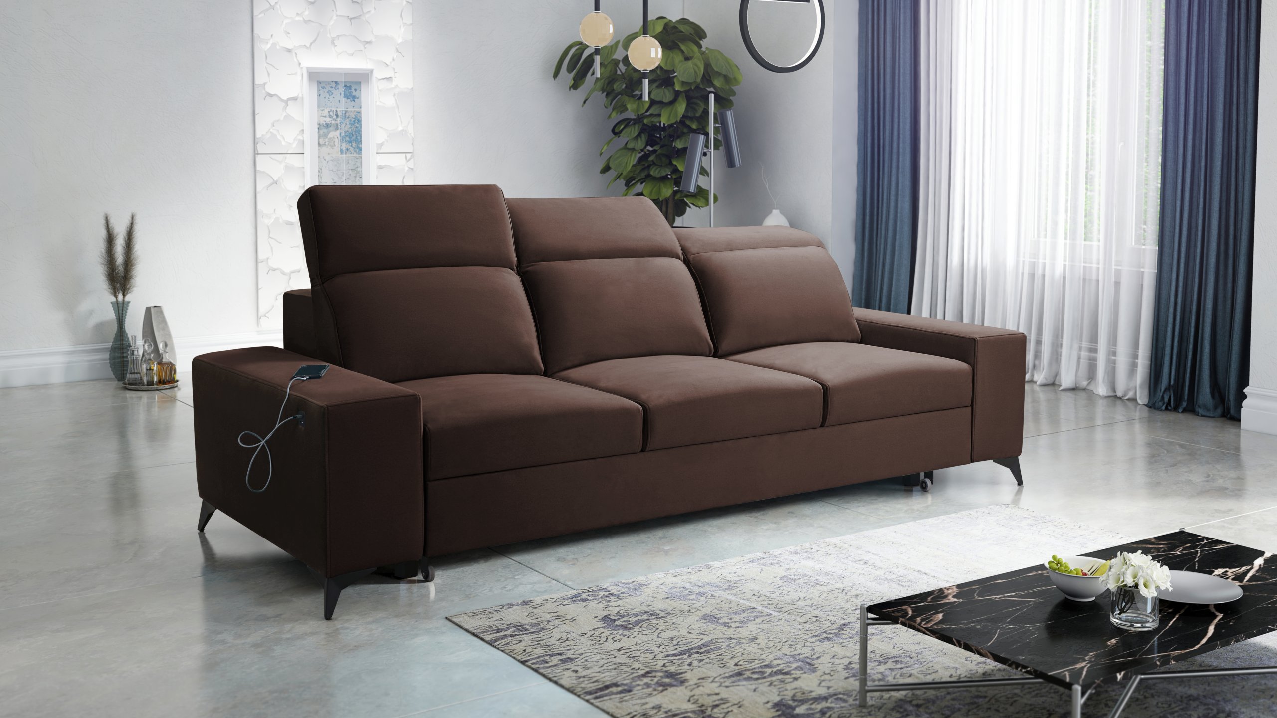 Model uključuje tri podesiva naslona za glavu, koje možete individualno prilagoditi prema visini i željenom položaju sjedenja. Ova funkcionalnost povećava udobnost tijekom čitanja, gledanja televizije ili opuštanja nakon dugog dana. Podesivi nasloni oblikovani su tako da održavaju cjelokupni izgled trosjeda uravnoteženim i estetski dovršenim.