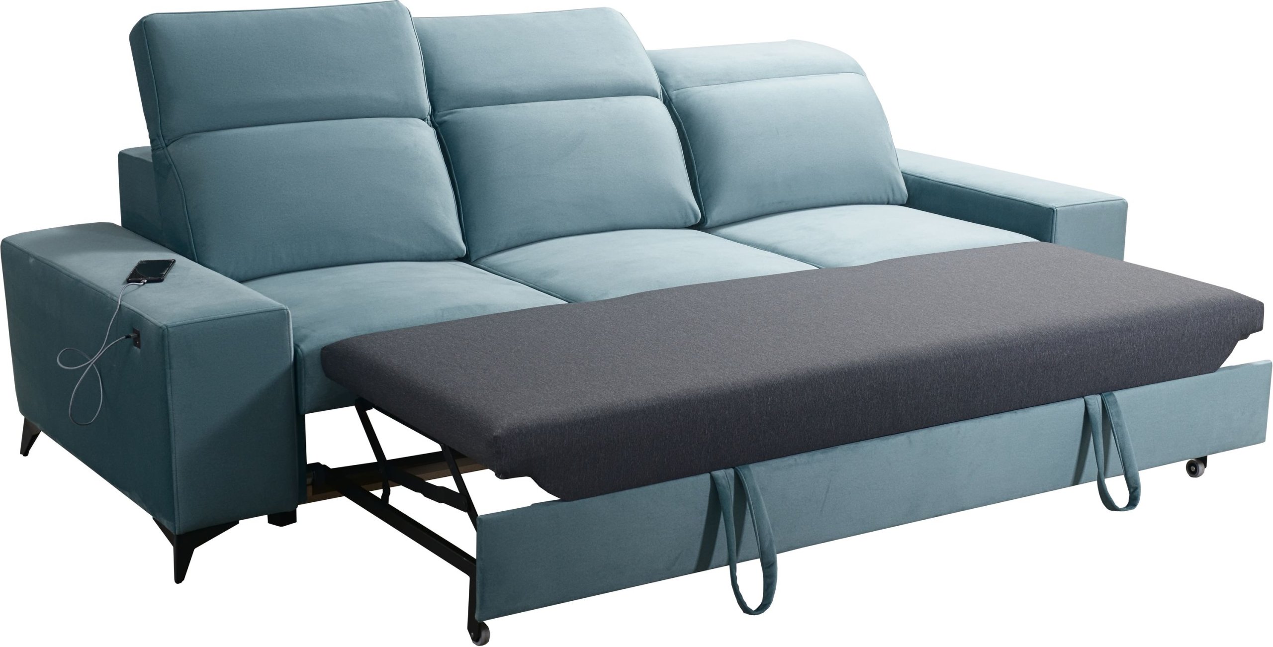 Trosjed Bartone opremljen je praktičnim mehanizmom Dolphin, koji omogućuje jednostavno razvlačenje – idealno kada vam je potreban dodatni ležaj za goste. Površina za spavanje mjeri 195x124 cm, a širina prostora za spavanje iznosi 130 cm. Iako model nema ladicu za posteljinu, nudi dovoljno prostora za udoban san dviju osoba. Dizajn bez ladice omogućuje nižu, elegantniju siluetu i lakše čišćenje ispod namještaja.