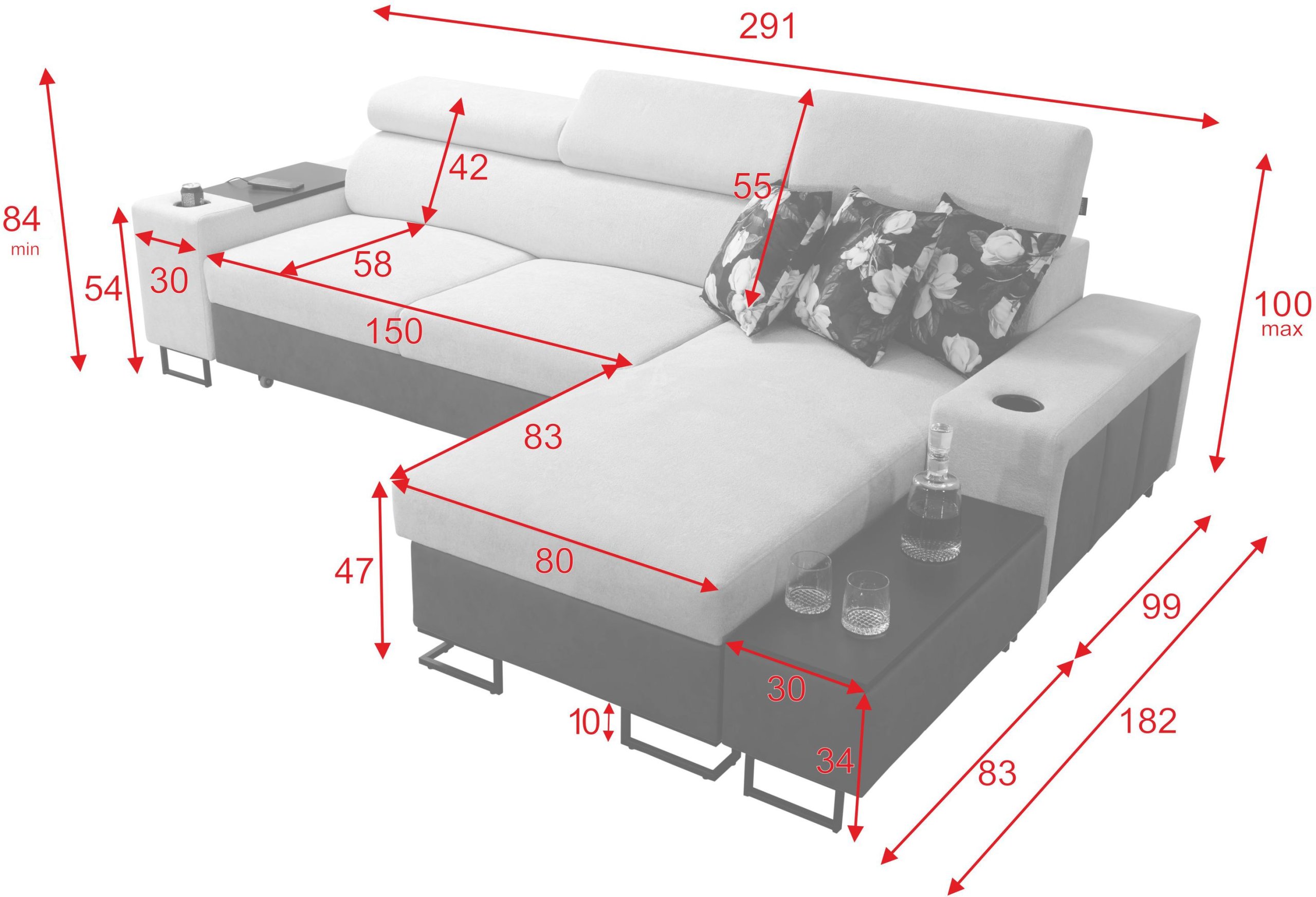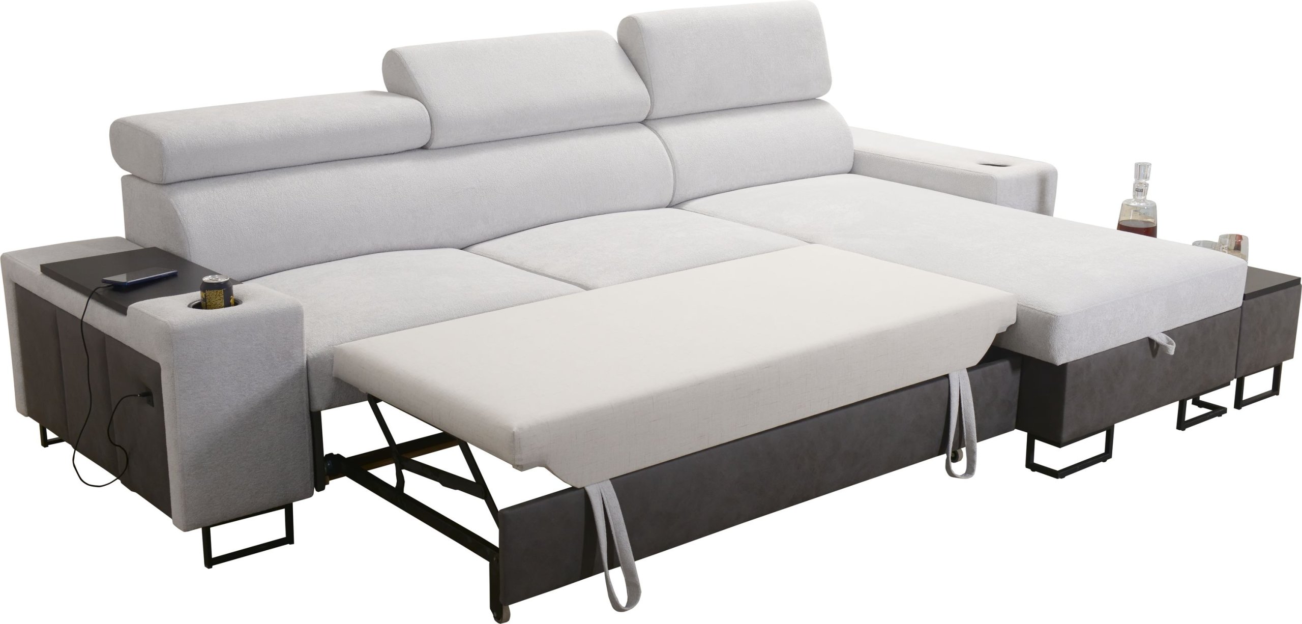 Garnitura je opremljena pouzdanim mehanizmom Delfin, koji omogućuje brzo i jednostavno razvlačenje u ležajnu površinu 226x127 cm. Ispod sjedala skriva se prostrana ladica za posteljinu, namijenjena spremanju deka, jastuka ili drugih dodataka. Dodatne funkcionalnosti uključuju: