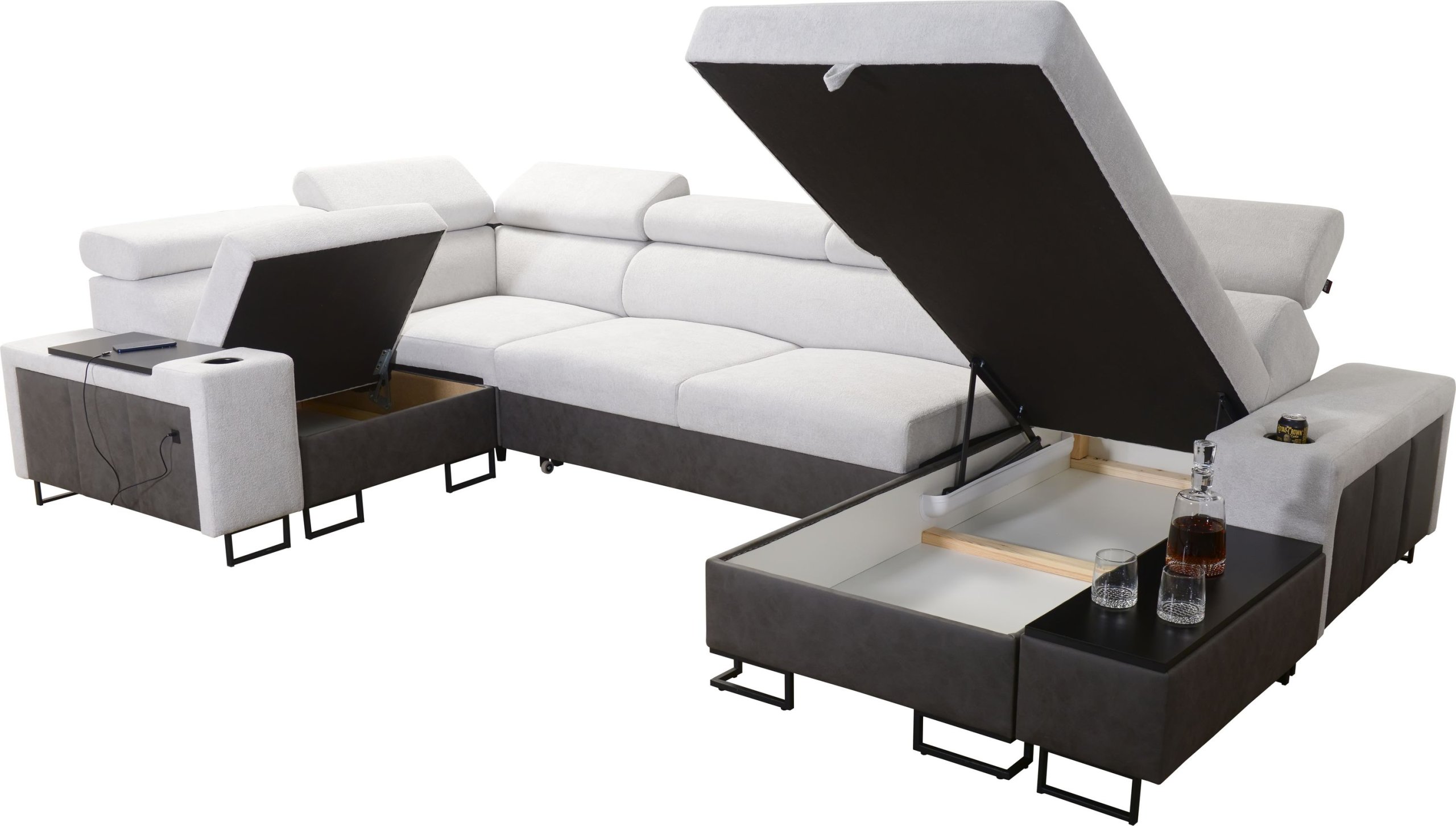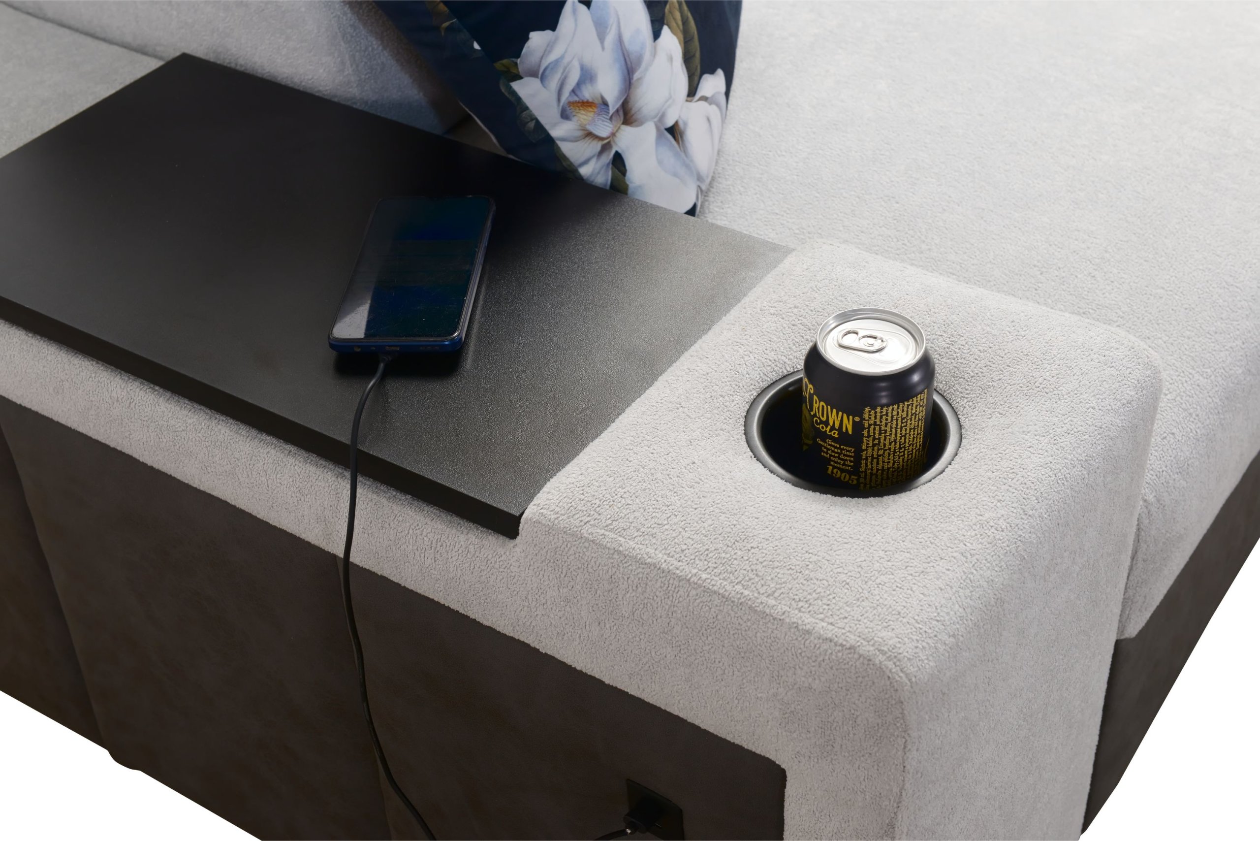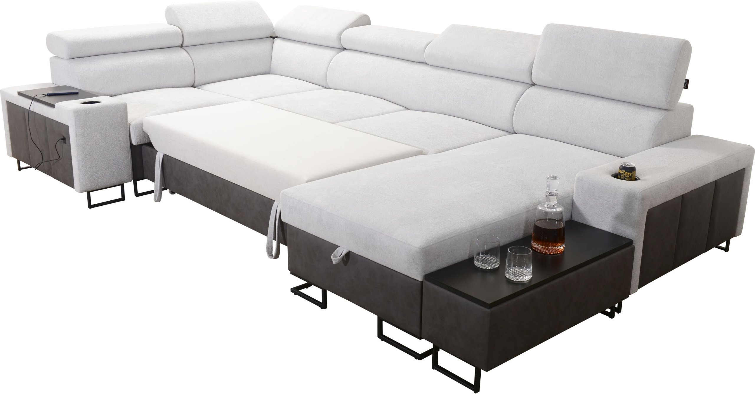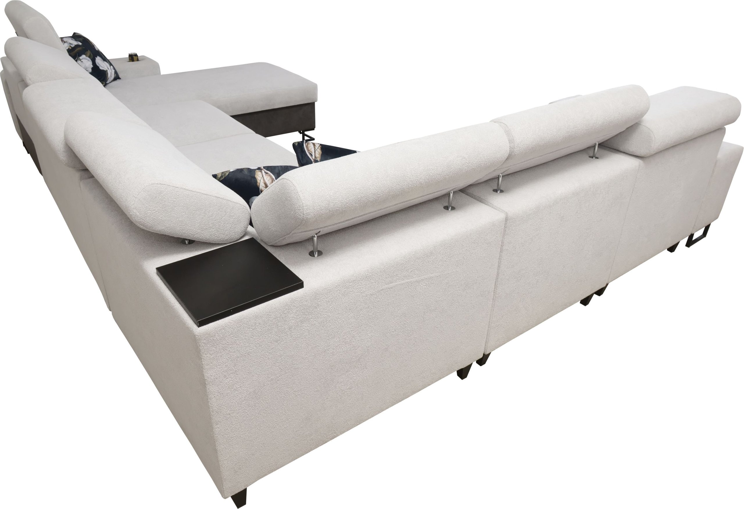 Kutna garnitura uključuje policu u kutu, koja nadopunjuje funkcionalnost i dizajn. Moguće je naručiti jastuke s patentnim zatvaračem (uz nadoplatu), što olakšava čišćenje i zamjenu navlaka. Površina za spavanje serijski je izrađena u kontrastnoj kombinaciji boja, no može se po želji naručiti i u boji garniture (uz nadoplatu). U standardnoj izvedbi proizvođač nasumično odabire nijansu i strukturu površine za spavanje, što znači da je svaki komad pomalo jedinstven.