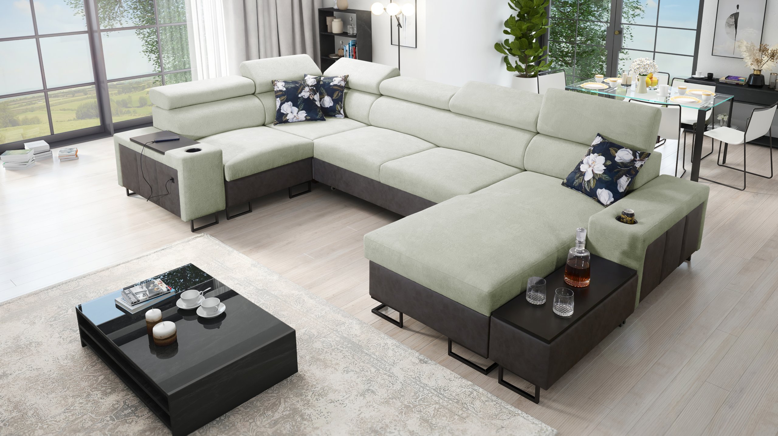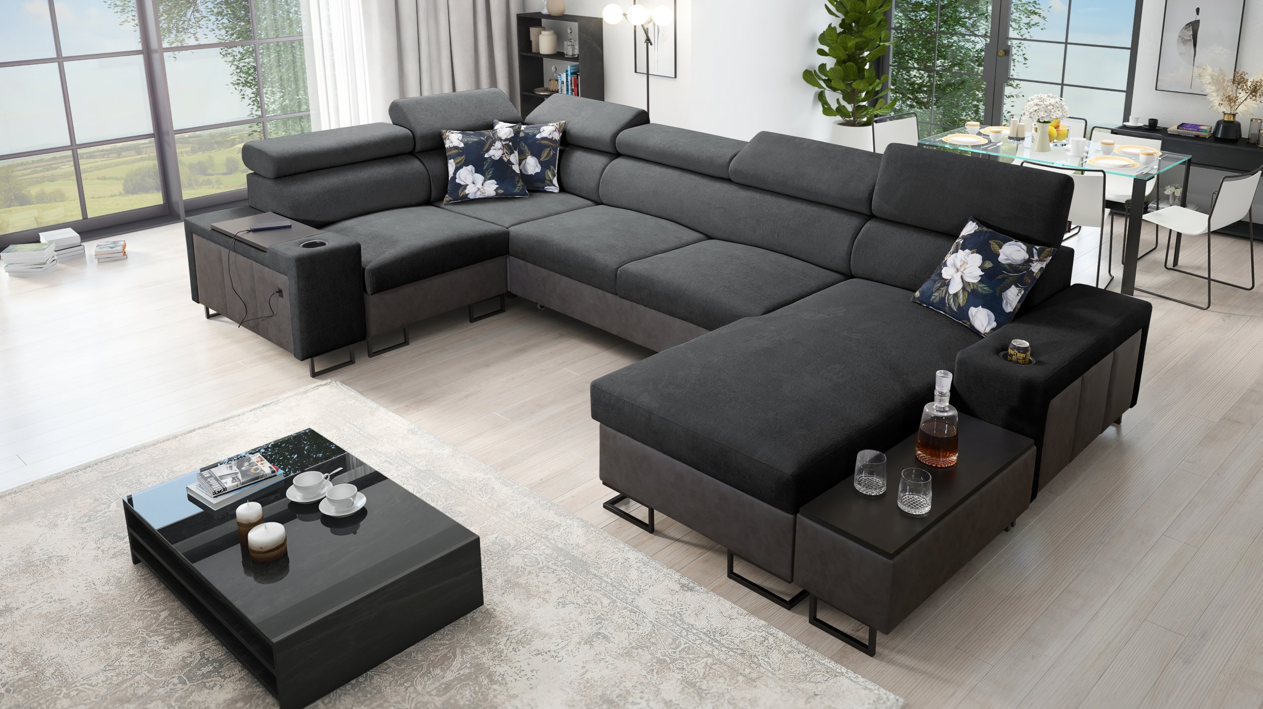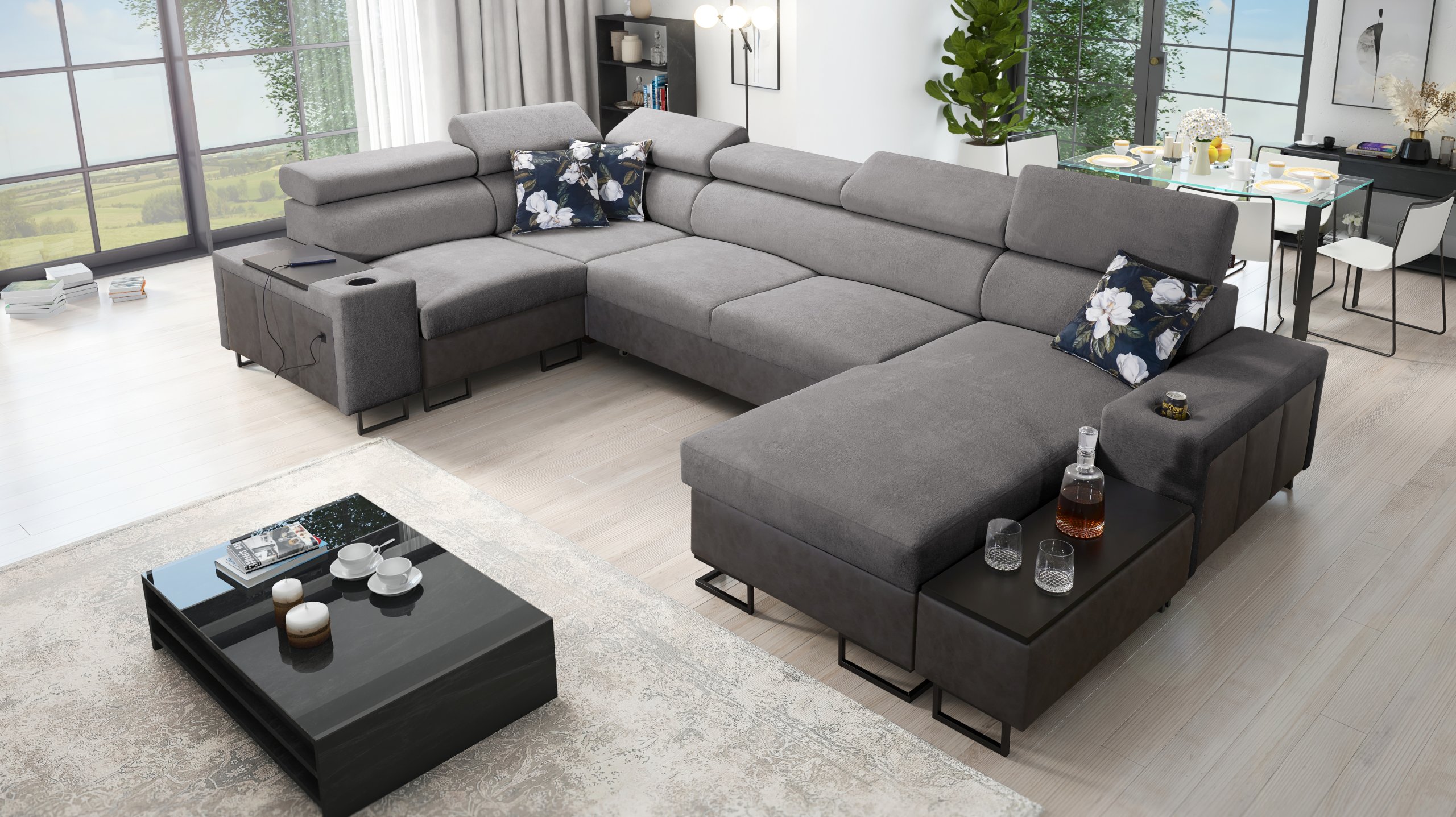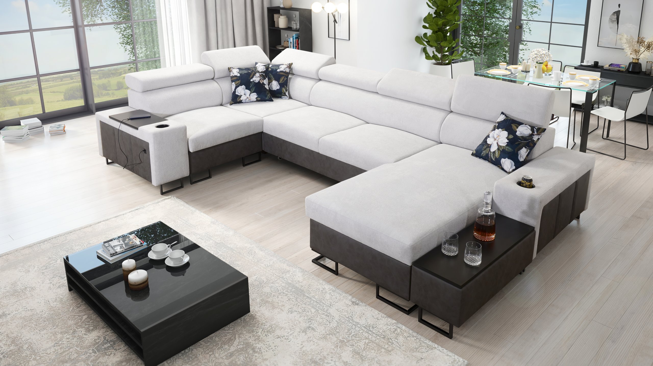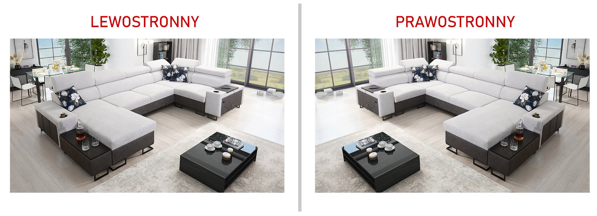 Kutna garnitura uključuje policu u kutu, koja nadopunjuje funkcionalnost i dizajn. Moguće je naručiti jastuke s patentnim zatvaračem (uz nadoplatu), što olakšava čišćenje i zamjenu navlaka. Površina za spavanje serijski je izrađena u kontrastnoj kombinaciji boja, no može se po želji naručiti i u boji garniture (uz nadoplatu). U standardnoj izvedbi proizvođač nasumično odabire nijansu i strukturu površine za spavanje, što znači da je svaki komad pomalo jedinstven.
