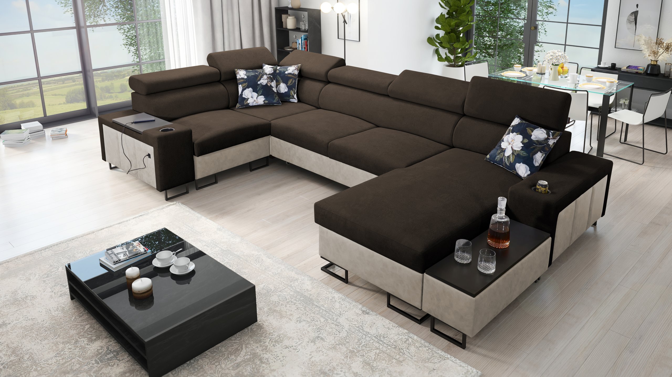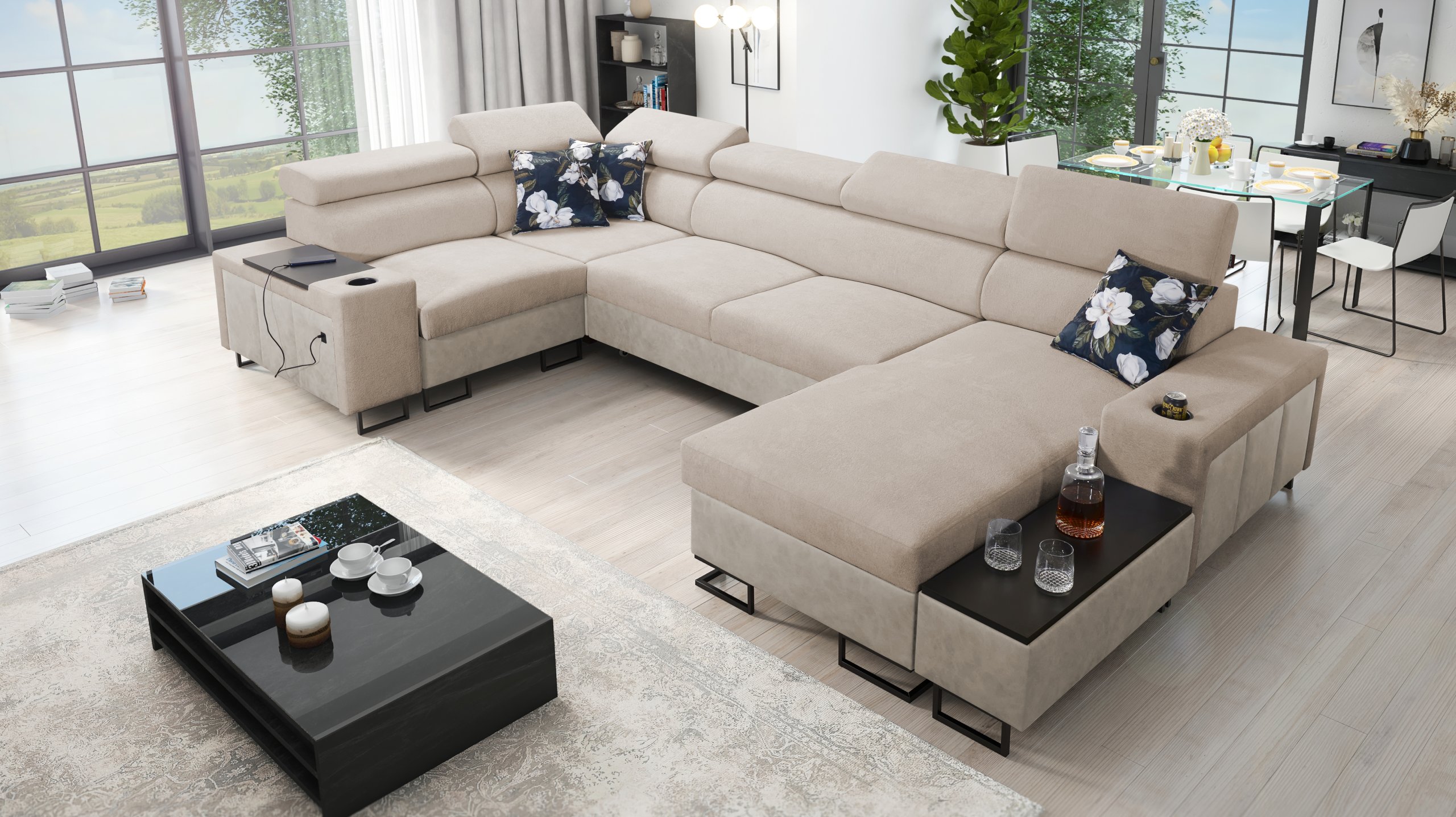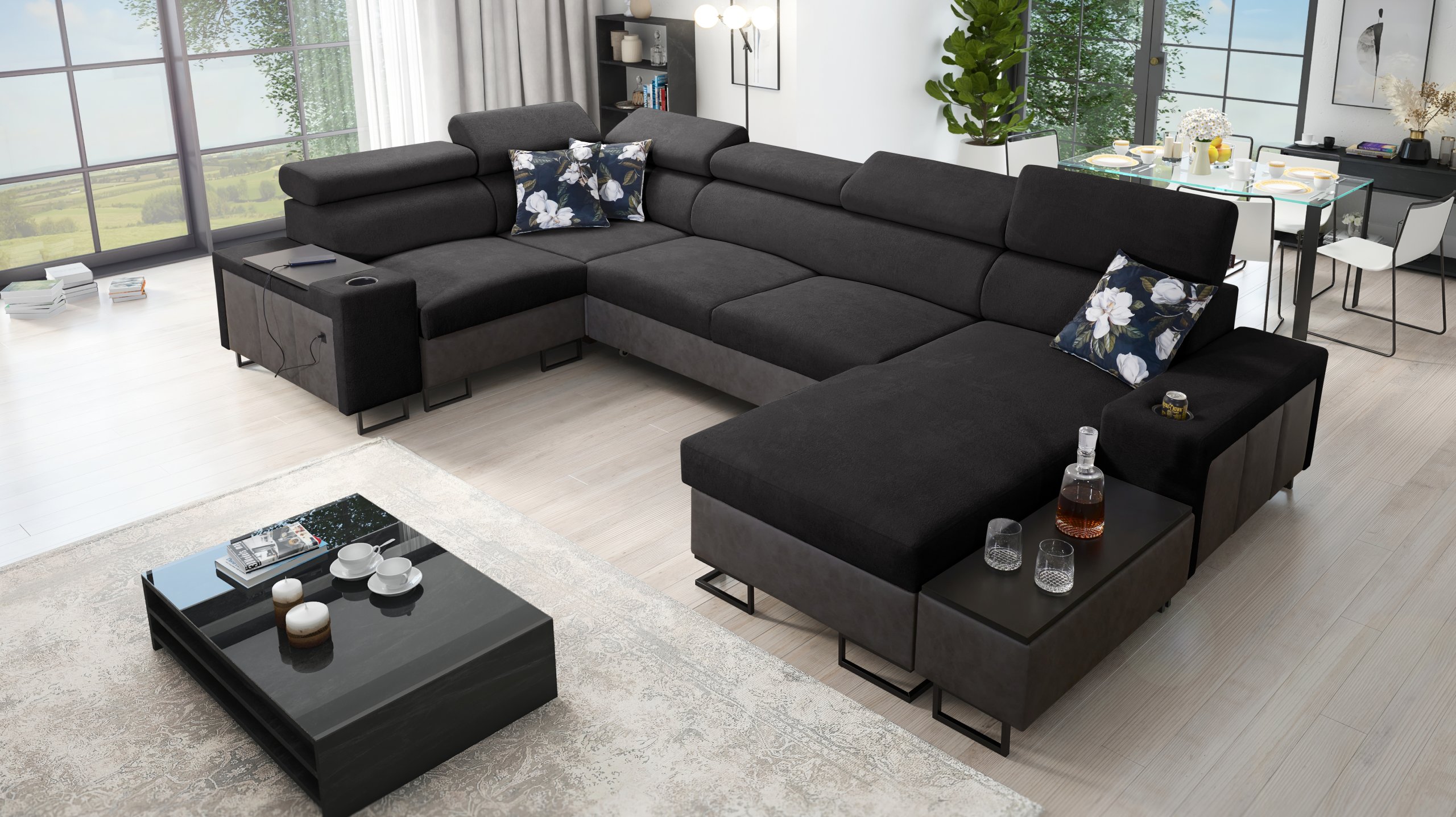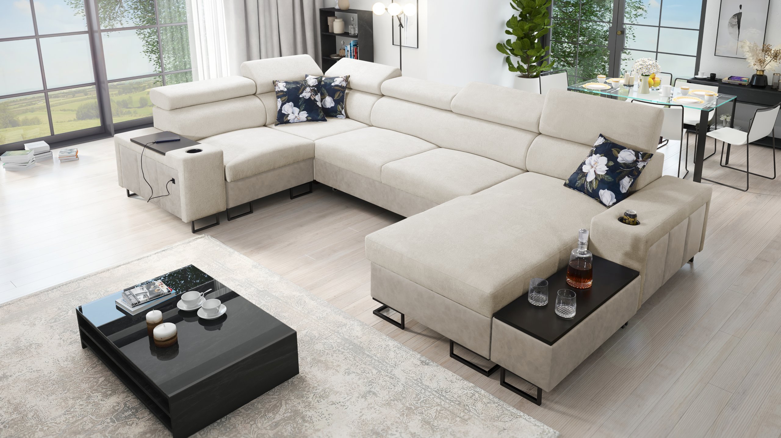 Kutna garnitura uključuje policu u kutu, koja nadopunjuje funkcionalnost i dizajn. Moguće je naručiti jastuke s patentnim zatvaračem (uz nadoplatu), što olakšava čišćenje i zamjenu navlaka. Površina za spavanje serijski je izrađena u kontrastnoj kombinaciji boja, no može se po želji naručiti i u boji garniture (uz nadoplatu). U standardnoj izvedbi proizvođač nasumično odabire nijansu i strukturu površine za spavanje, što znači da je svaki komad pomalo jedinstven.