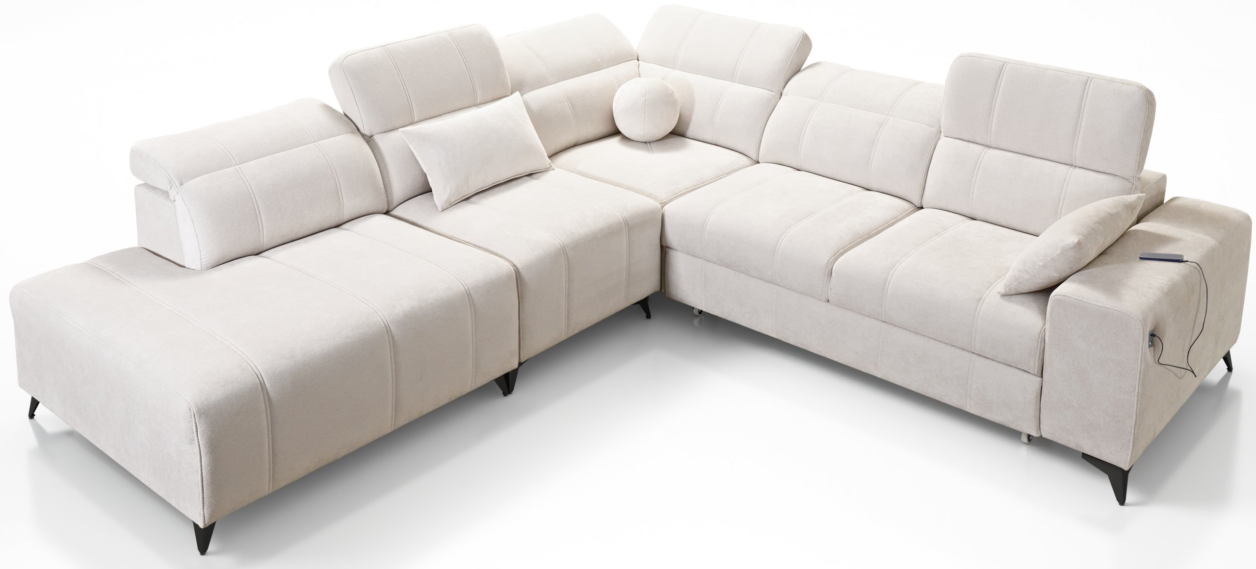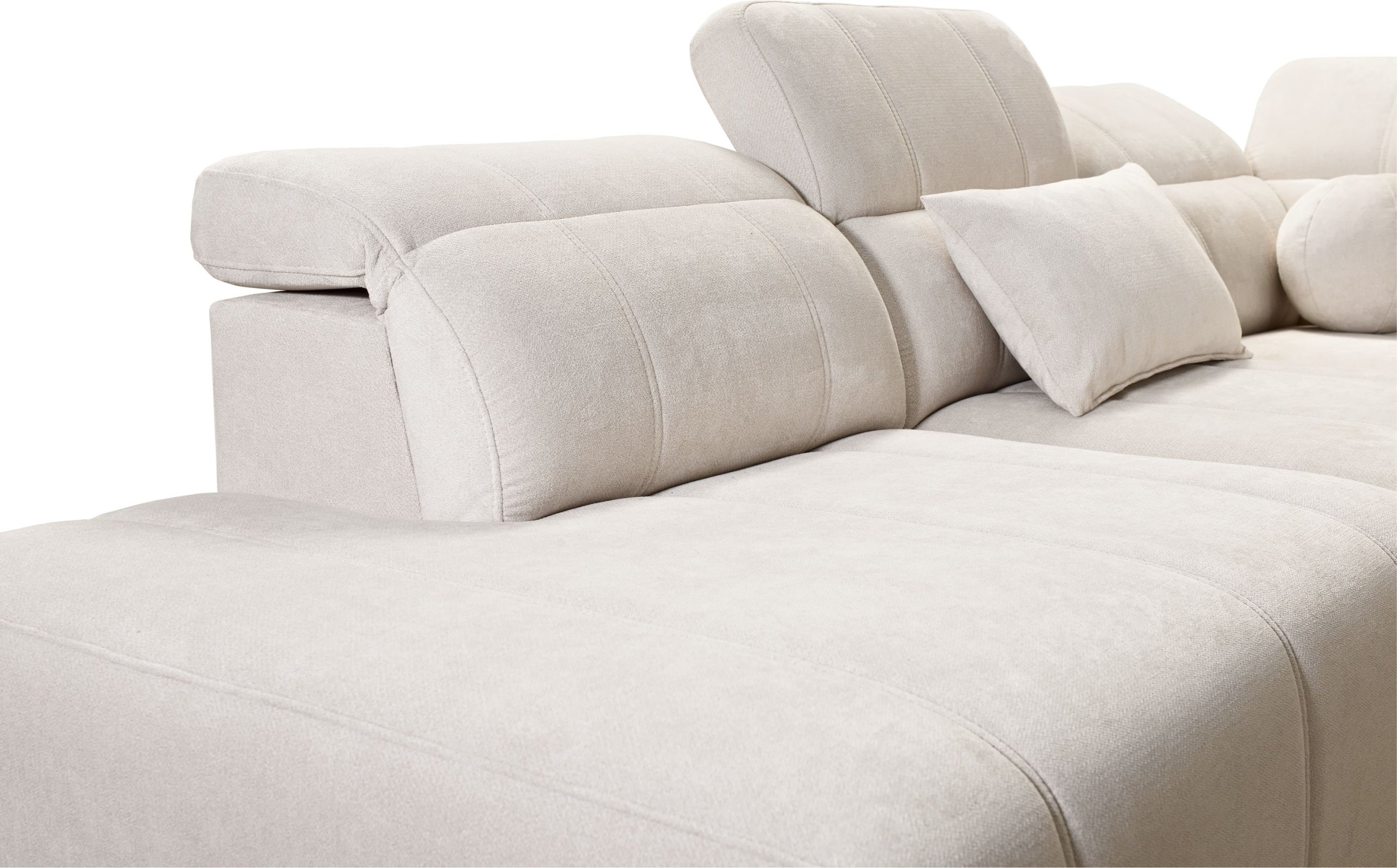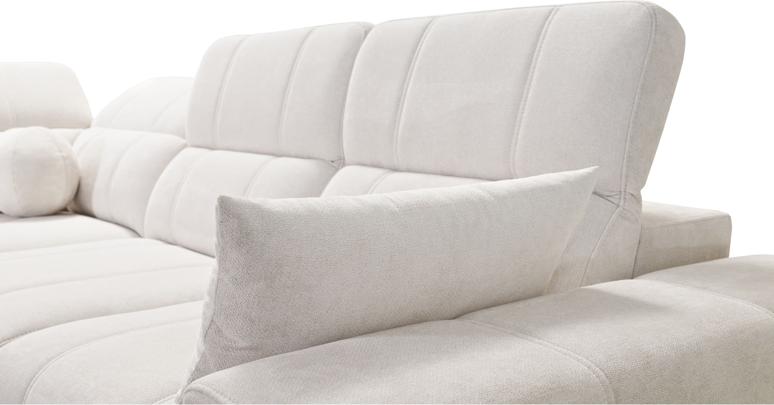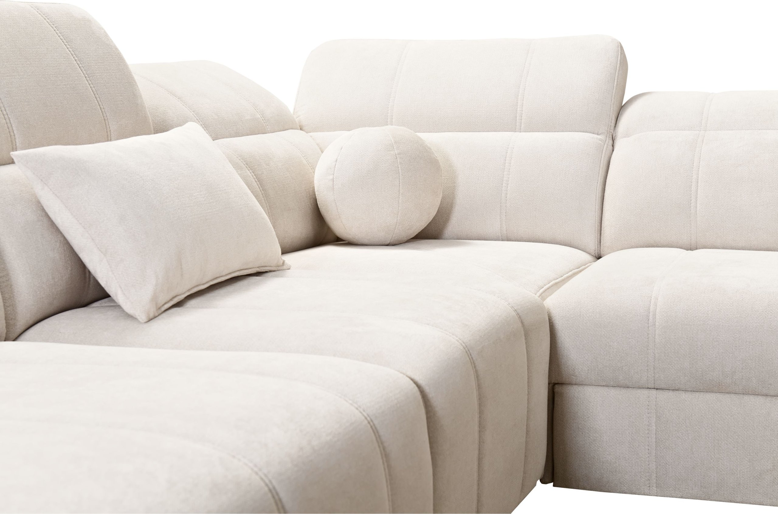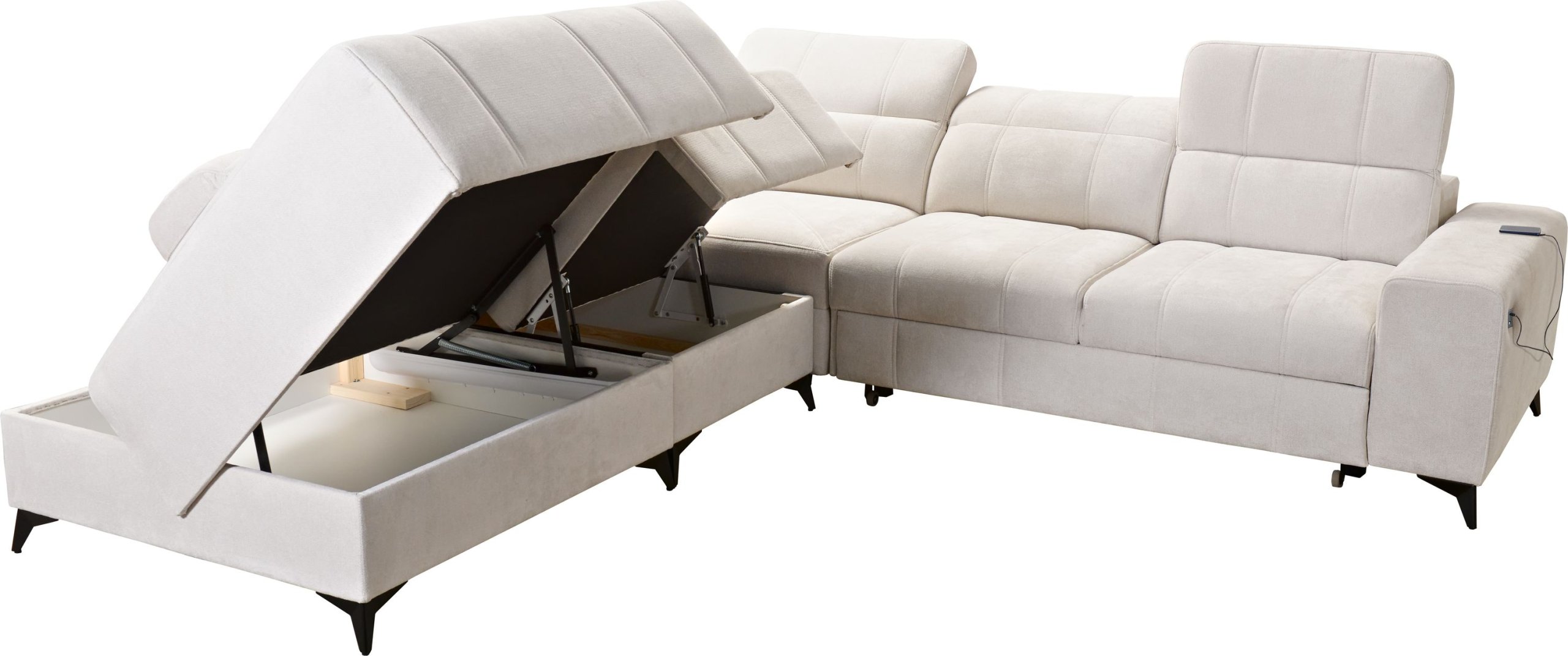 Osim toga, garnitura ima dva prostrana spremnika za posteljinu, diskretno integrirana ispod sjednog dijela. Pohrana deka, jastuka ili dodatnih navlaka tako je uvijek pri ruci, bez narušavanja estetskog izgleda namještaja.