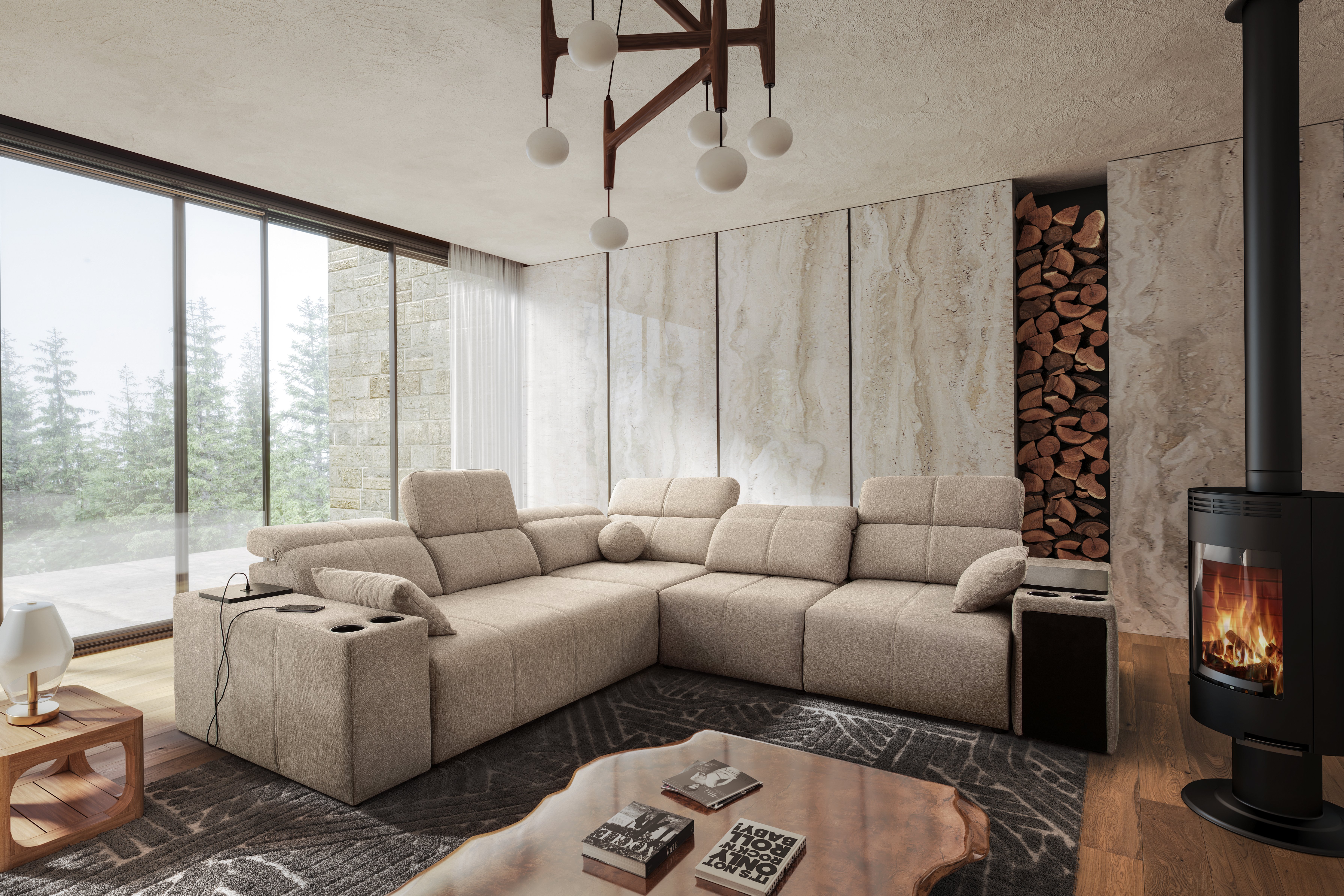 Sustav podesivih naslona omogućuje prilagodbu dubine sjedala od 56 do 69 cm, što znači da se garnitura potpuno može prilagoditi različitim korisnicima. Glavni modul, tzv. »dvojka«, ima jedinstven, pomični naslon, kao i ležajni dio, što omogućuje optimalnu potporu u svakom položaju. Takva prilagodljivost idealna je za obitelji ili pojedince koji cijene udobnost po mjeri.