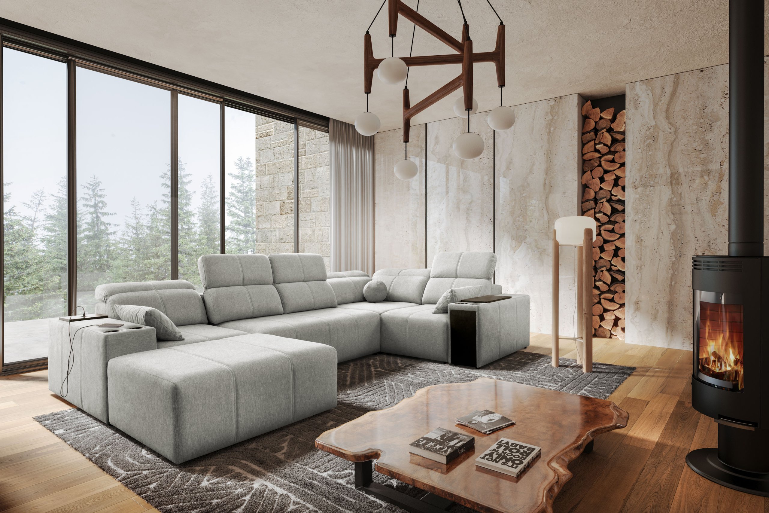Okvir kutne garniture izrađen je od kvalitetnog drva, kombiniranog s ivericom, što jamči stabilnost i dug vijek trajanja. Sjedni dio sadrži sustav valovitih opruga koji zajedno s pjenastom jezgrom T-30 debljine 10 cm osigurava optimalnu udobnost i elastičnost. Ova kombinacija omogućuje da se sjedalo ne ulegne i dugo zadrži svoj oblik. Garnitura je zamišljena kao samostojeći komad namještaja, pa ju je moguće smjestiti i u sredinu prostorije, gdje će svojom U-formom stvoriti središnju točku dnevnog prostora.