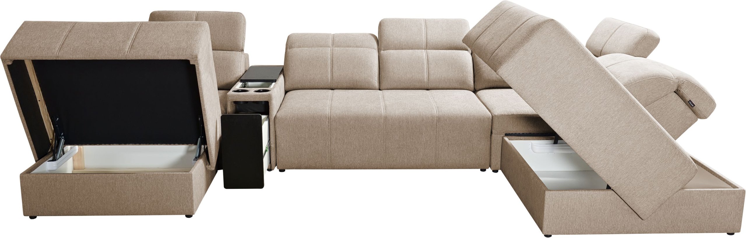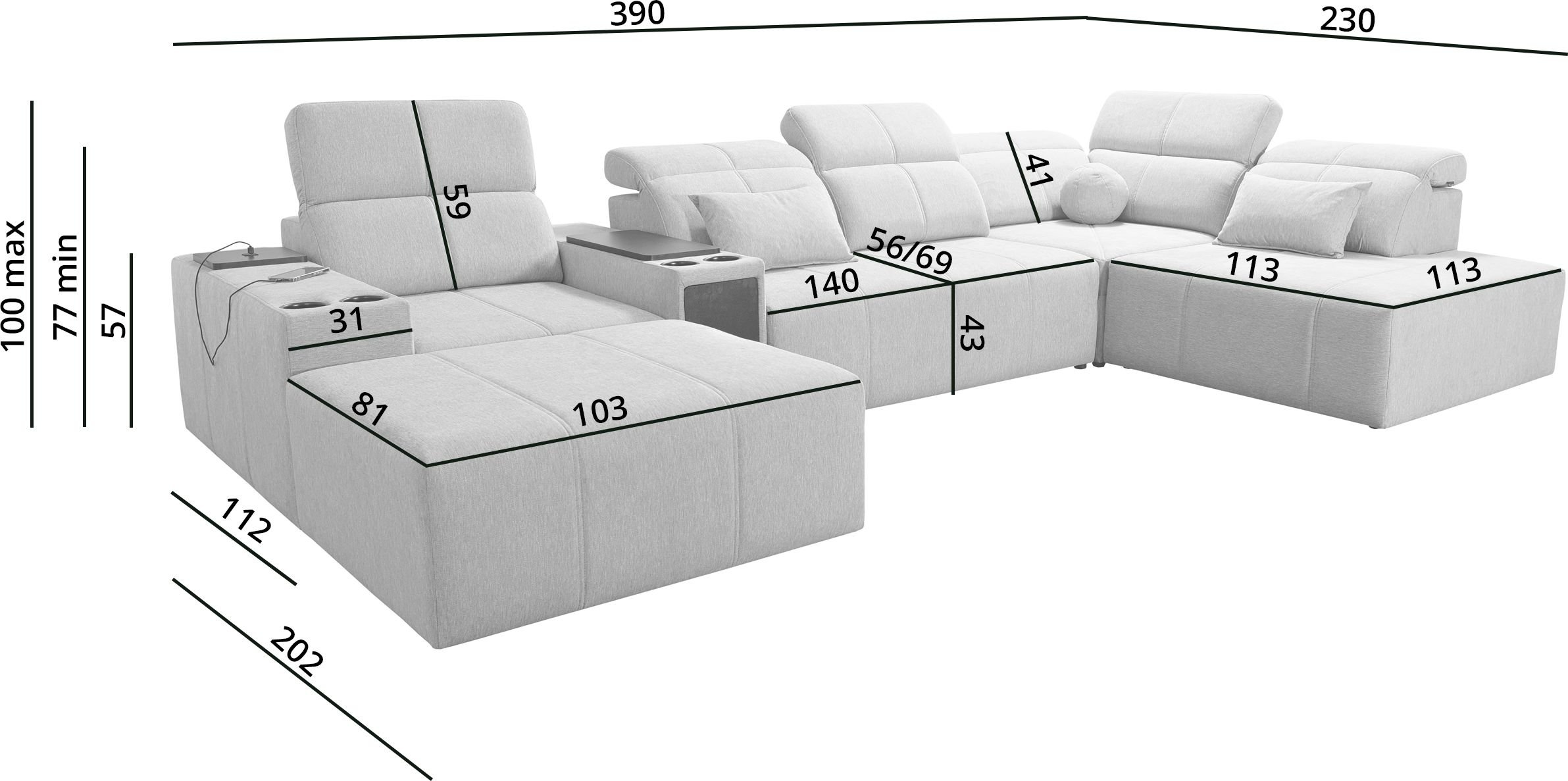 Kutna garnitura u obliku slova U Mindy V marke Brattex spaja moderan dizajn, promišljenu ergonomiju i praktična rješenja za svakodnevnu upotrebu. Izrađena je na drvenom okviru, kombiniranom s ivericom, što osigurava stabilnost i dug vijek trajanja. Model Mindy V proizveden je u Poljskoj, u tvornici Brattex, i dizajniran je tako da pruža maksimalnu udobnost pri sjedenju, opuštanju ili spavanju.