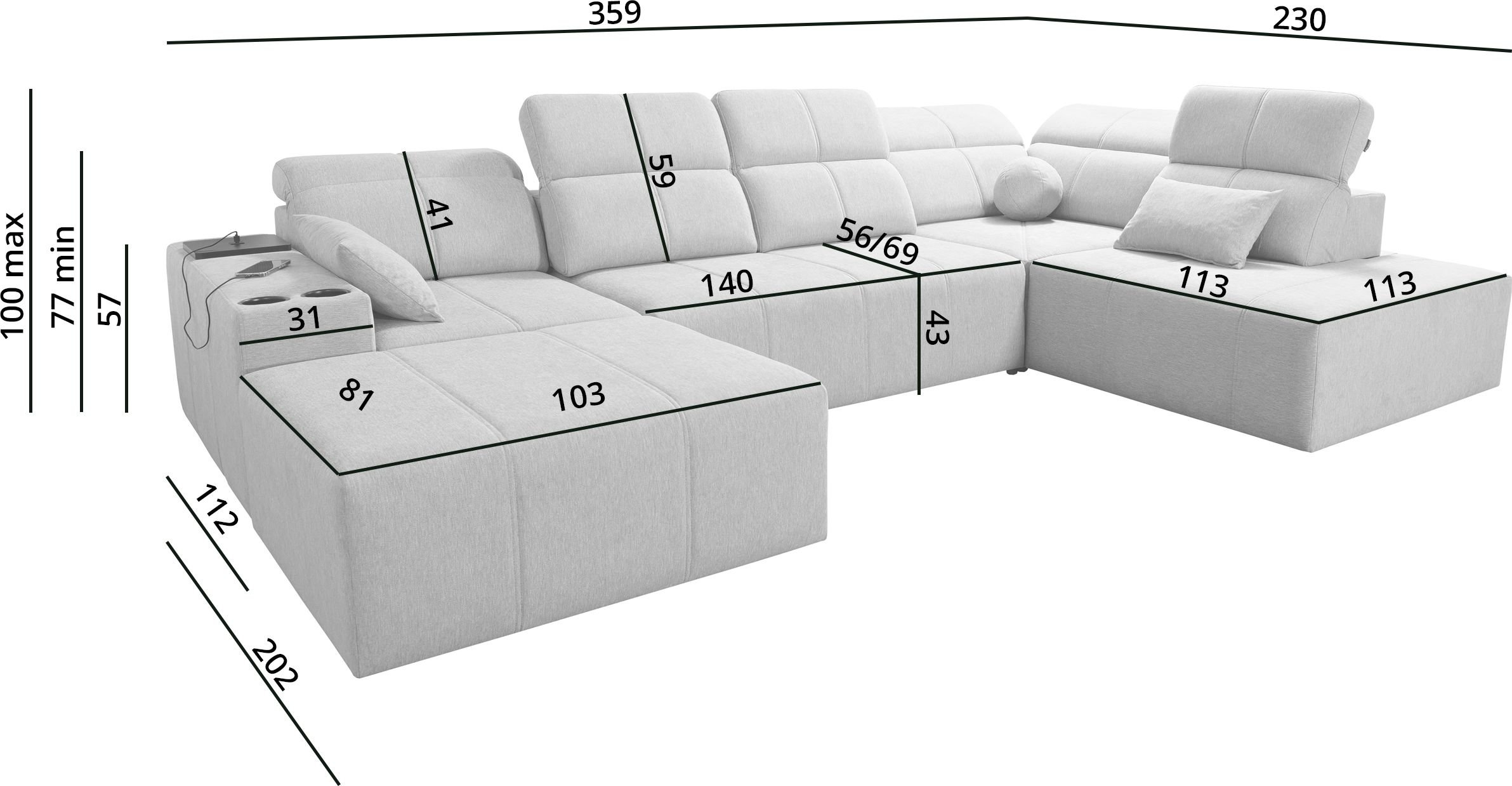 Model Mindy VI omogućuje prilagodbu prema vašim željama i prostoru. Možete odabrati boju tkanine, konfiguraciju elemenata te dodatne funkcije, čime se garnitura u potpunosti prilagođava vašem stilu i potrebama. Time dobivate jedinstven komad namještaja koji se savršeno uklapa u vaš dom.
