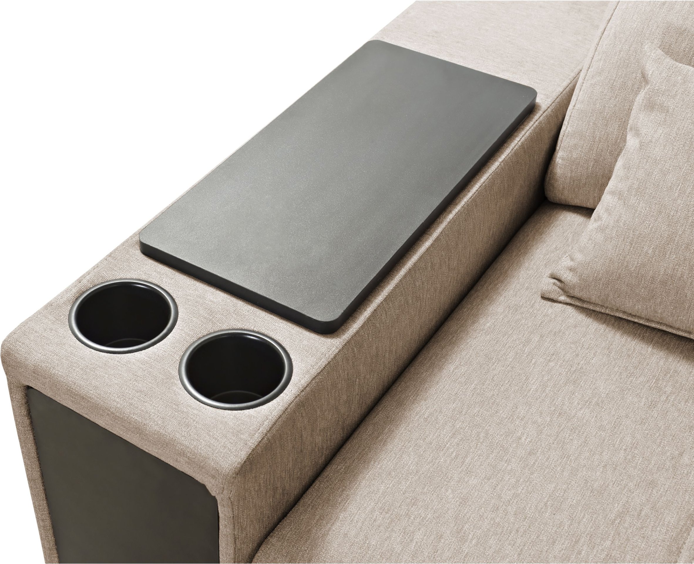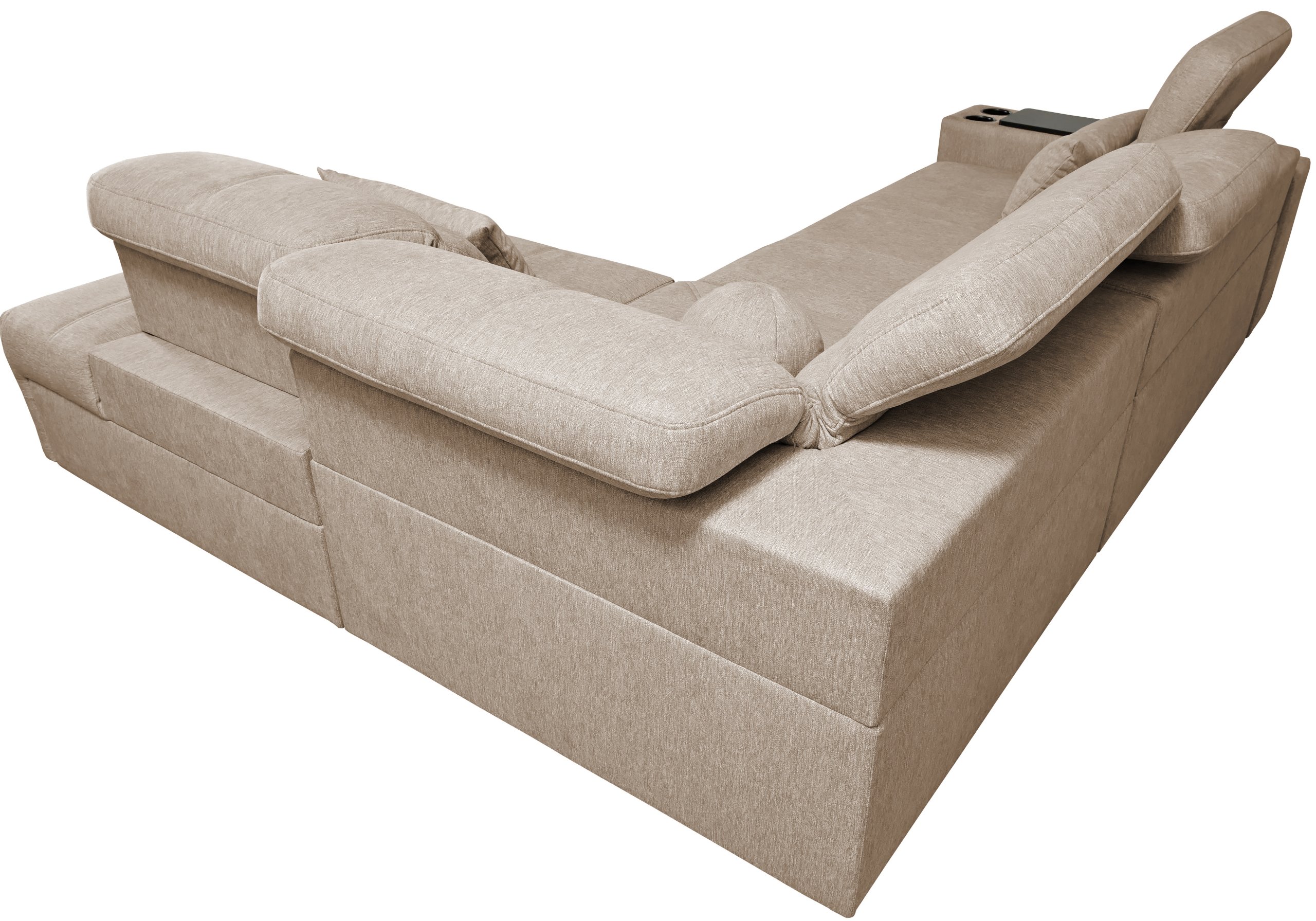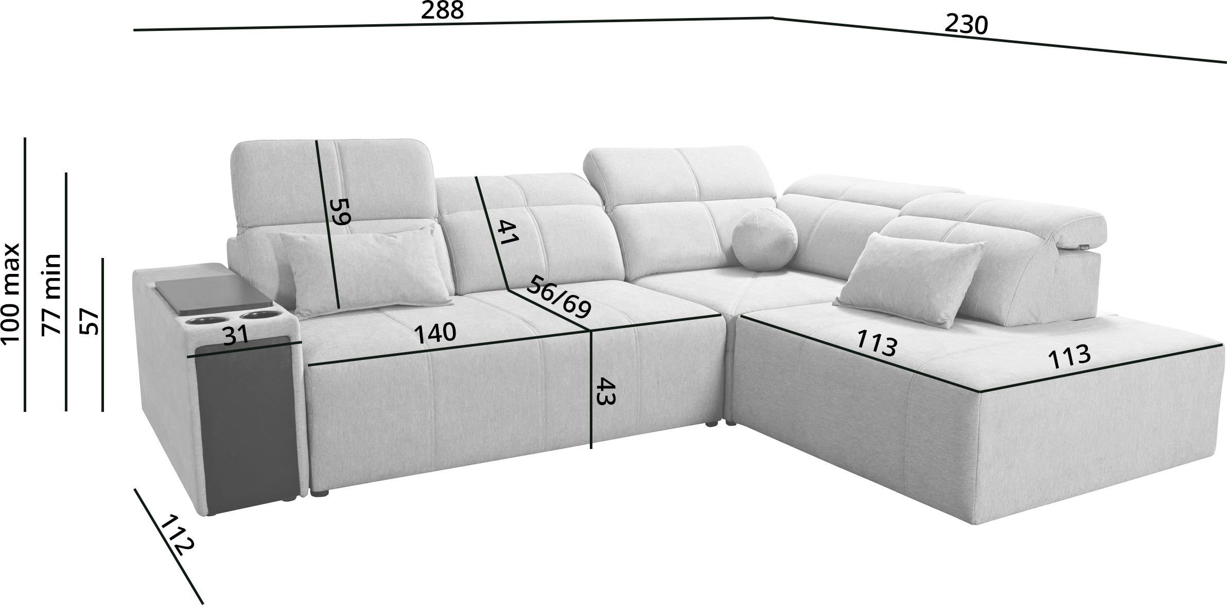 U garnituru je ugrađeno pet podesivih uzglavlja, koja dodatno poboljšavaju ergonomiju sjedenja i podupiru vrat i rameni dio. Visina sjedala iznosi 43 cm, što osigurava udoban položaj za ustajanje i sjedenje. Osim toga, garnitura ima dva otvarajuća bočna pretinca (bar kutije) te držalo za piće (cup holder), čime će vaš prostor za opuštanje biti potpun.
