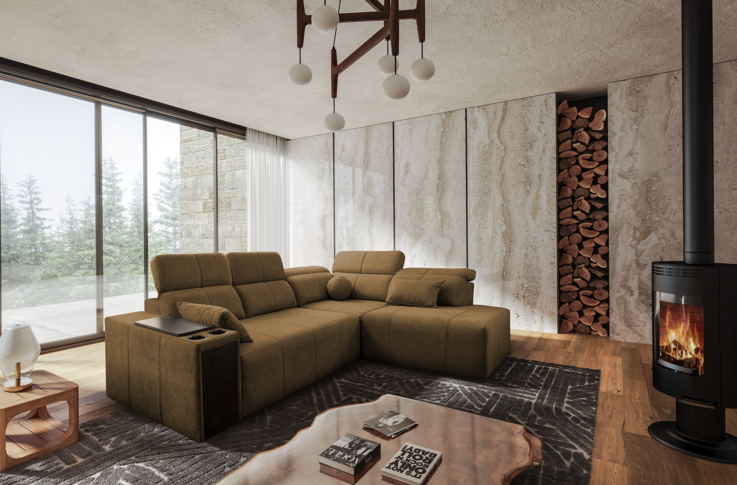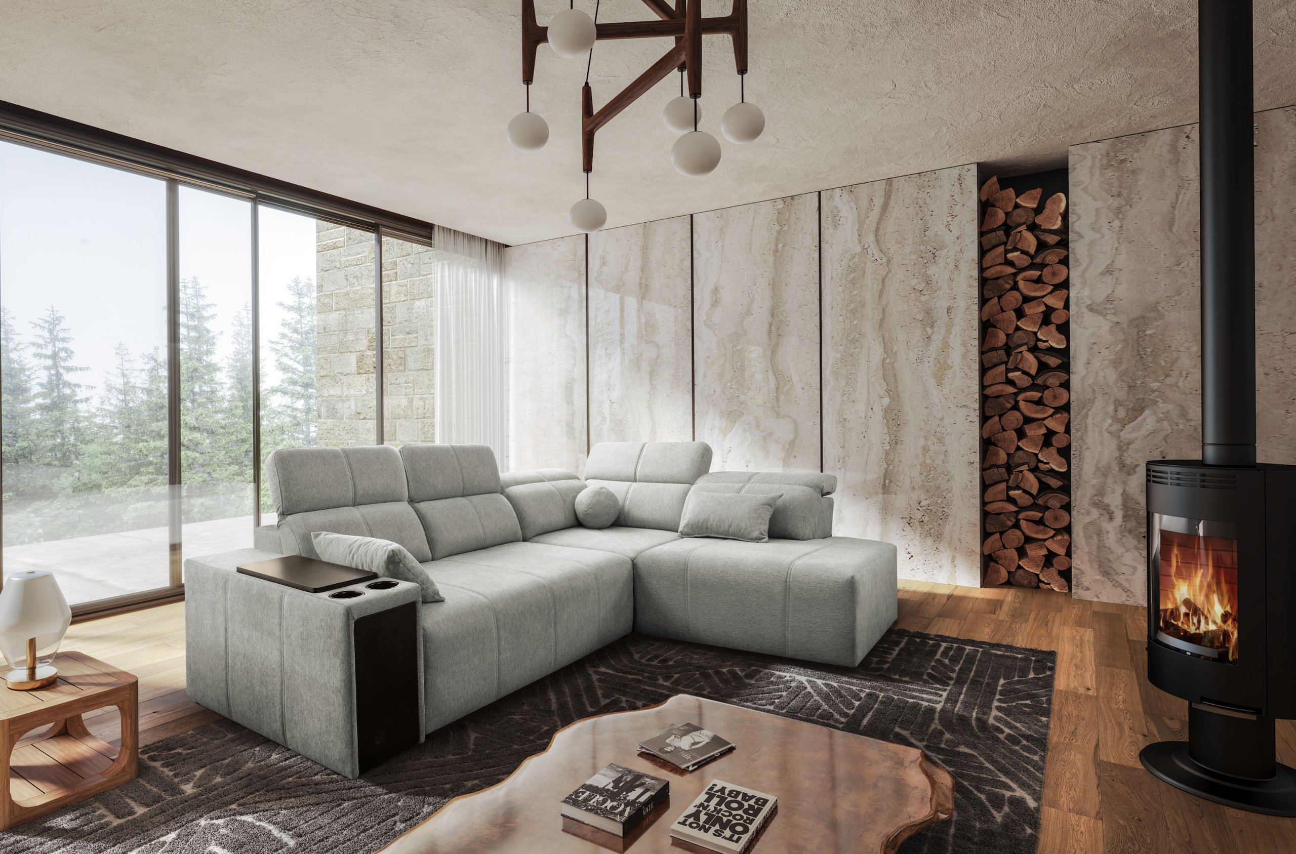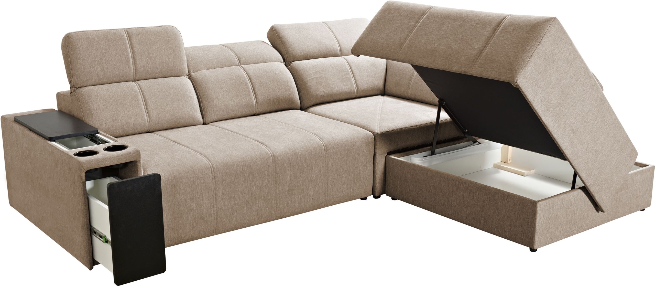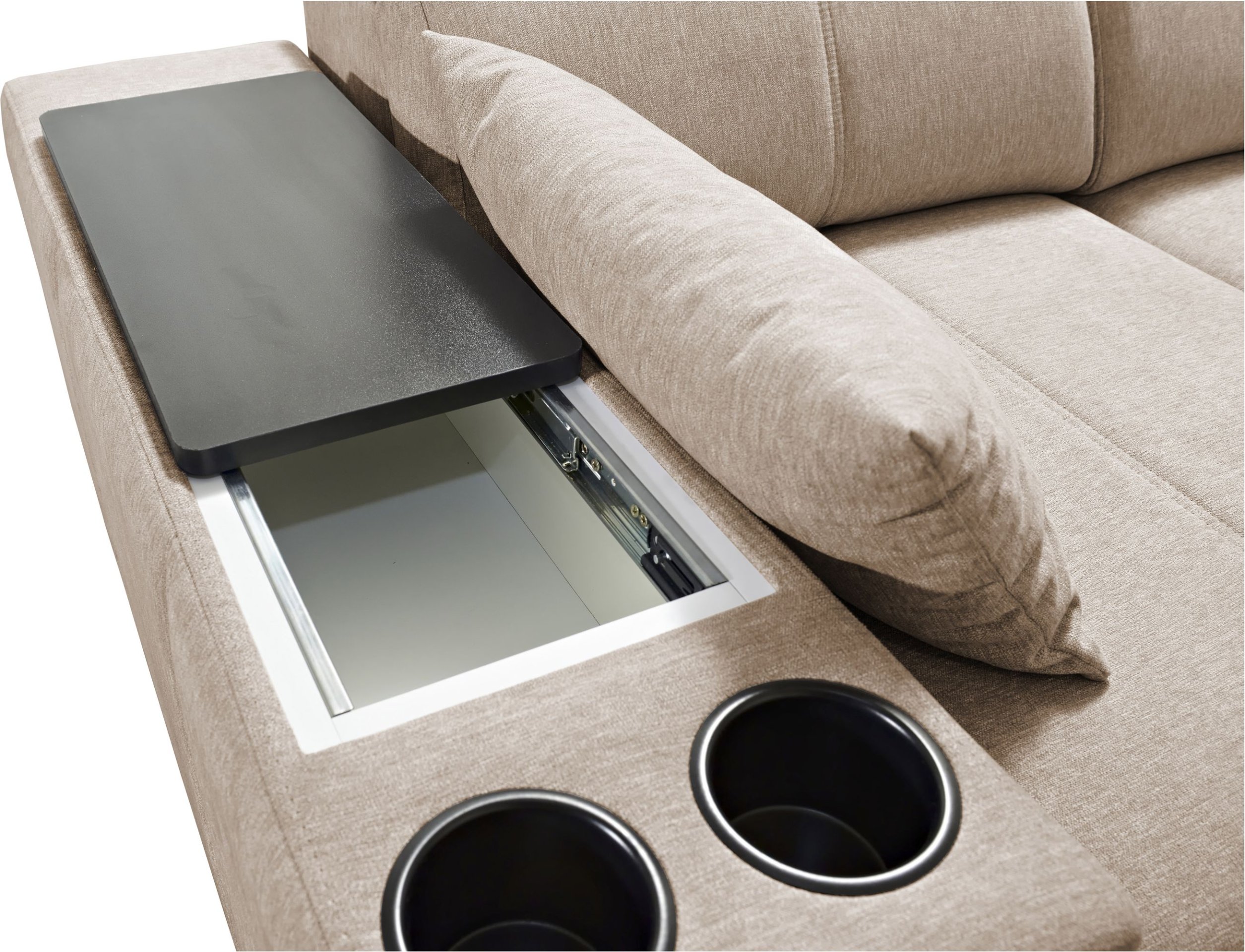U garnituru je ugrađeno pet podesivih uzglavlja, koja dodatno poboljšavaju ergonomiju sjedenja i podupiru vrat i rameni dio. Visina sjedala iznosi 43 cm, što osigurava udoban položaj za ustajanje i sjedenje. Osim toga, garnitura ima dva otvarajuća bočna pretinca (bar kutije) te držalo za piće (cup holder), čime će vaš prostor za opuštanje biti potpun.