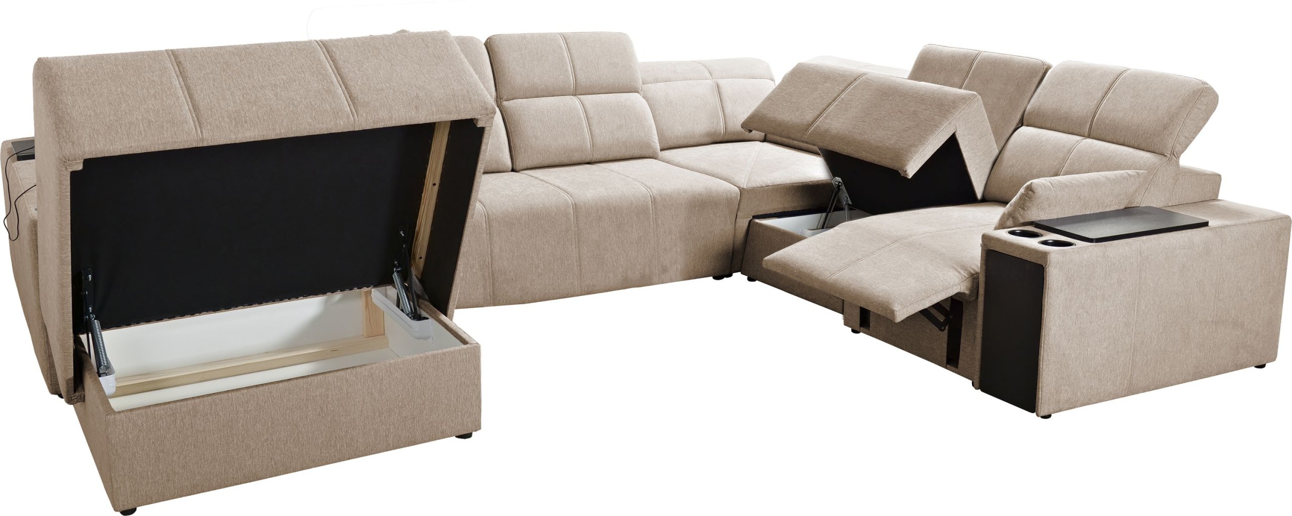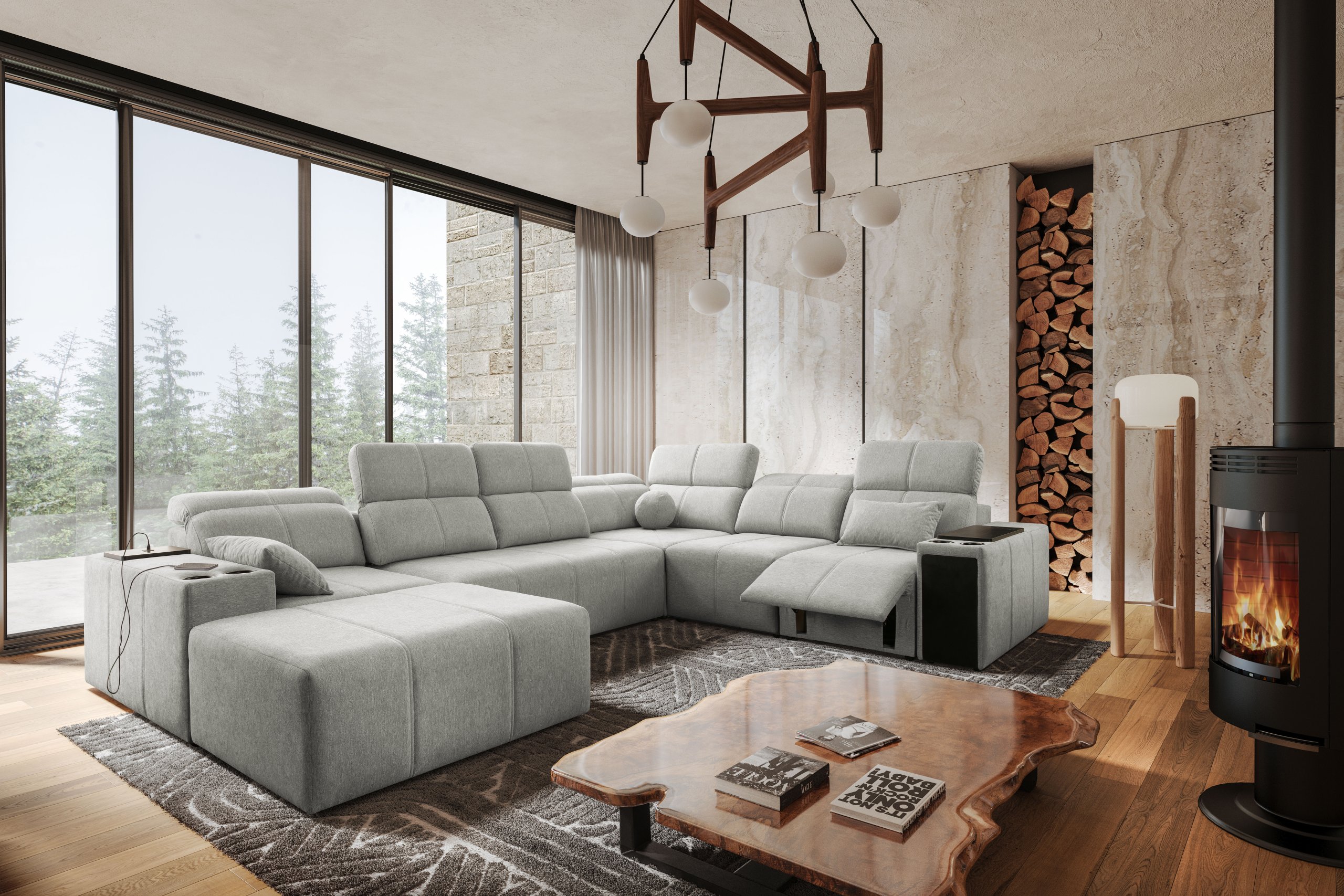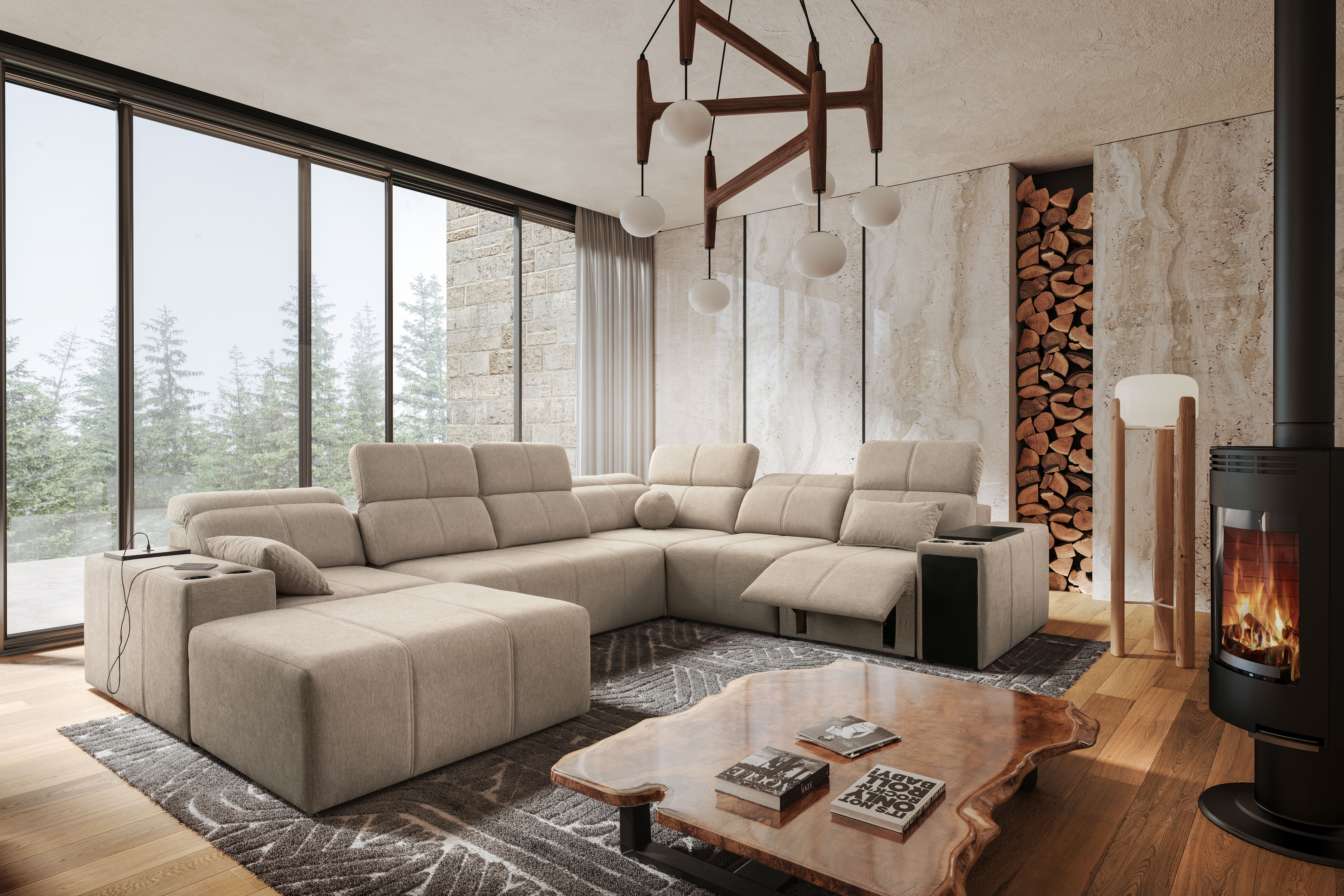 Mindy VIII Mix nije samo estetski dorađena, već i iznimno praktična. Ugrađena su dva prostrana spremnika za posteljinu, koji učinkovito rješavaju pitanje pohrane. Garnitura uključuje i dva otvarajuća bara, električno izvlačni podnožnik, USB priključak tipa A+C te držala za piće (cup holder). Svi ovi elementi omogućuju moderan način opuštanja i dodatnu udobnost pri svakodnevnoj upotrebi.
