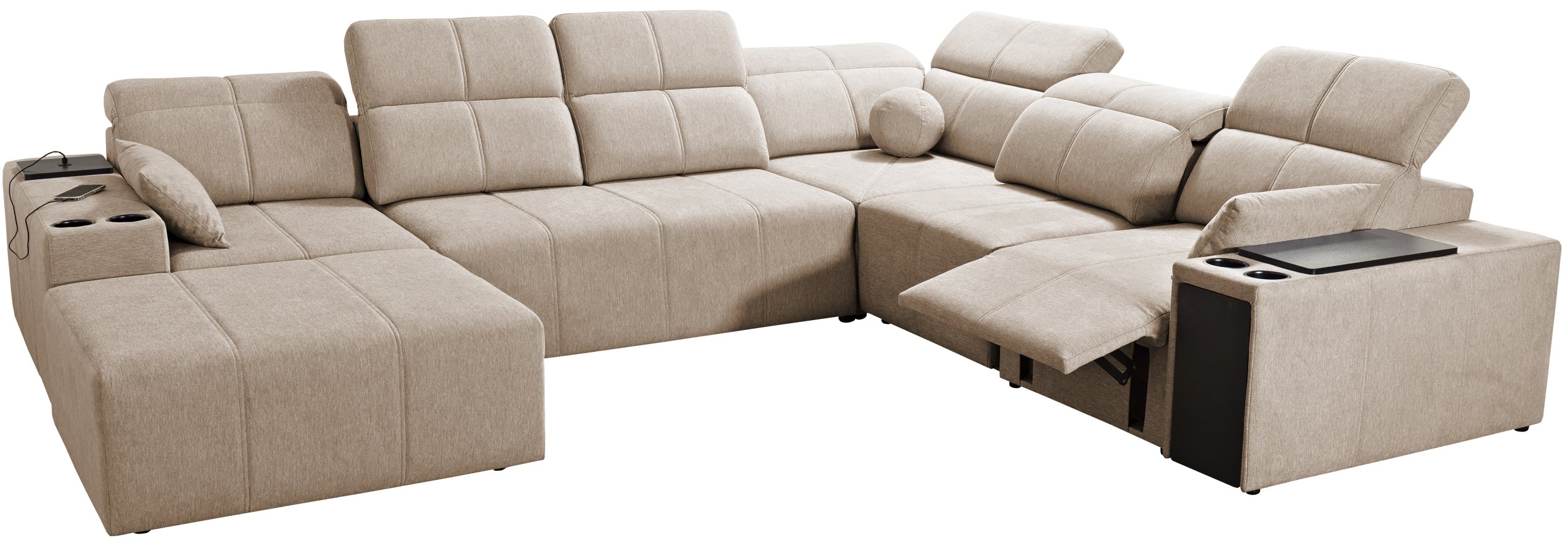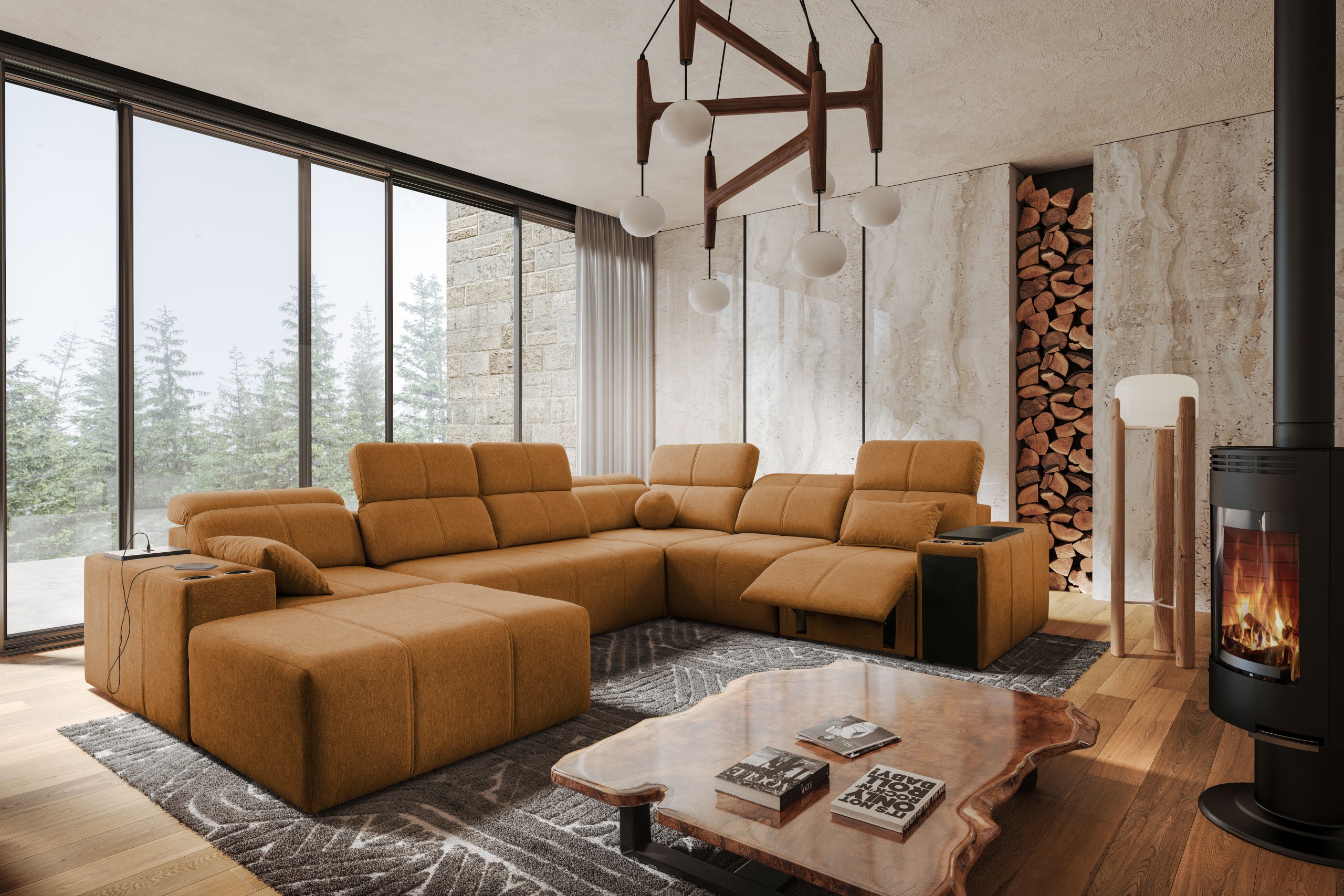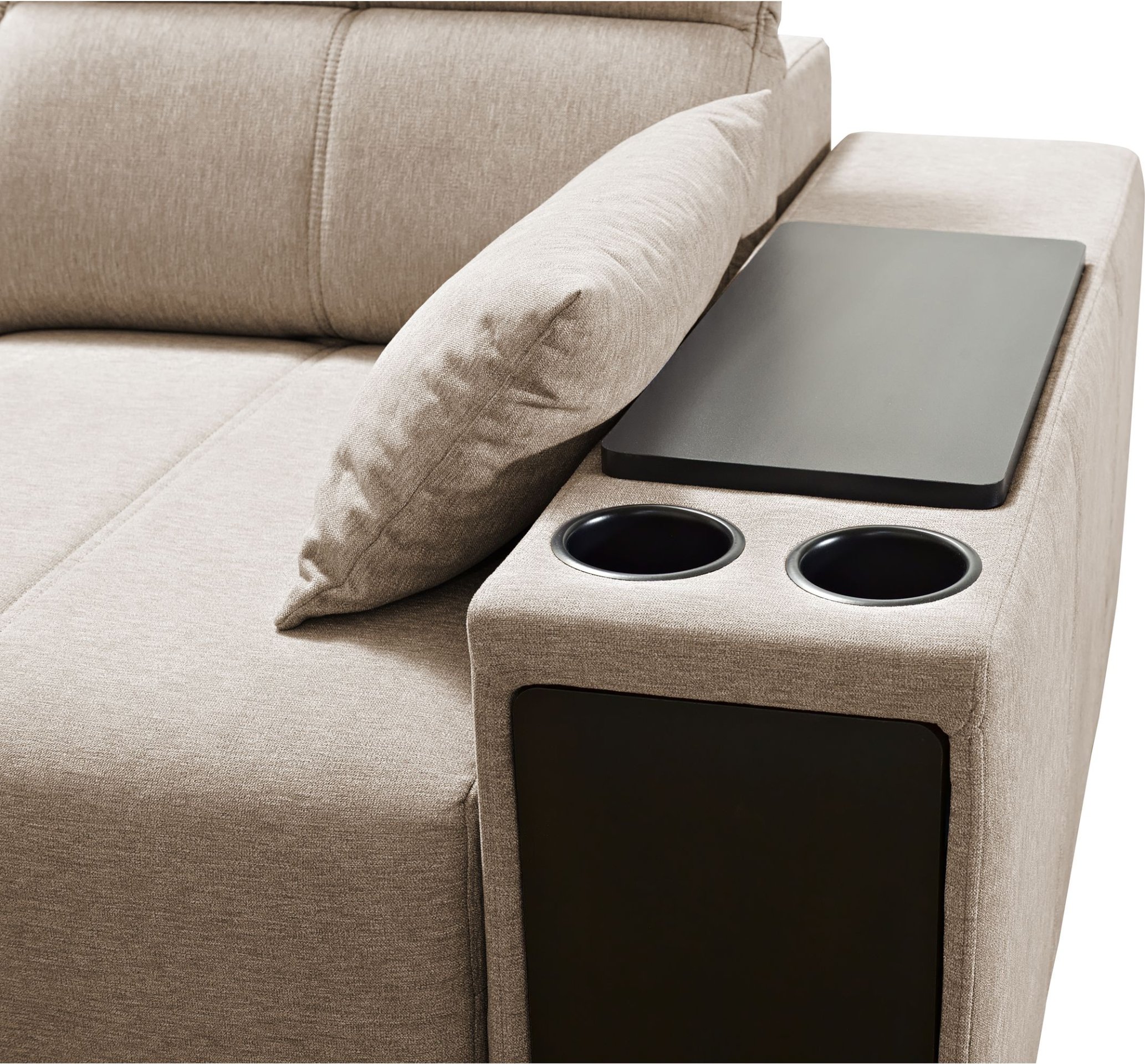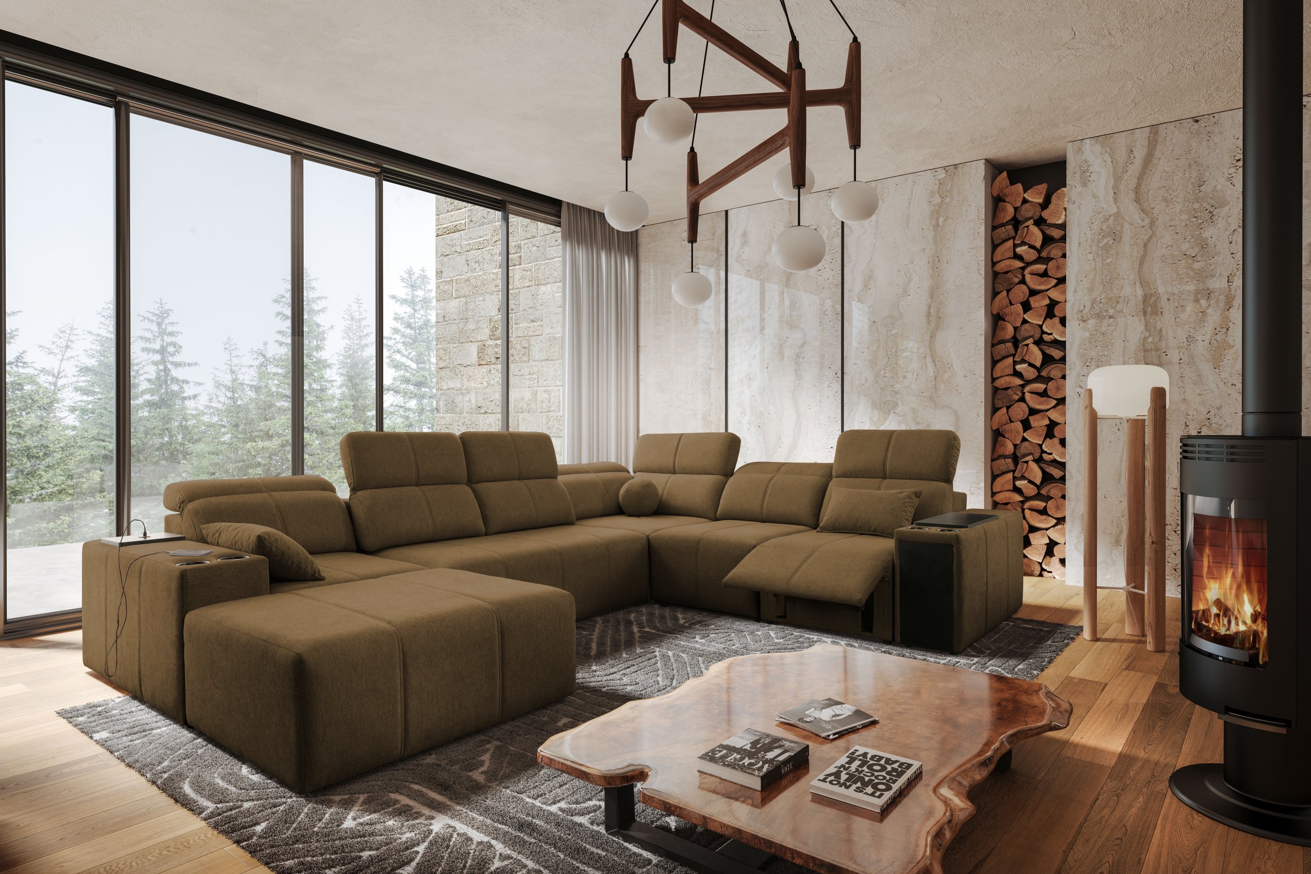 Mindy VIII Mix nije samo estetski dorađena, već i iznimno praktična. Ugrađena su dva prostrana spremnika za posteljinu, koji učinkovito rješavaju pitanje pohrane. Garnitura uključuje i dva otvarajuća bara, električno izvlačni podnožnik, USB priključak tipa A+C te držala za piće (cup holder). Svi ovi elementi omogućuju moderan način opuštanja i dodatnu udobnost pri svakodnevnoj upotrebi.