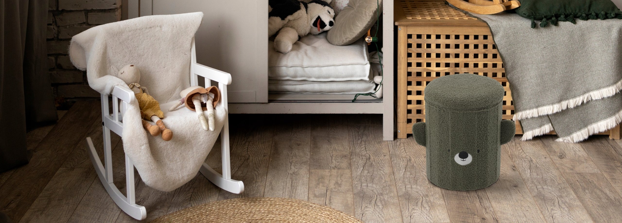 Model PHO4267 pripada dječjem stilu, pa je posebno prikladan za dječje sobe ili igraonice. Njegova mekana tekstura i ugodna boja stvaraju prijatno okruženje u kojem se djeca osjećaju udobno i sigurno. Istodobno, tabure je dovoljno neutralan da ga možete jednostavno uklopiti i u druge prostore. Možete ga koristiti kao dodatnu stolicu, oslonac za noge ili čak kao mali pomoćni stolić kada na njega stavite pladanj ili dekorativni element.