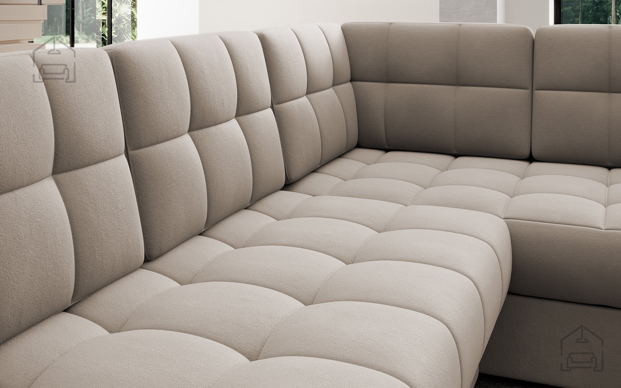 Kutna garnitura dizajnirana je s mišlju na dugotrajnu upotrebu i potpunu udobnost. U središtu konstrukcije korišteni su visokokvalitetni materijali, poput valovitih opruga tipa B i poliuretanske pjene T2540 te T2130, koji osiguravaju optimalnu potporu tijelu. To znači da se oblik sjedala i naslona ne deformira prebrzo, a pritom nudi ugodnu mekoću i elastičnost. Udobnost koju osjećate pri sjedenju ili ležanju stoga je na potpuno drugačijoj razini od klasičnih kauča.