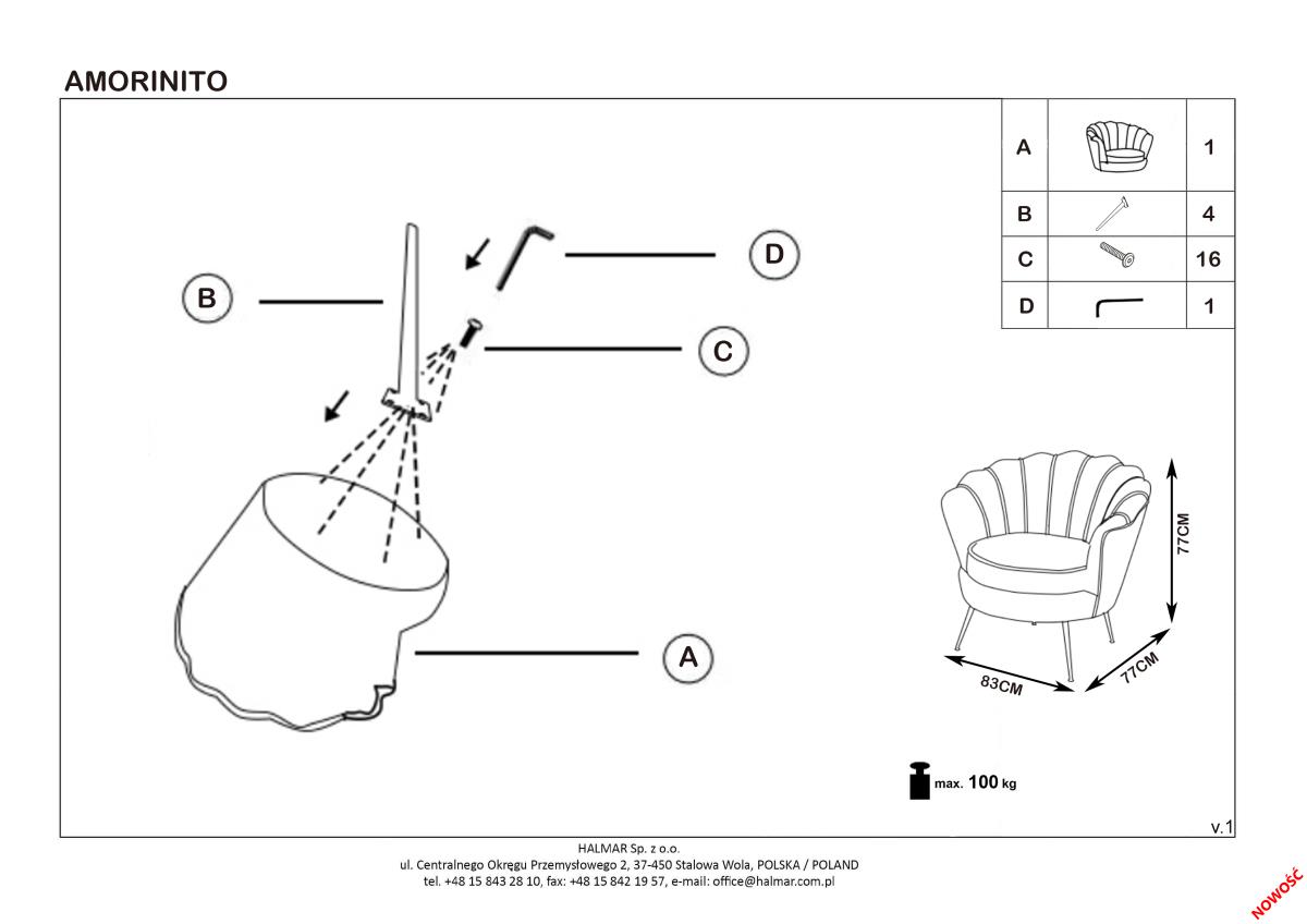 Fotelja Amorinito XL elegantnog izgleda je dostupna u tamnoplavoj boji, noge su izrađene od crnog čelika, a naslon i sjedište su tapecirani baršunastom tkaninom. Fotelja se odlikuje kvalitetnom izradom, te će svakako obogatiti izgled dnevnog boravka i pružiti ugodan odmor.