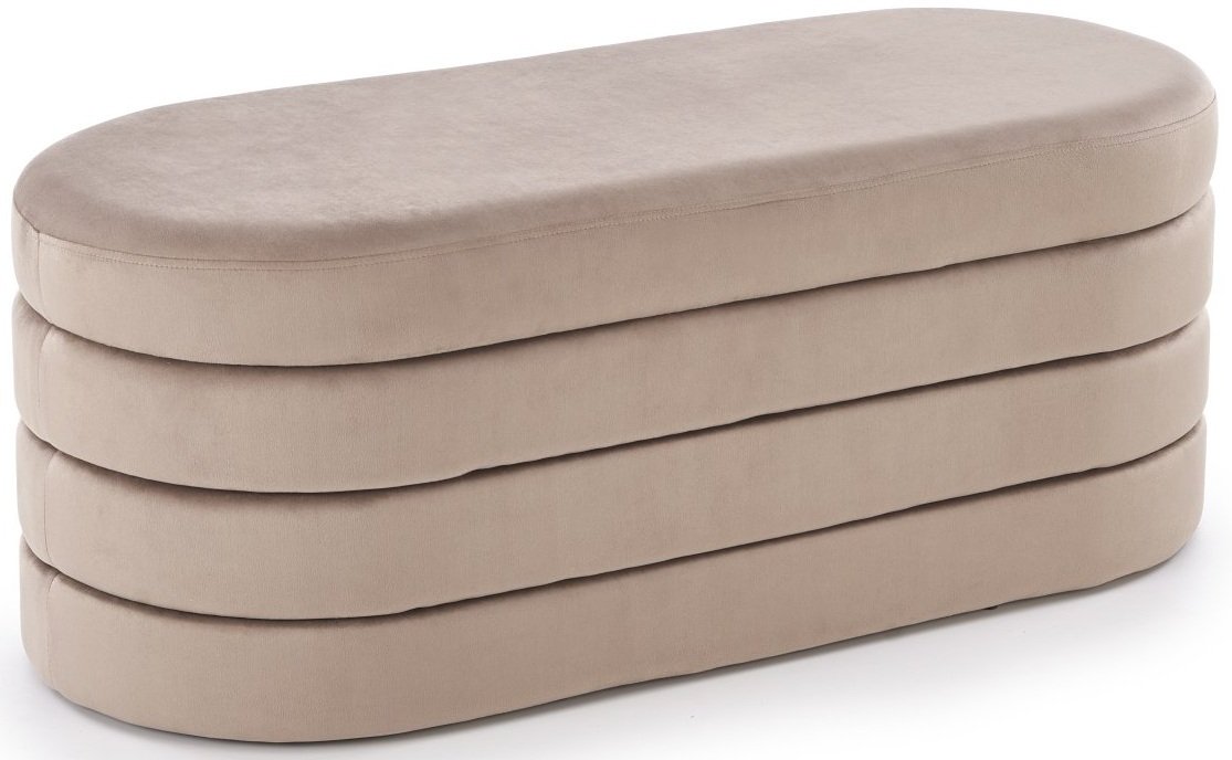 Njegova površina obložena je bež baršunastom tkaninom koja prostoru daje dozu luksuza i topline. Zahvaljujući neutralnoj nijansi i mekanom materijalu, lako se kombinira s raznim bojama i teksturama u prostoru. Ovaj komad nije samo estetski privlačan, već i izuzetno praktičan jer nudi funkciju pohrane koja vam pomaže održati urednost doma bez narušavanja stila.