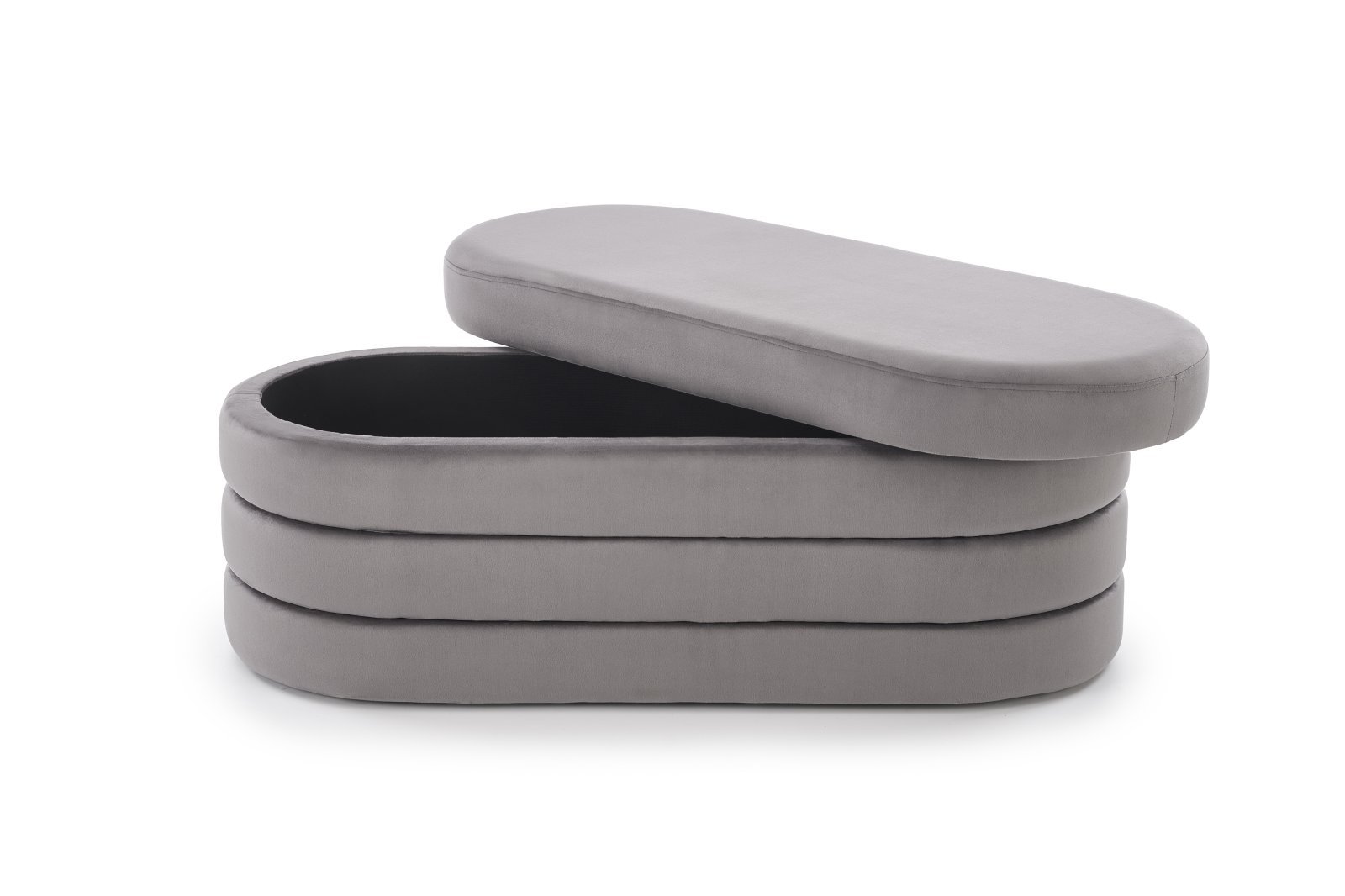 - Elegantni dizajn: obložena mekanom sivom baršunastom tkaninom, klupa odiše sofisticiranošću i bezvremenskom estetikom. Neutralna boja lako se uklapa u različite stilove uređenja – od klasičnog do suvremenog, čineći je idealnim dodatkom svakom prostoru.
