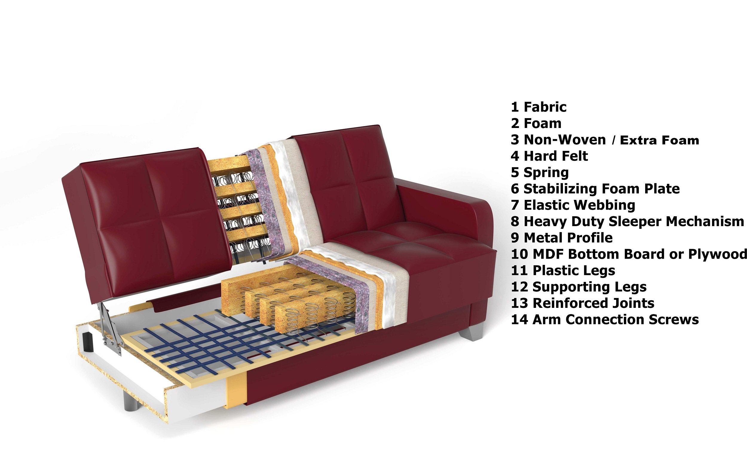 Materijali koji se koriste za izradu garnitura su različite vrste poliuretanske pjene, sintepona, viscolateksa itd. Radi se o proizvodima s visokim koeficijentom kompresije i elastičnosti, stoga proizvođač zadržava pravo na negativnu i pozitivnu toleranciju od +/- 2% za širinu i dužinu.