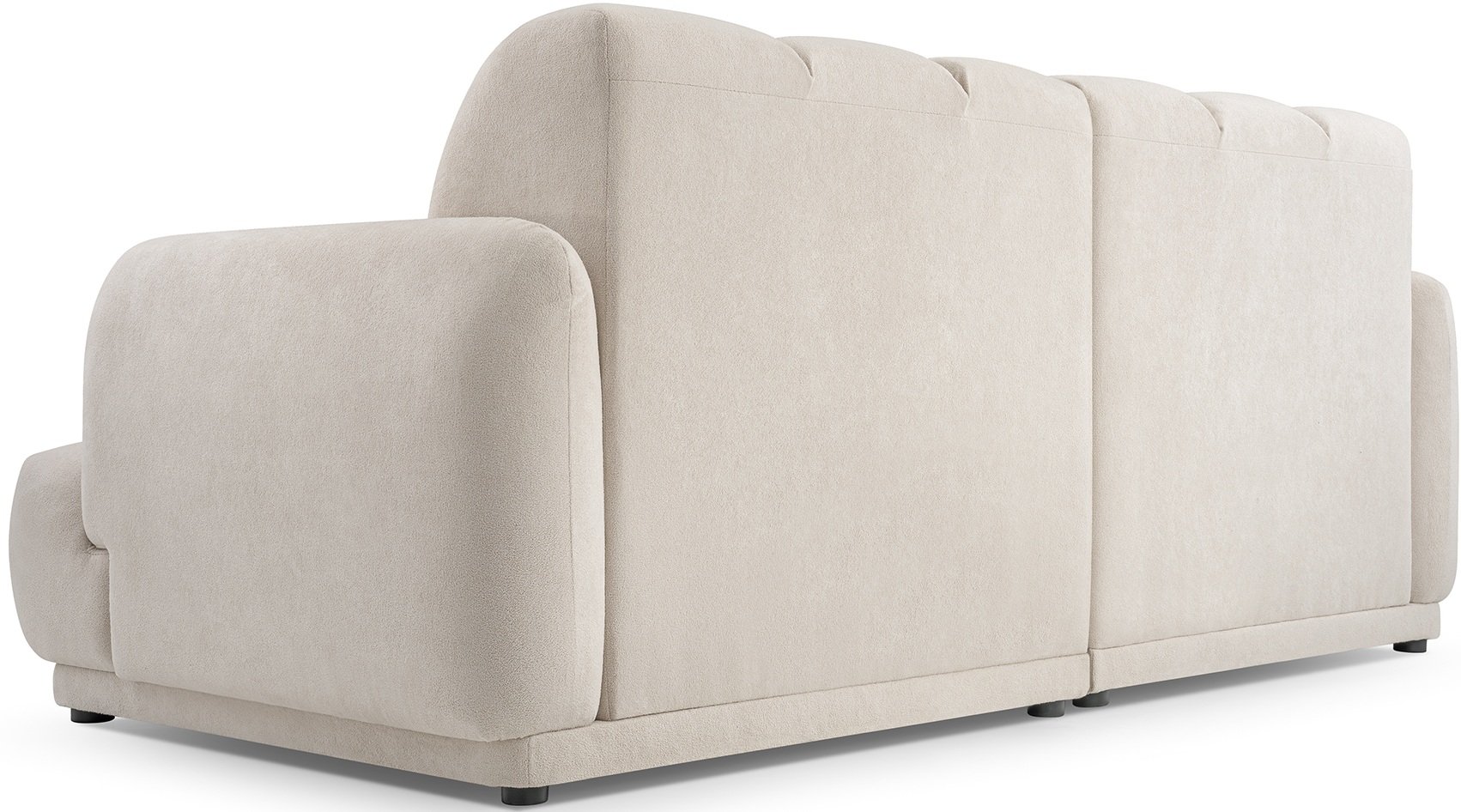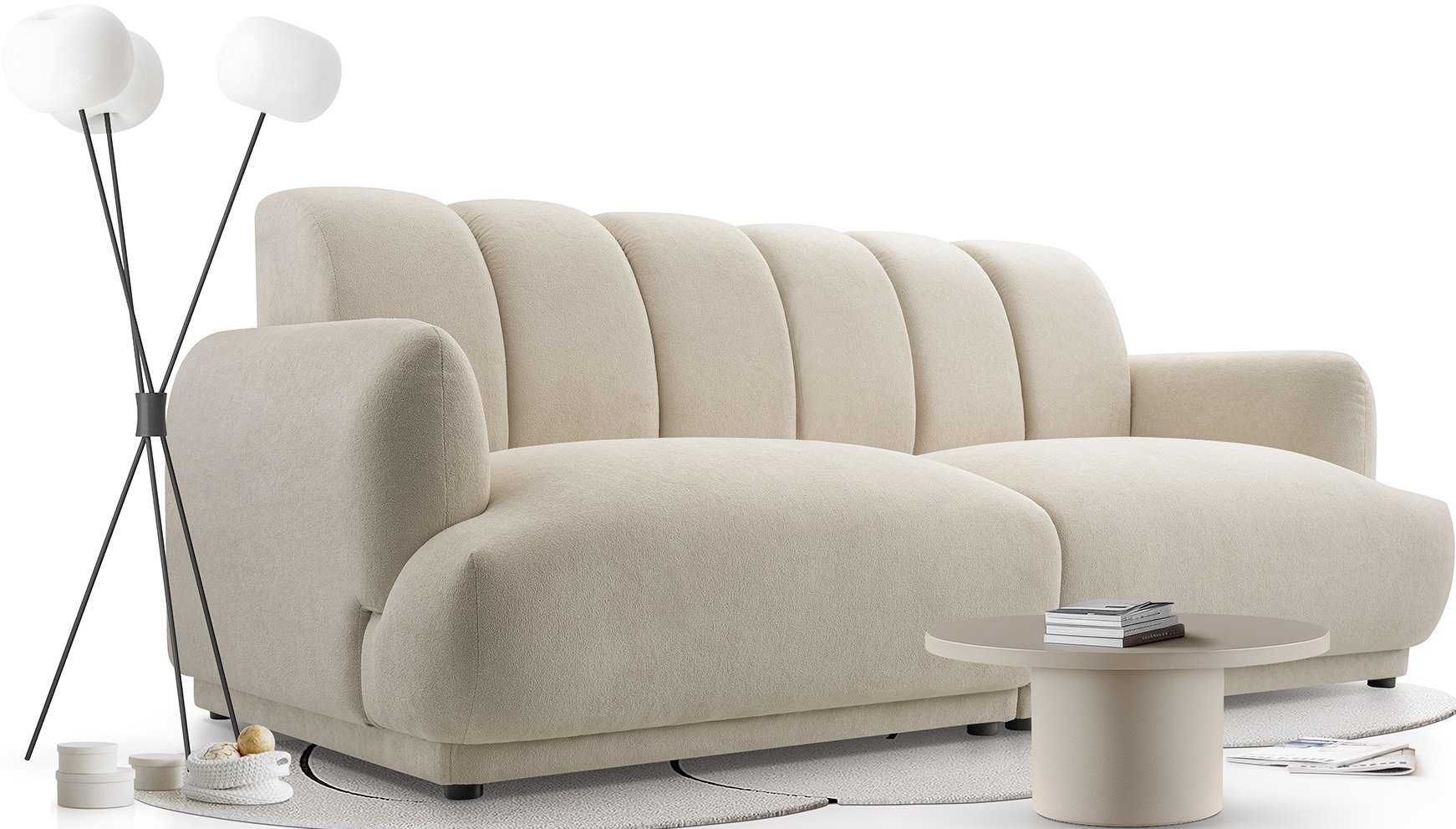 Posebna prednost ovog komada namještaja je njegova svestranost. Dostupan je u različitim kombinacijama boja, pa se može prilagoditi različitim stilovima uređenja interijera. Crne plastične noge već su pričvršćene i ne zahtijevaju dodatnu montažu, što znači da je trosjed spreman za upotrebu odmah nakon što ga donesete kući. Minimalistički, a ujedno profinjen izgled omogućuje da se lijepo uklopi i u manje dnevne boravke, ali i u veće prostore, gdje može postati središte društvenih događanja.