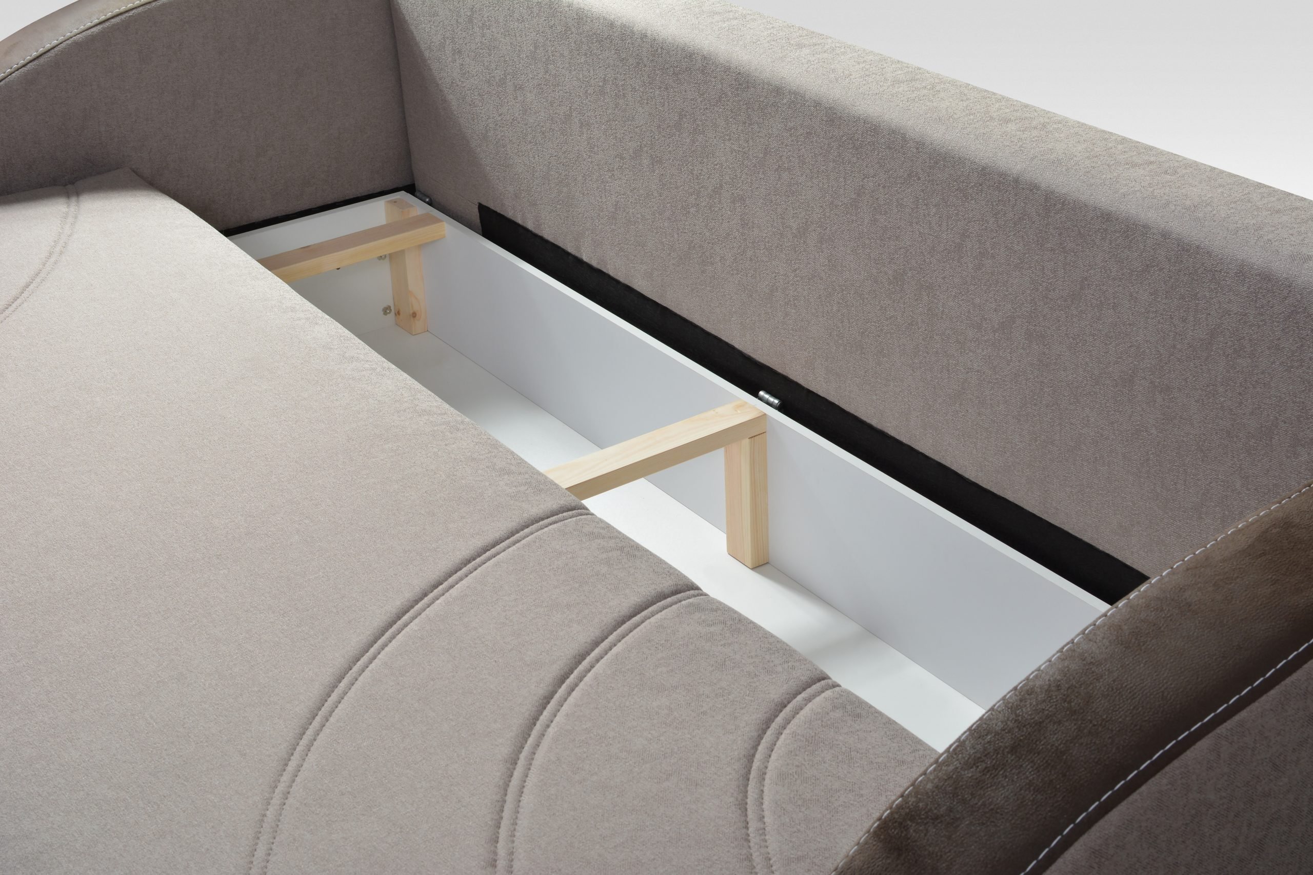 Ladica za posteljinu: Trosjed je opremljen praktičnom ladicom za posteljinu. Ovaj prostor je idealan za odlaganje deka, jastuka i drugih potrepština za krevet, kako bi uvijek bili pri ruci kada ih zatrebate.