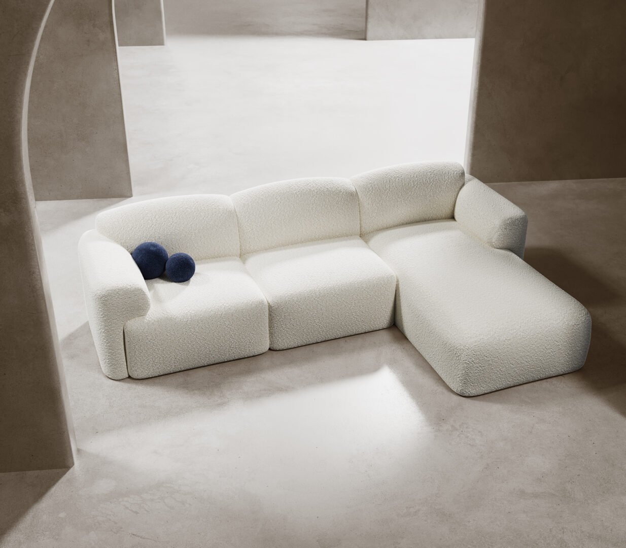 Kutna garnitura Blueberry se ističe nježnim oblicima koji osiguravaju mir i harmoniju u interijeru. Zaobljen dizajn garniture unosi vizualnu mekoću u prostor i jedan je od posljednjih trendova u uređenju intrijera. Unutrašnjost garniture temelji na visokokvalitetnim komponentama poput valovitih opruga i pjene visoke gustoće koja osigurava izdržljivost i iznimnu udobnost. Jedinstveni detalj kutne sjedeće garniture Blueberry su plavi, okrugli jastučići inspirirani borovnicama, koji dodatno obogaćuju izgled garniture. Ovaj model omogućuje prilagodbu individualnim potrebama i željama korisnika, dopušta proizvoljno kombiniranje i raspoređivanje modula, te omogućuje stvaranje idealnog prostora za odmor.