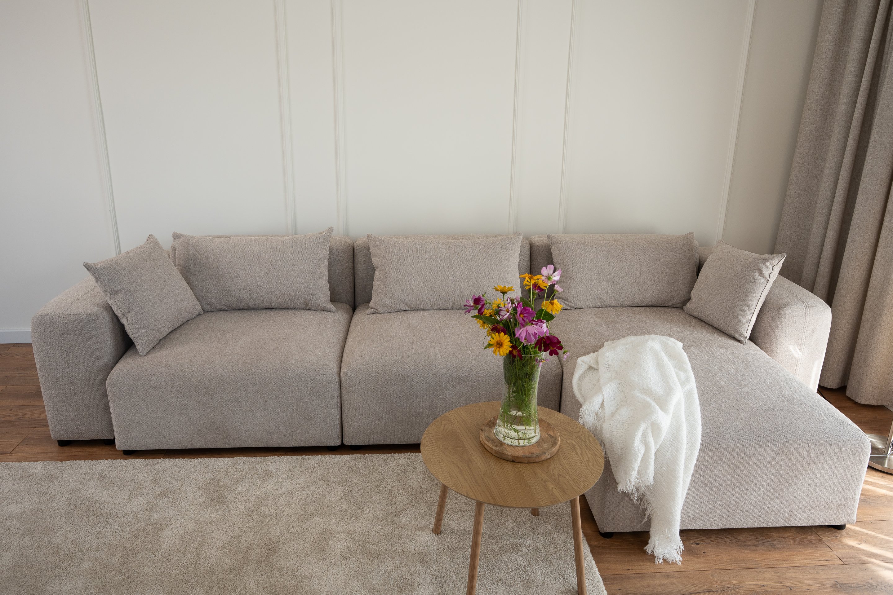 Kutna sjedeća garnitura Modularna s jastucima – PKMebel spaja estetiku, kvalitetu i udobnost u jednom proizvodu. Njezin moderan oblik, promišljena konstrukcija i mekana tkanina stvaraju ugodan prostor za odmor, druženje ili čitanje. Odaberite verziju koja se najbolje uklapa u vaš dom i uživajte u udobnosti koju donosi kvalitetna europska izrada.