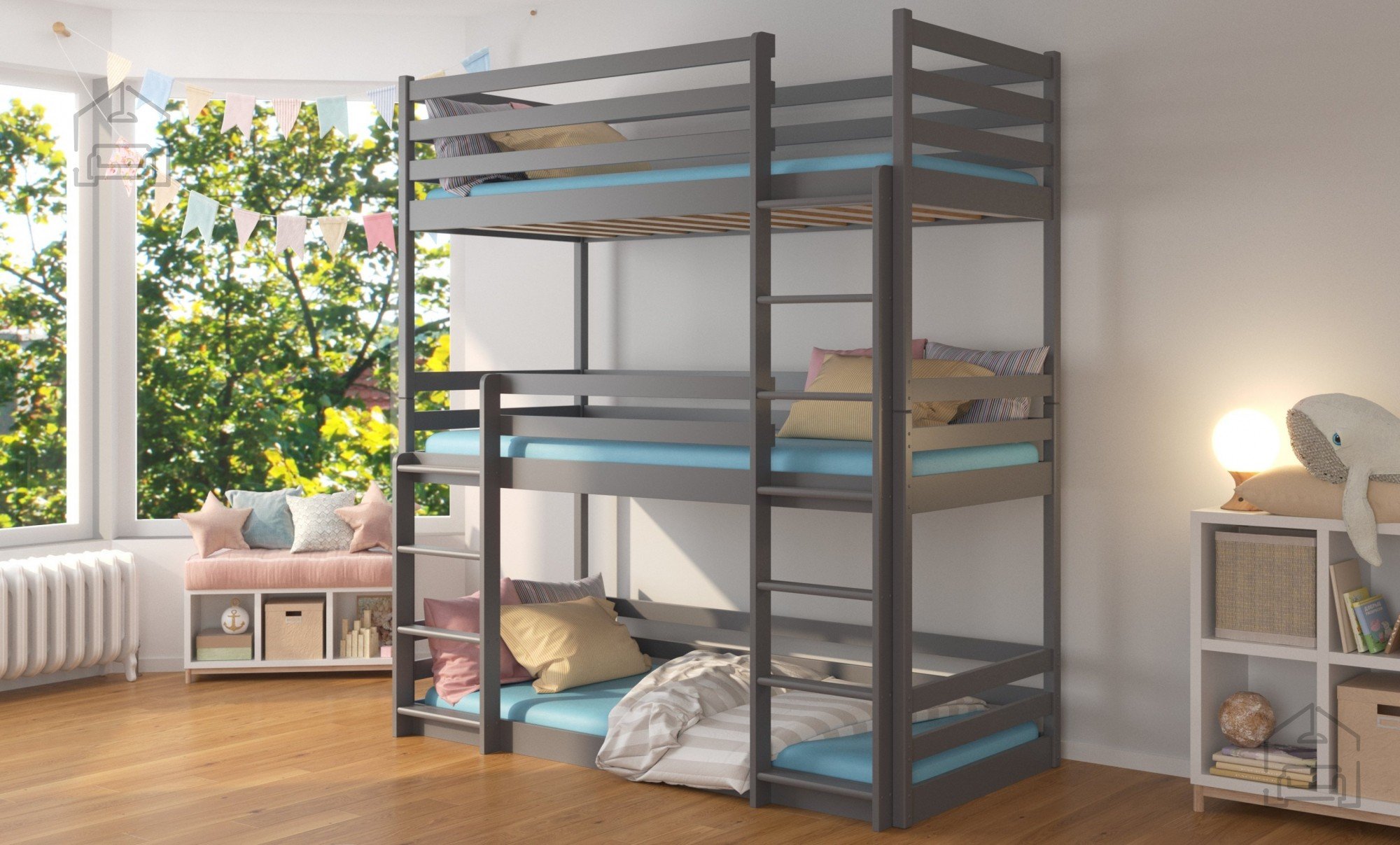 Krevet na kat s tri ležaja