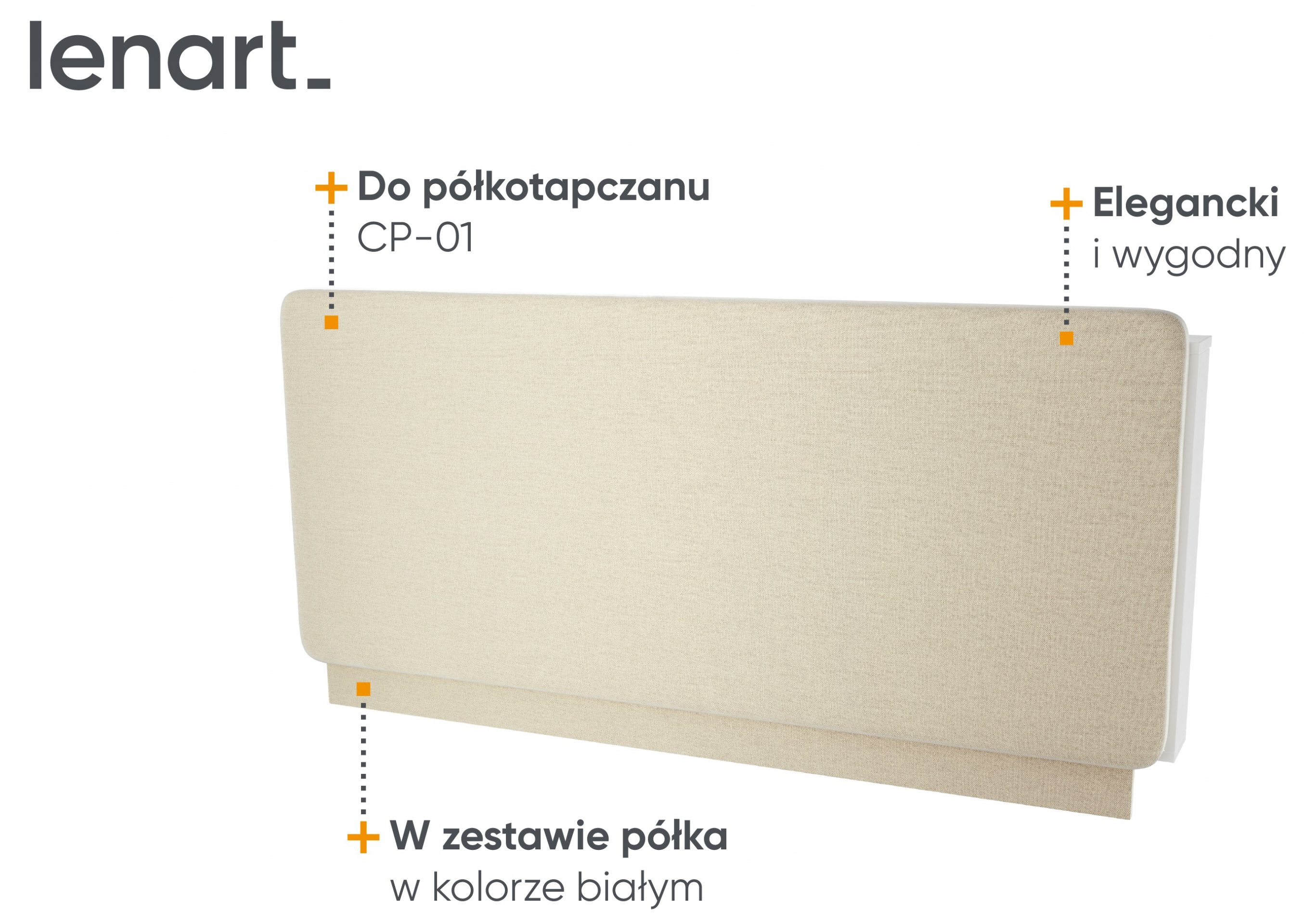 Udobno uzglavlje CP-12 je kompatibilno s krevetom u ormaru CP-01 za madrac širine 140 cm. Uzglavlje dolazi u kompletu s bijelom ili sivom policom.