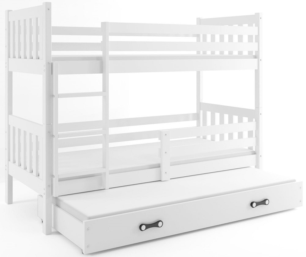 Krevet na kat Max-3 s dodatnim ležajem - 120x200 cm - bijela/bijela