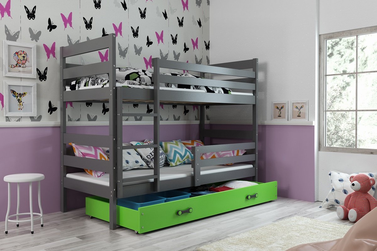 Krevet na kat Eryk - 80x160 cm - graphite/zelena 17458