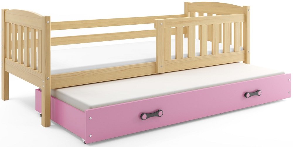 Dječji krevet Kubus s dodatnim ležajem - 80x190 cm - borovina/roza 17570
