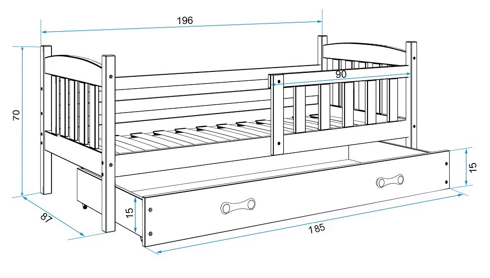 Dječji krevet Kubus s dodatnim ležajem - 80x190 cm - bijela/graphite 17583
