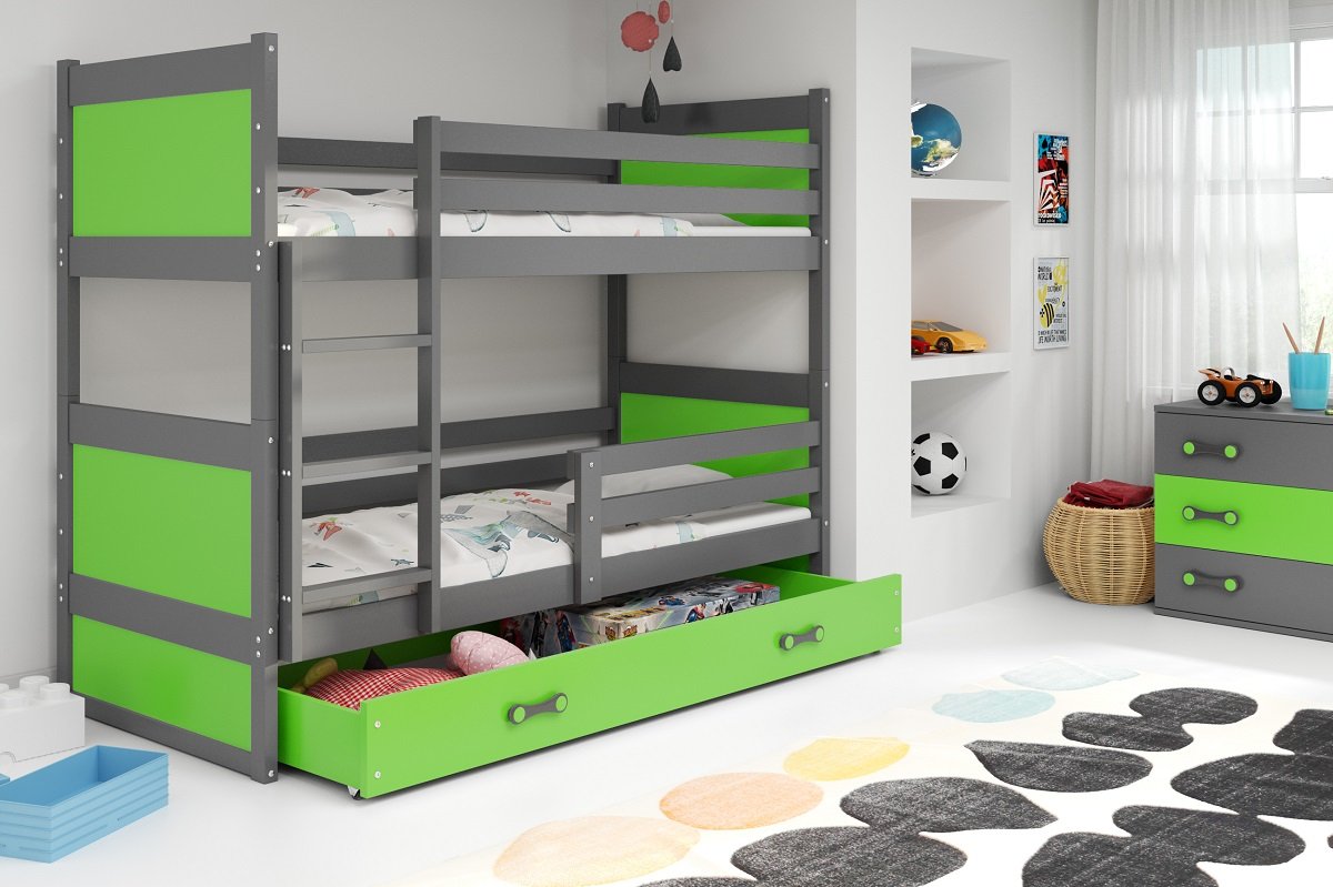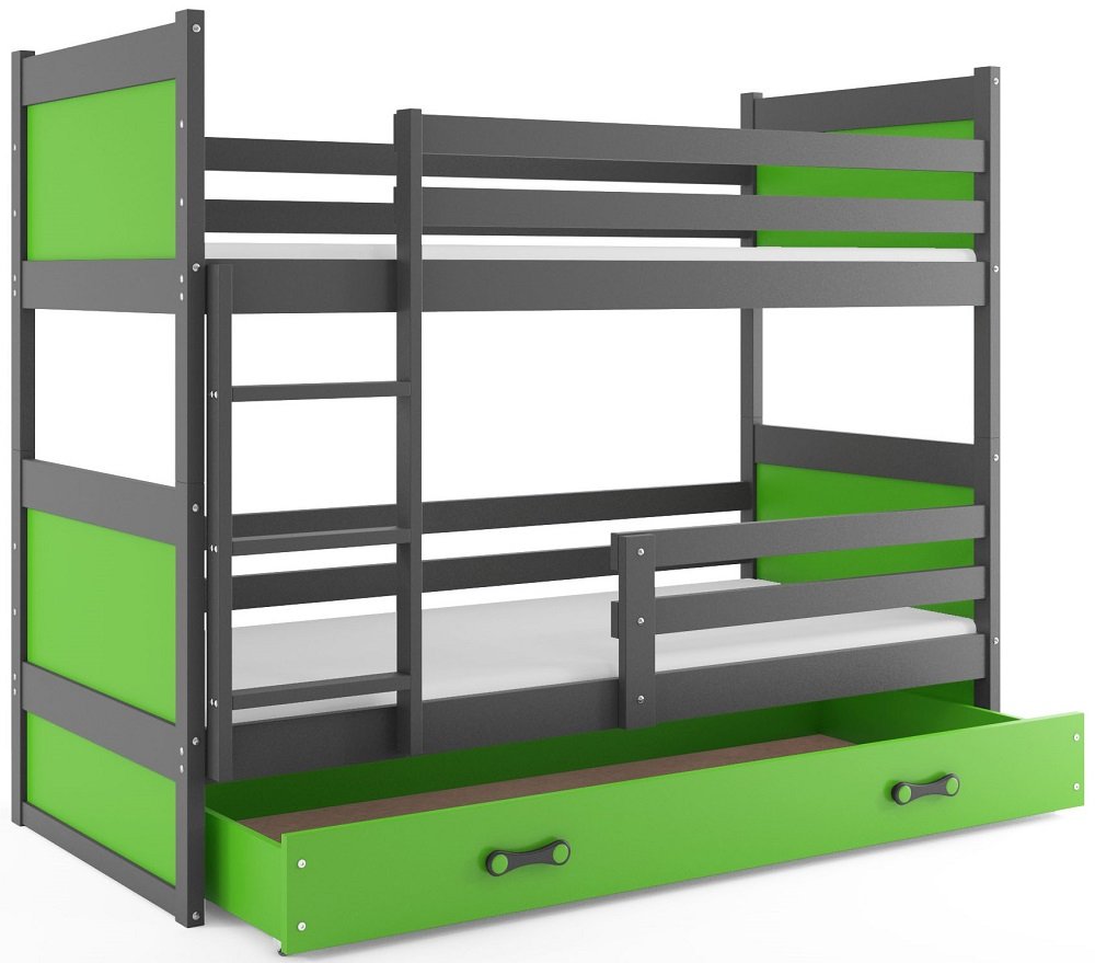 Krevet na kat Rico - 80x160 cm - graphite/zelena 17676