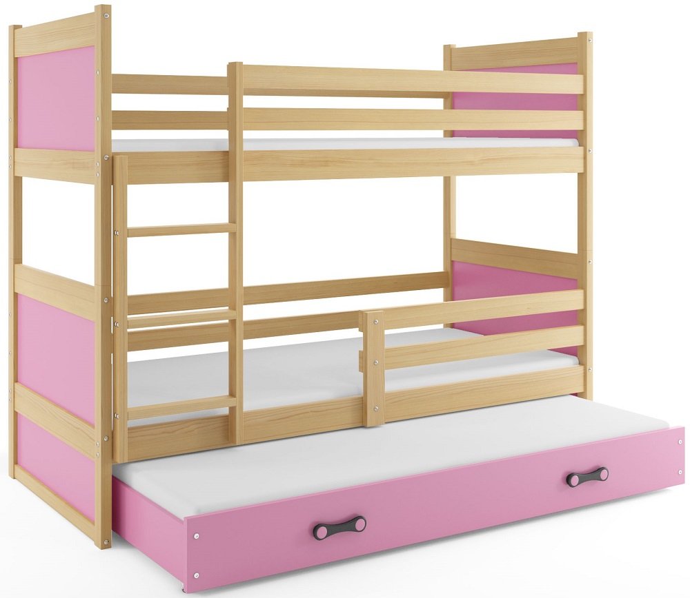 Krevet na kat Rico s dodatnim ležajem - 80x190 cm - borovina/roza 17706