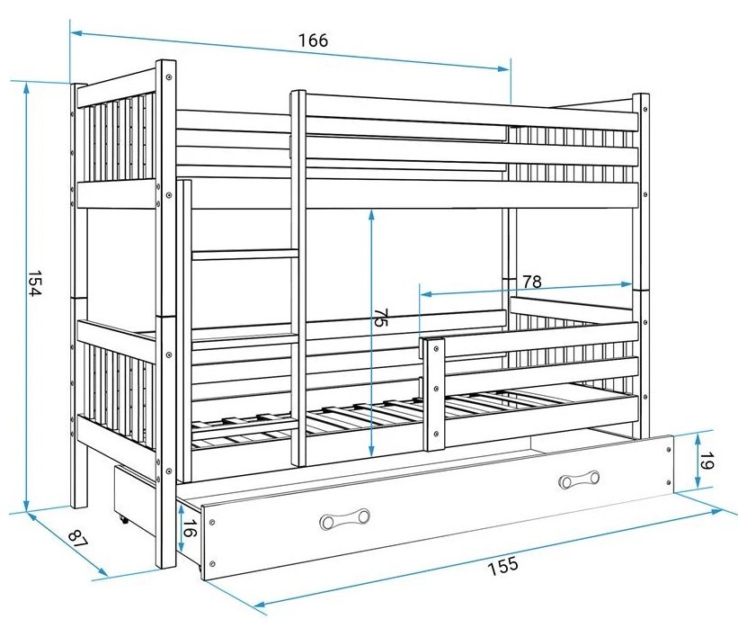 Krevet na kat Carino je jedan od kvalitetnijih modela kreveta poljskog proizvođača BMS Group koji će vam osigurati bezbrižnu kupovinu jer dolazi u ponudi s podnicom i madracima od pjene. Glavna prednost ovog modela je mogućnost rastavljanja kreveta na kat u odvojene, zasebne krevete kada za to dođe vrijeme i vaša djeca narastu. Krevet na kat nudi dodatan ležaj i odličan je odabir za bivanje dvoje djece u istom prostoru.