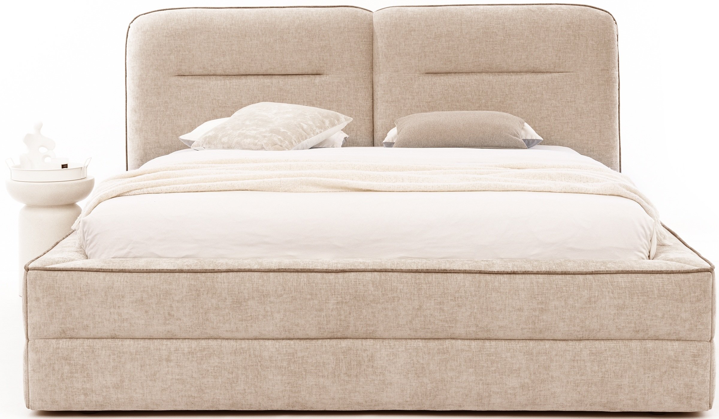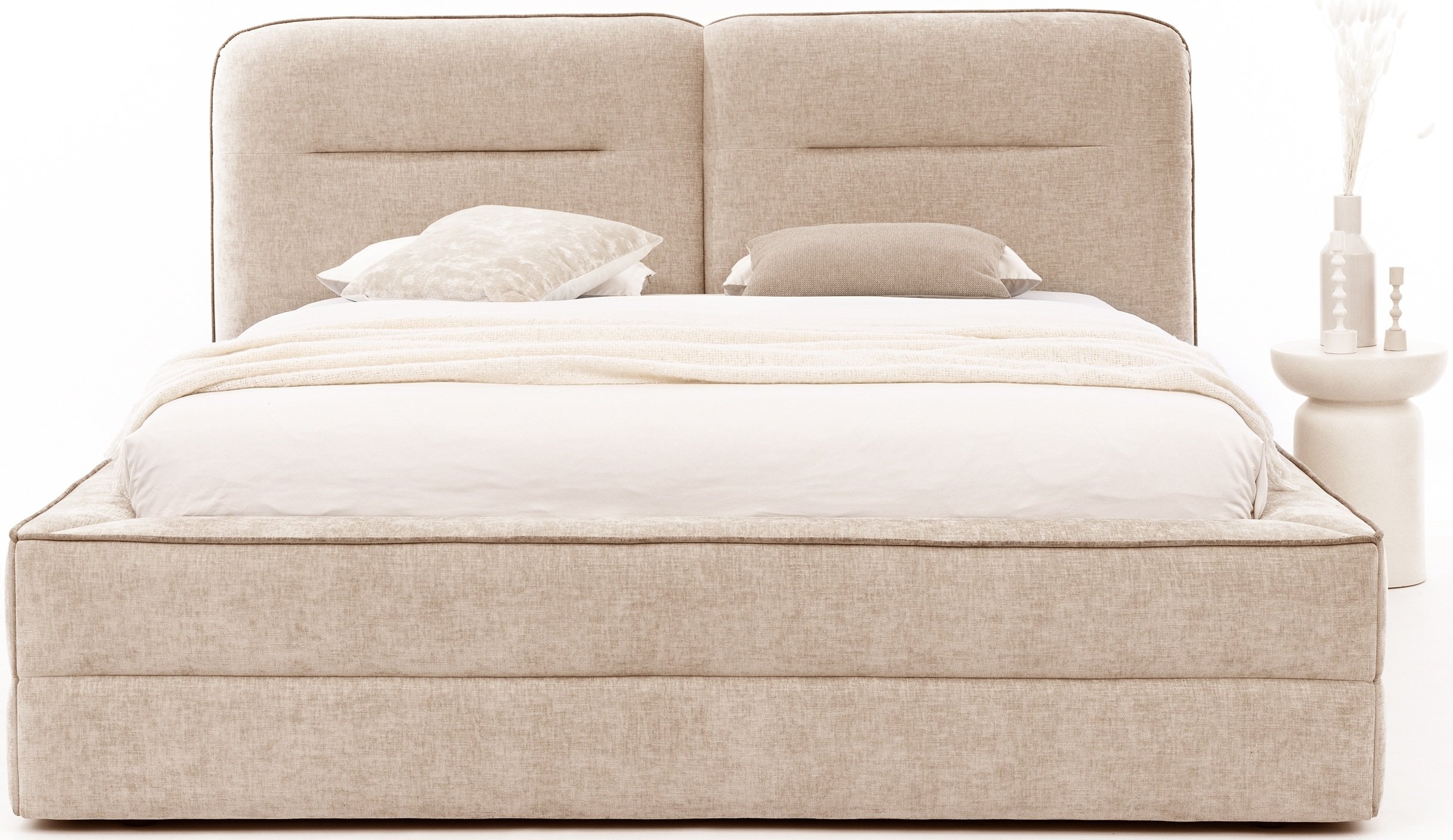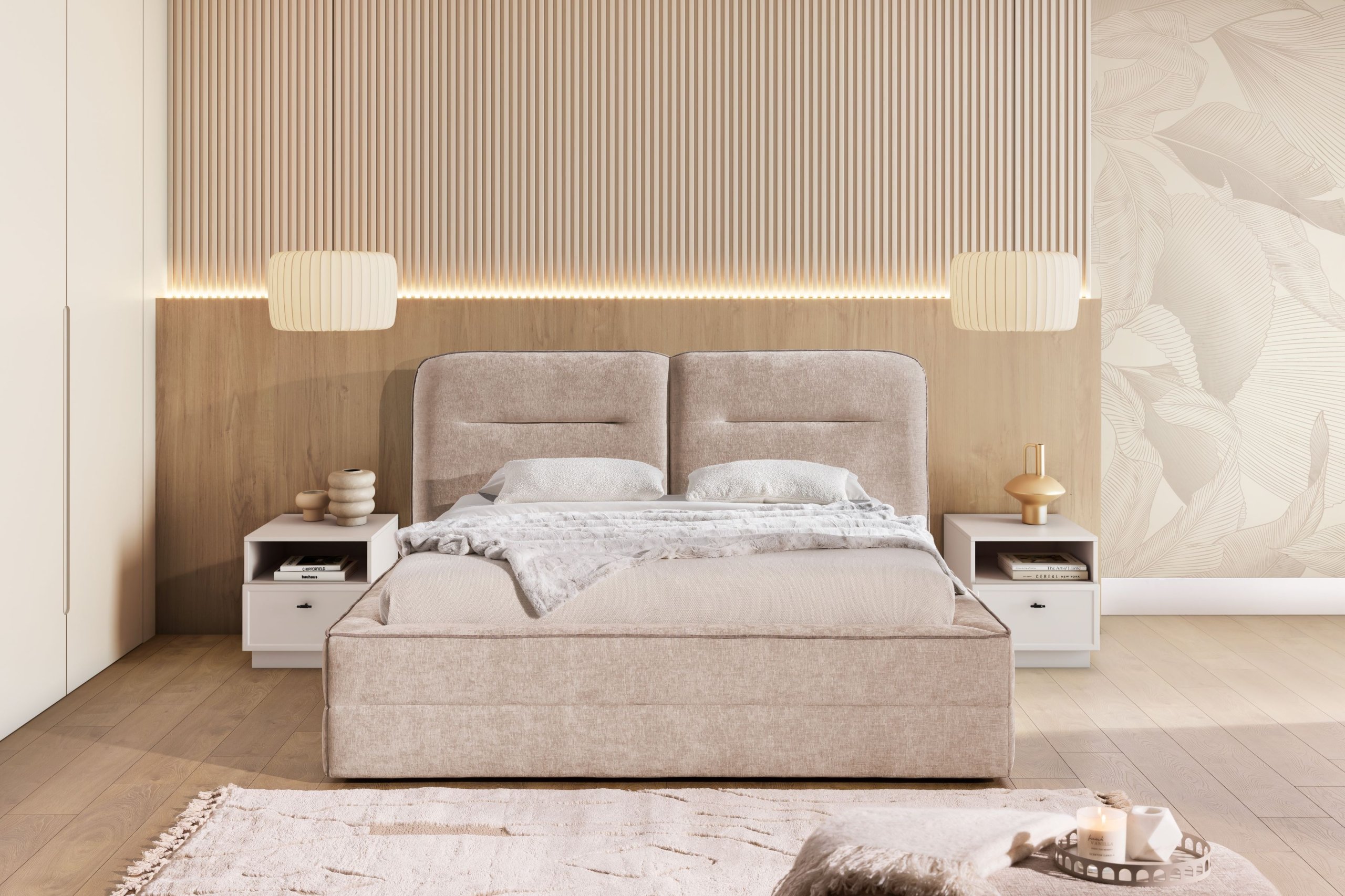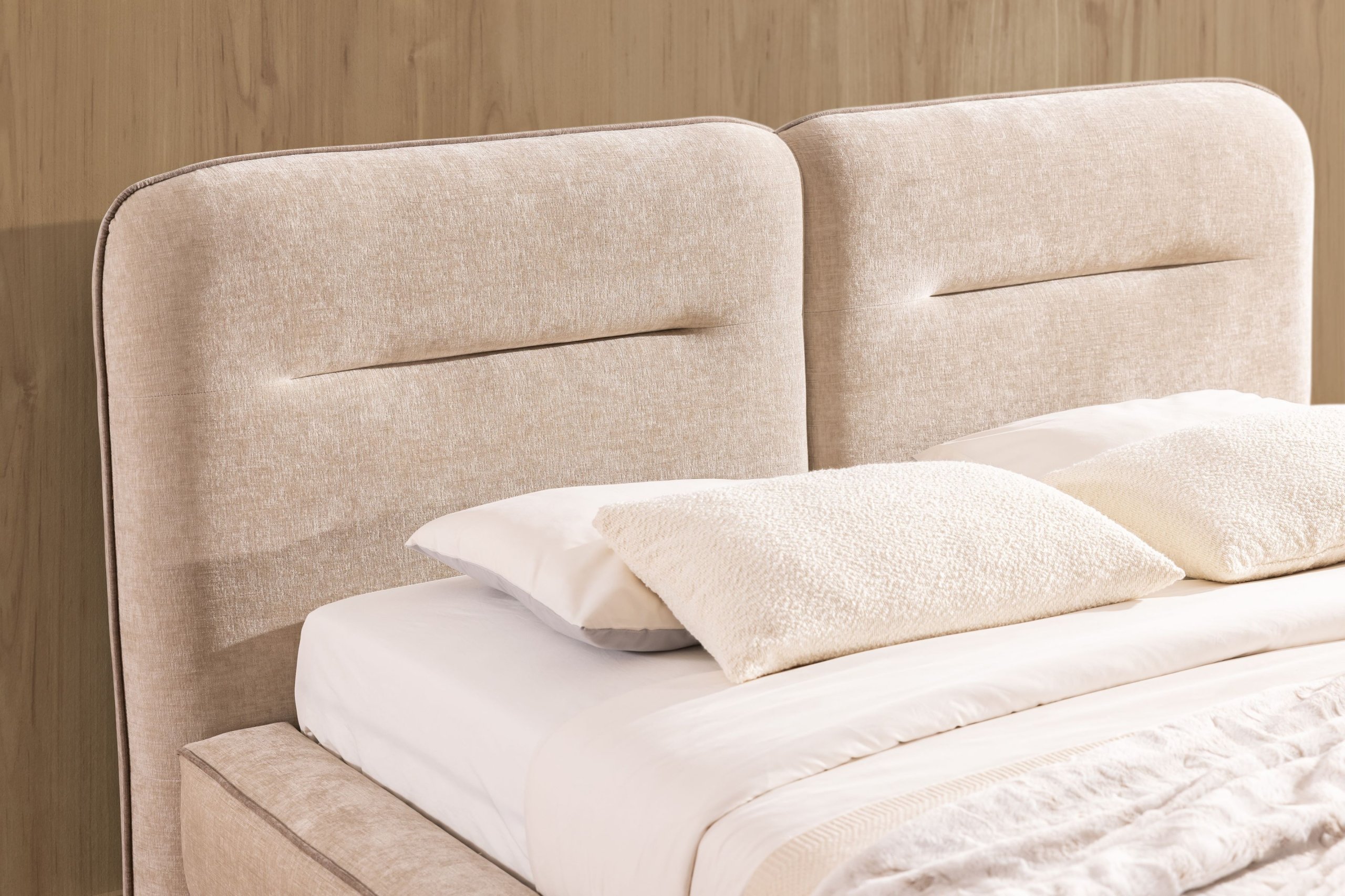 Krevet Tulia II namijenjen je onima koji cijene jednostavan, ali kvalitetan dizajn. Budući da ne sadrži integriranu ladicu za posteljinu ni podizni mehanizam, zadržava čist izgled i laganu konstrukciju. To omogućuje više slobode pri odabiru dodataka poput noćnih ormarića, kutija za pohranu ili rasvjete. Tapecirani okvir pruža udobnu površinu za naslanjanje pri čitanju ili gledanju televizije, stoga je krevet idealan i za opuštene večeri.