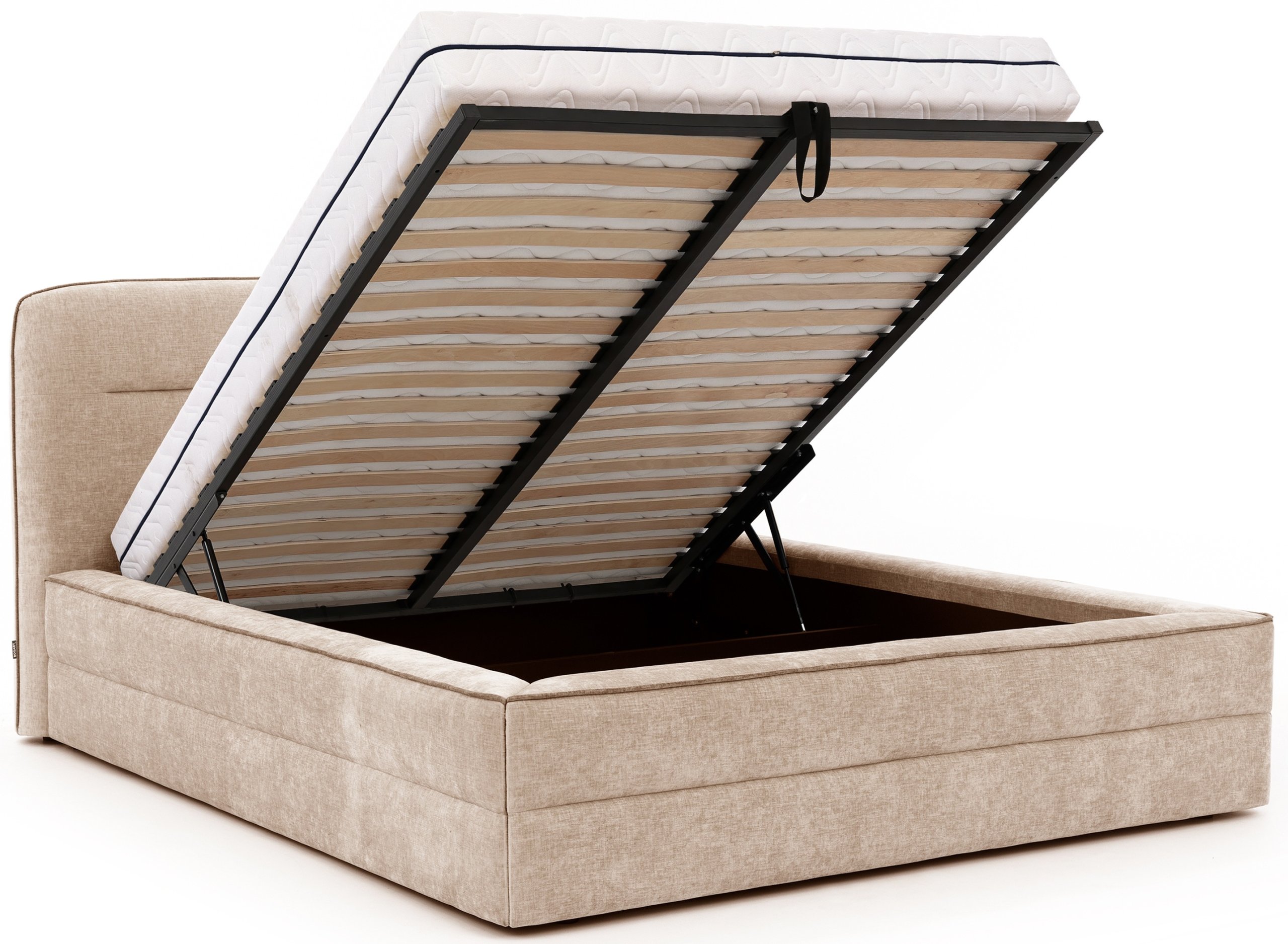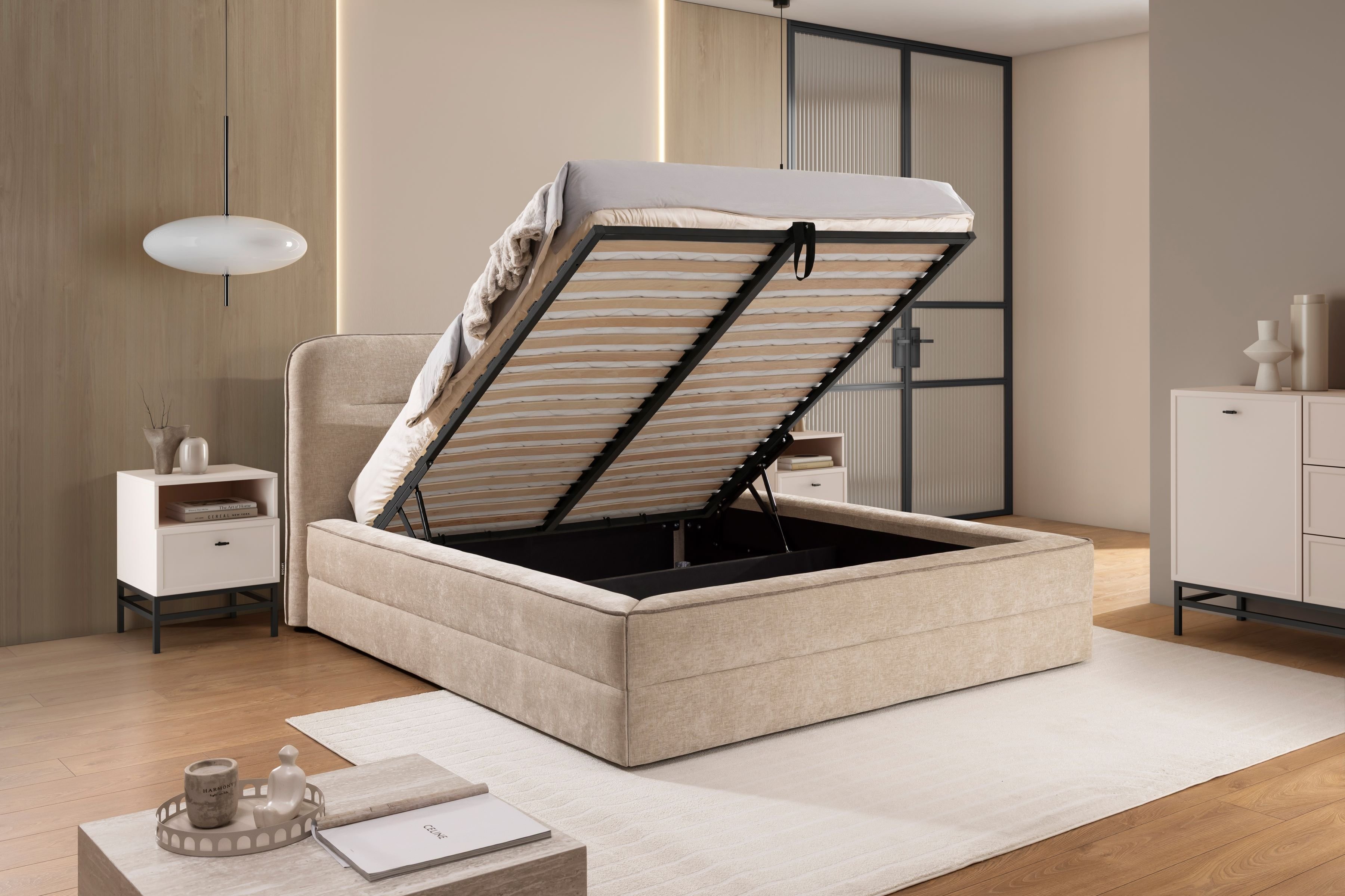 Krevet je proizveden u Poljskoj u renomiranoj tvornici Bogart, poznatoj po preciznoj obradi i visokoj kvaliteti materijala. Svaki element konstrukcije promišljeno je dizajniran kako bi osigurao stabilnost i pouzdanost u svakodnevnoj uporabi. Podizni mehanizam i čvrst okvir svjedoče o kvaliteti izrade, dok tapecirani završetak dodaje dašak elegancije.